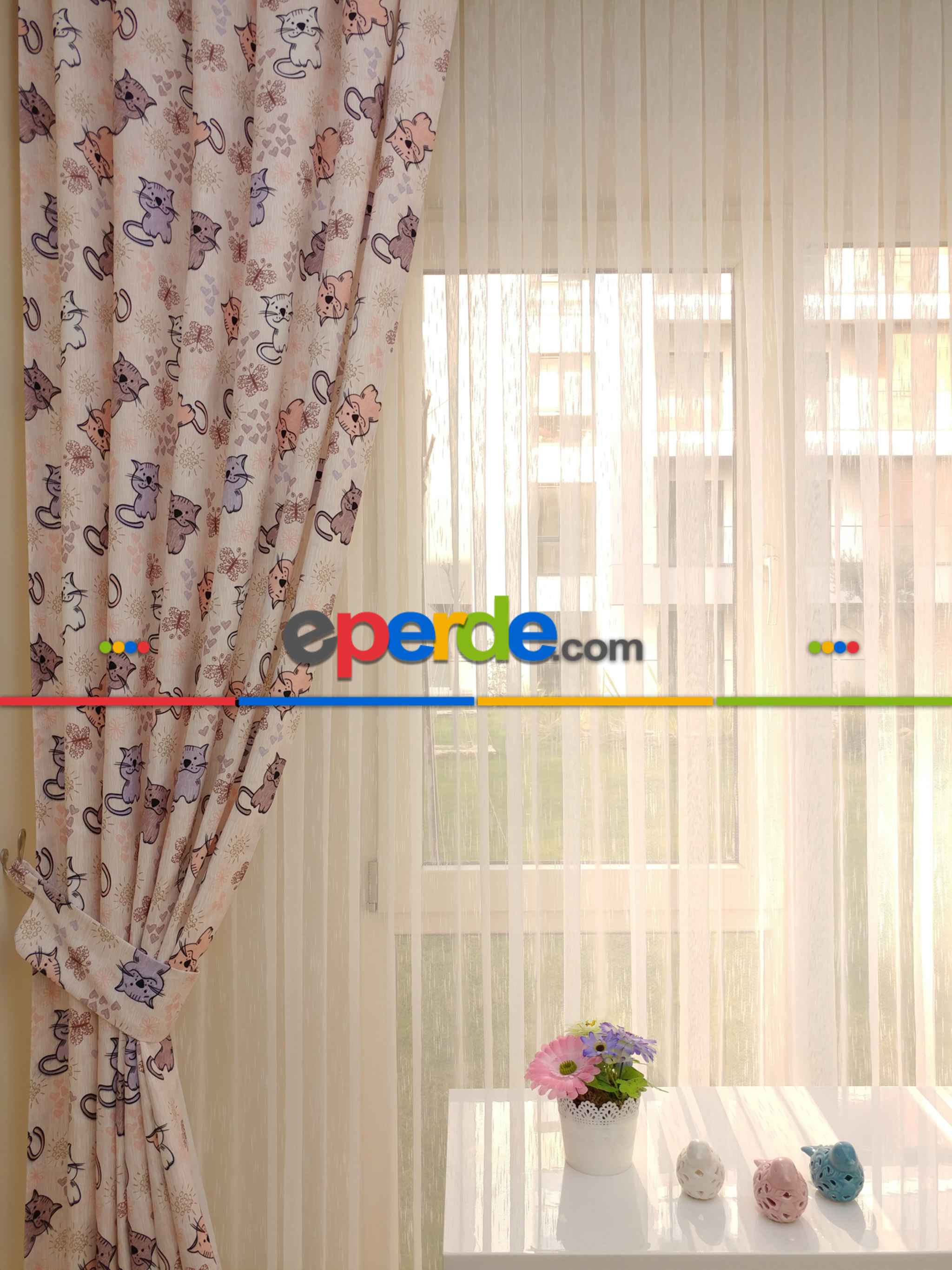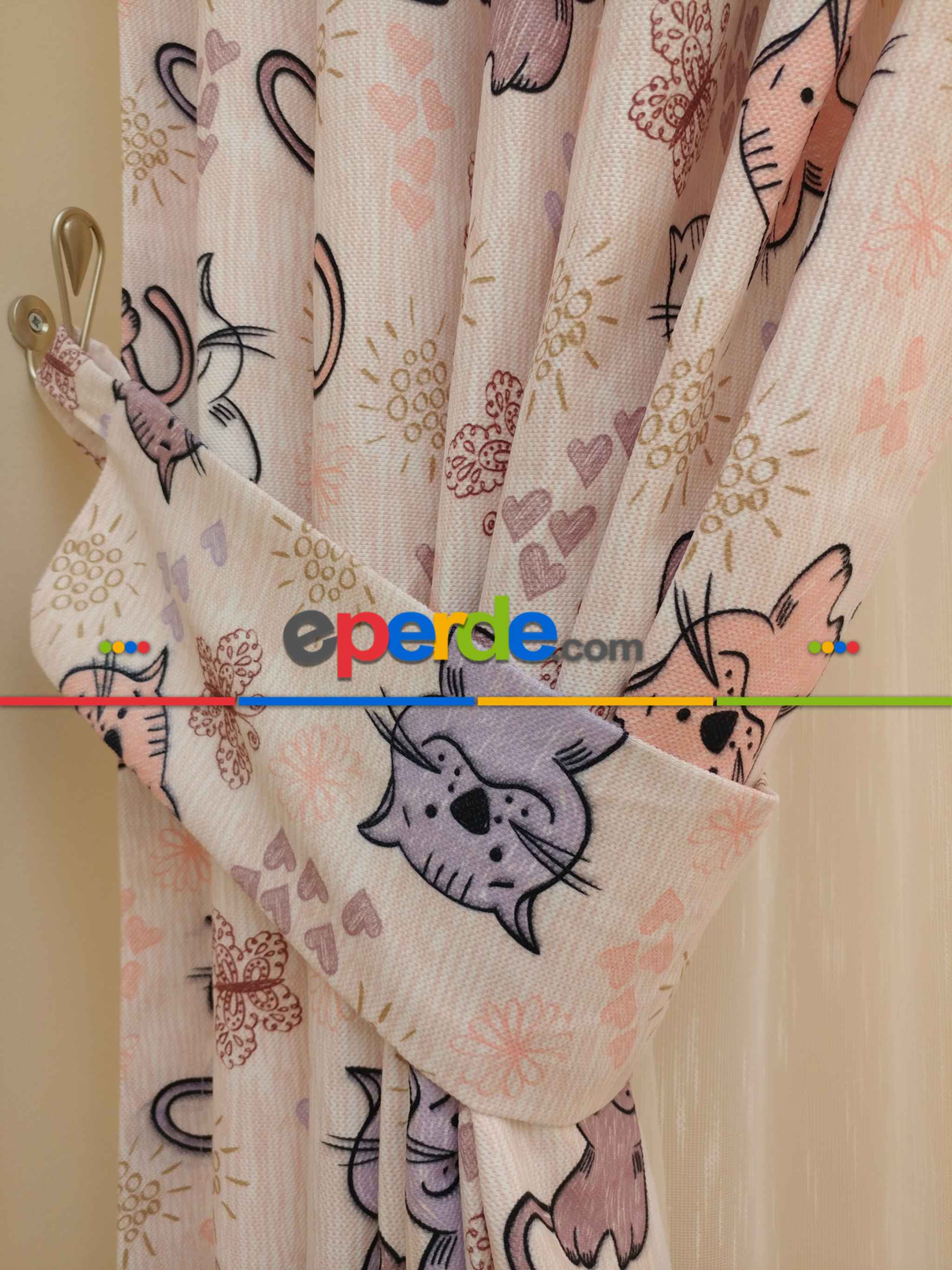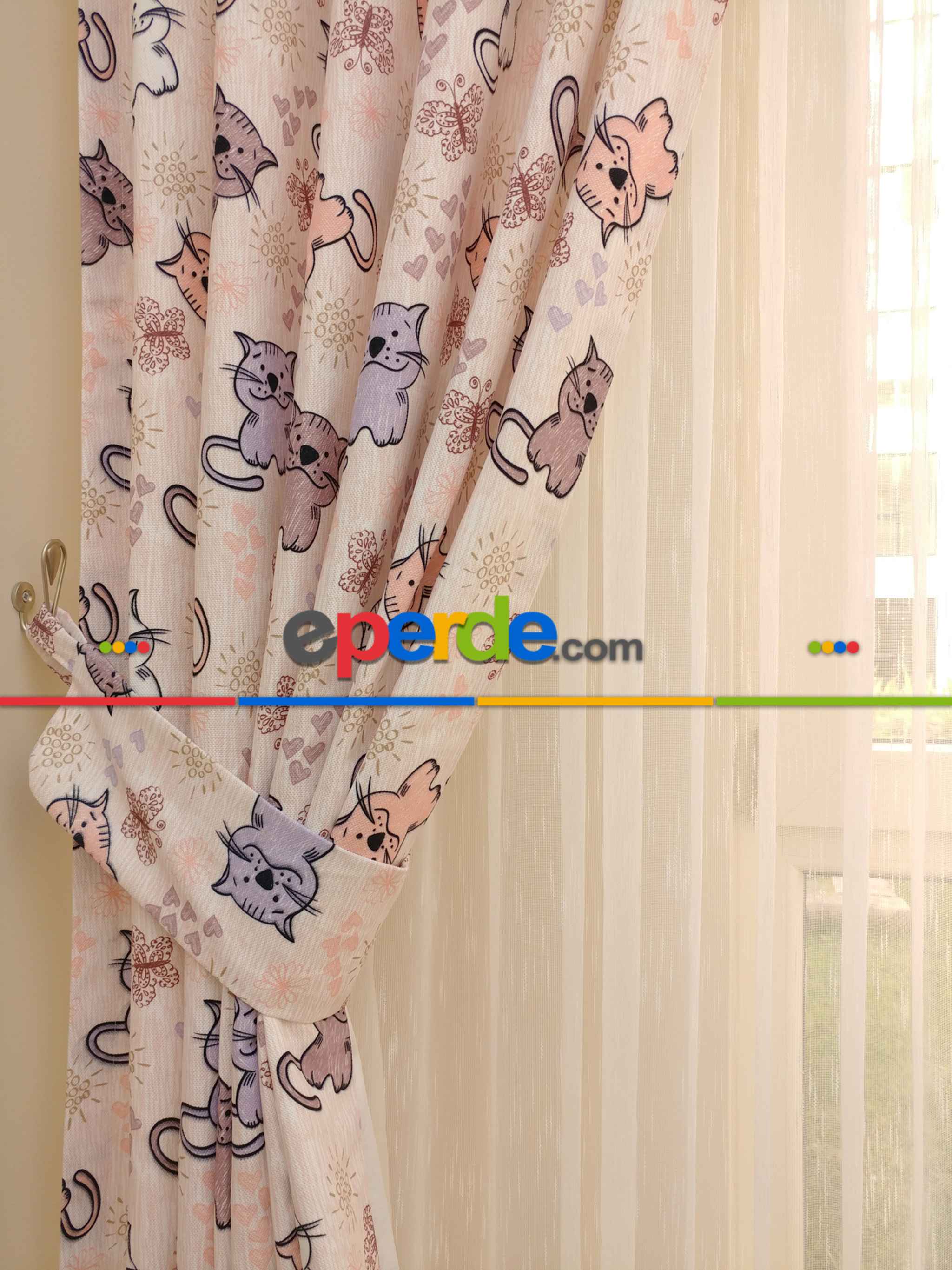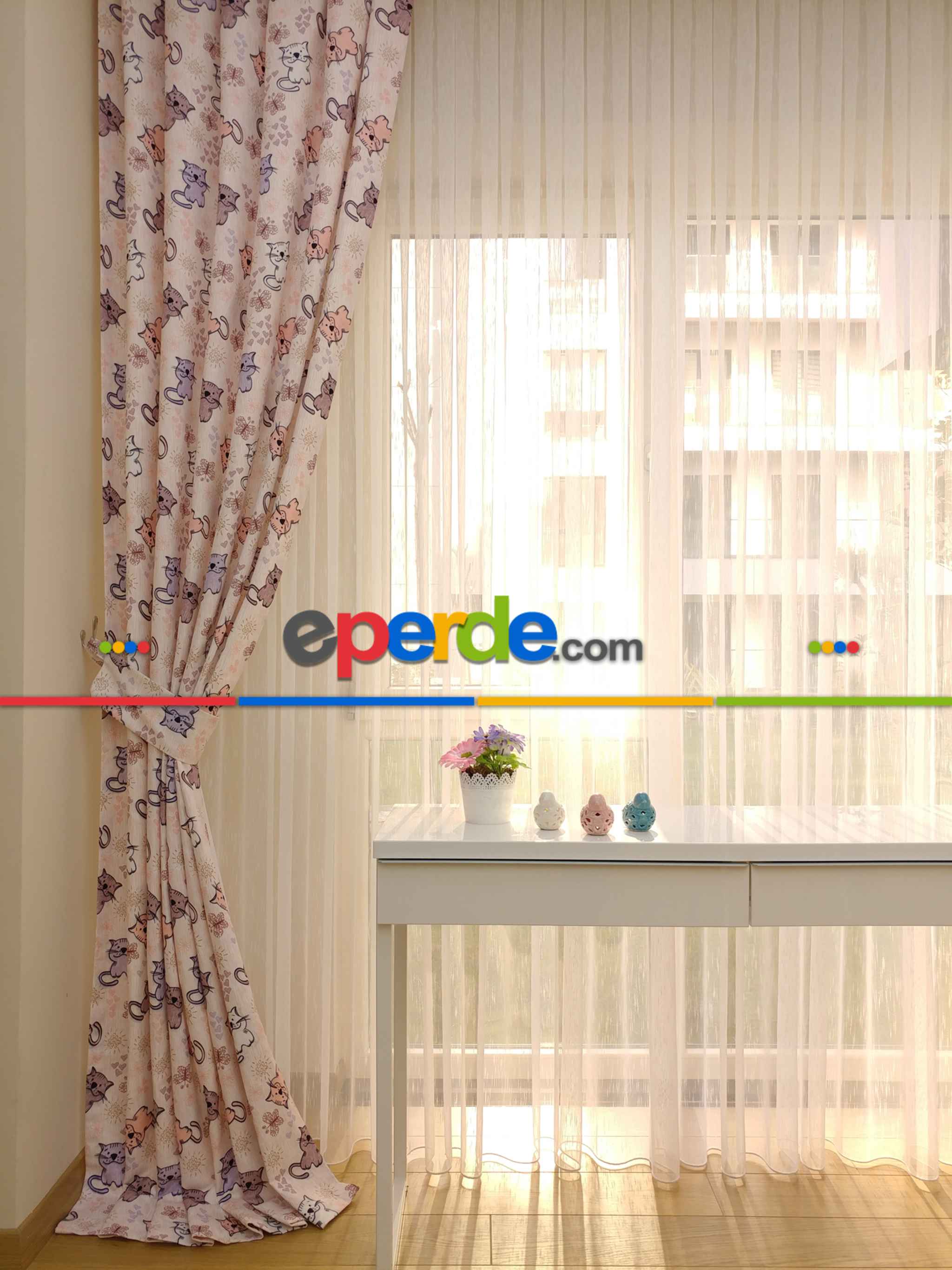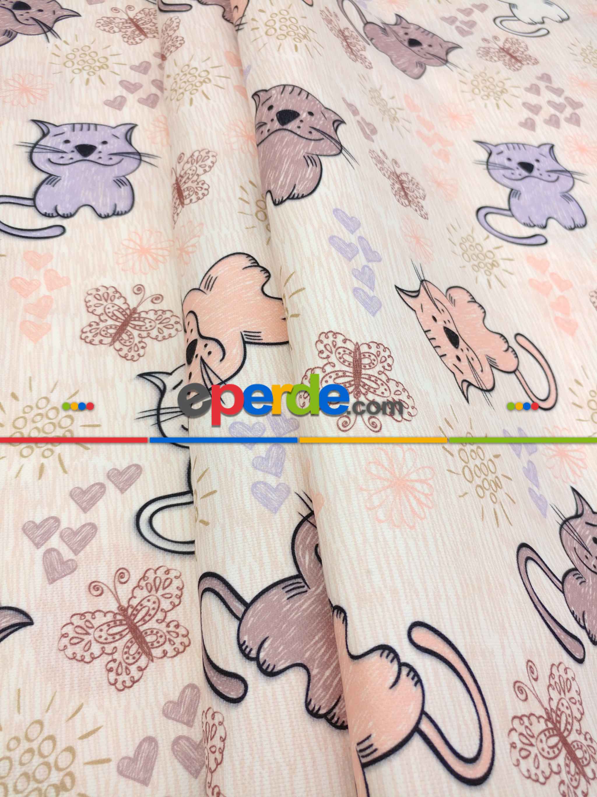 Kedicikler Desenli Çocuk Odası Fon Perde Modelleri- Çok Renkli 3 » Eperde