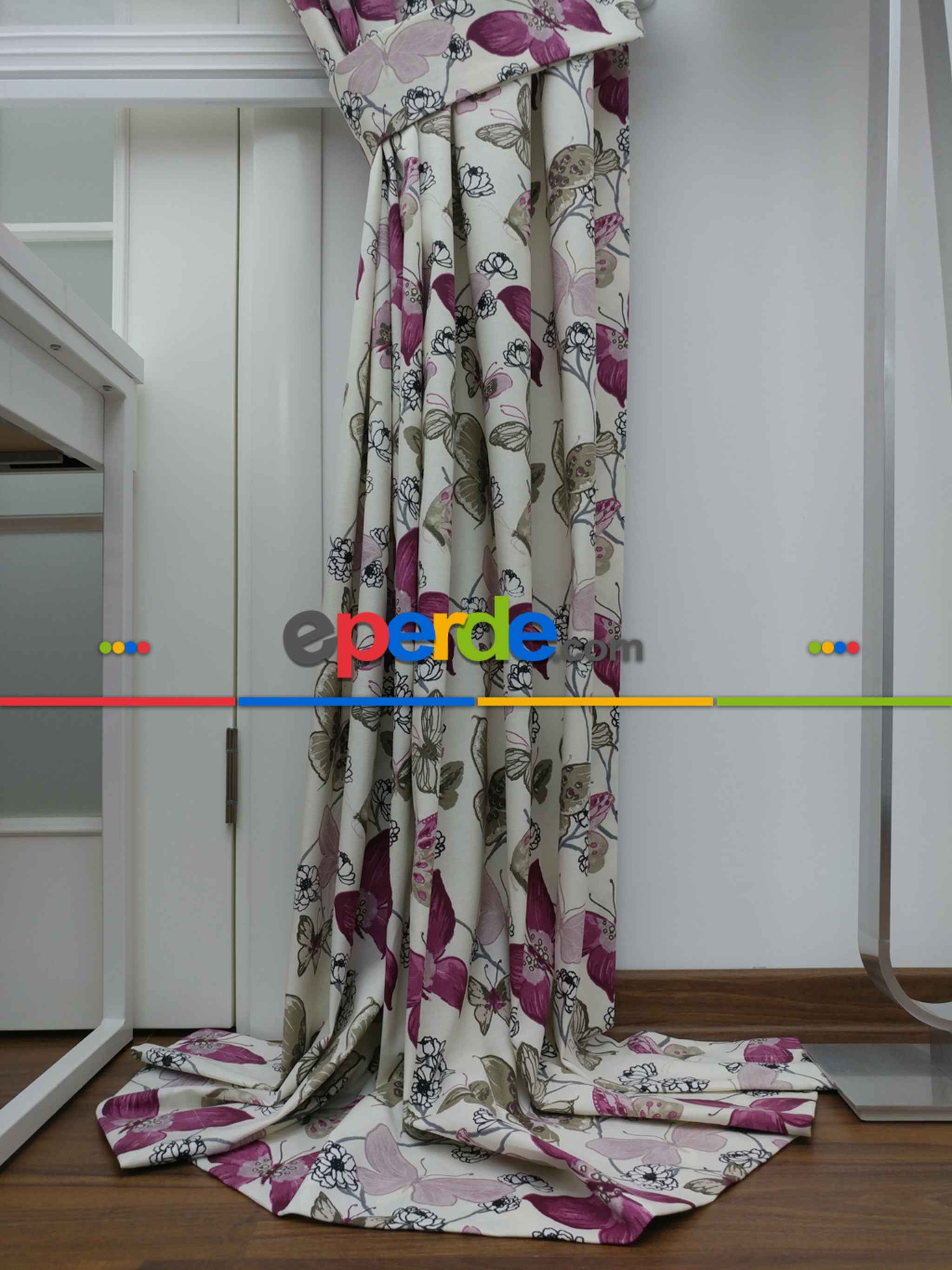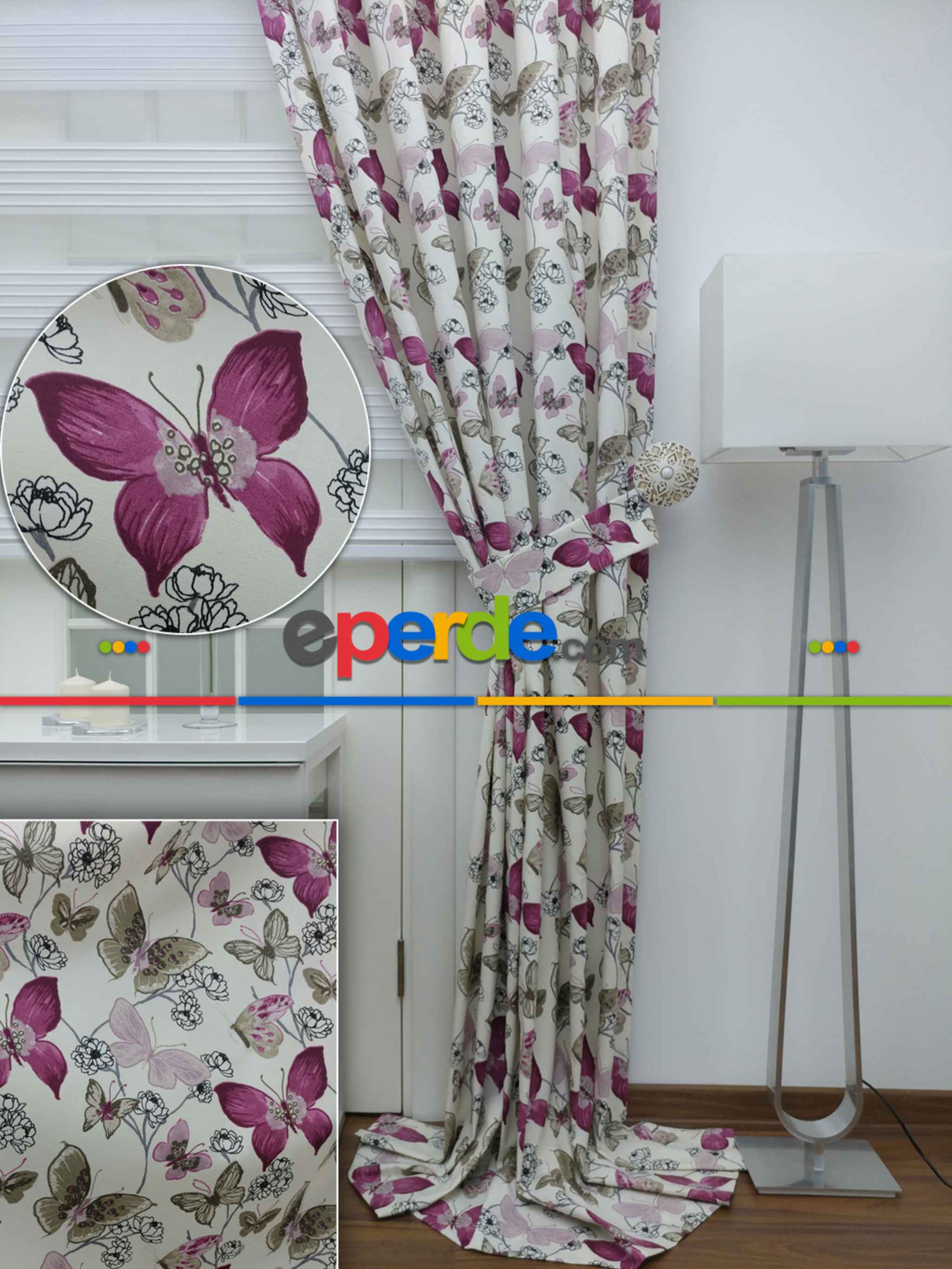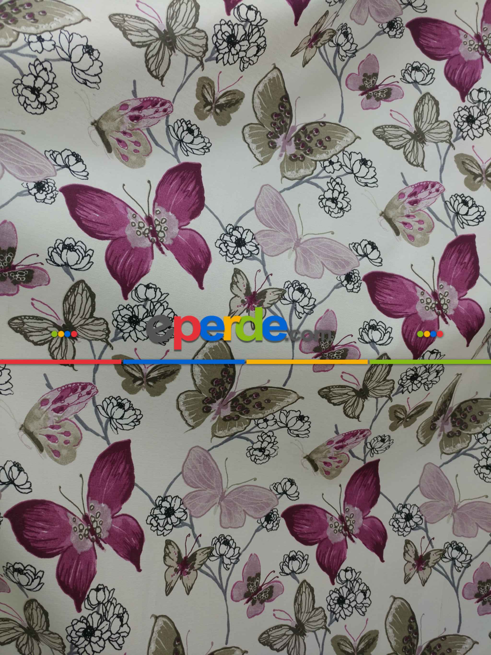 Kelebek Desenli Fon Perde Pembe Mor ( Leke Tutmaz )- Pembe-mor » Eperde