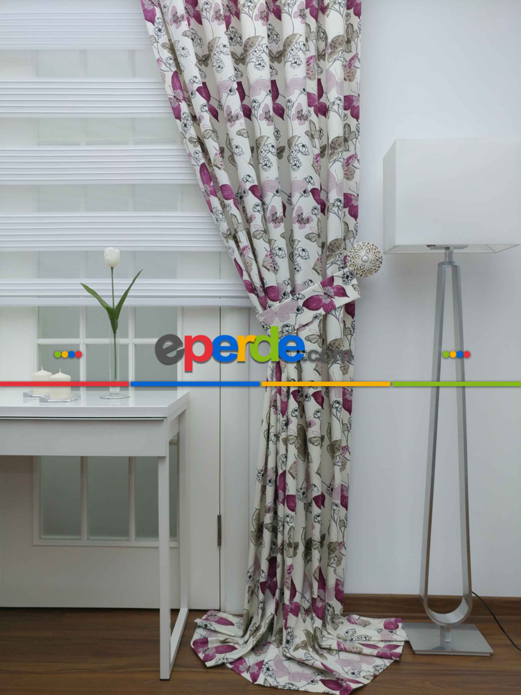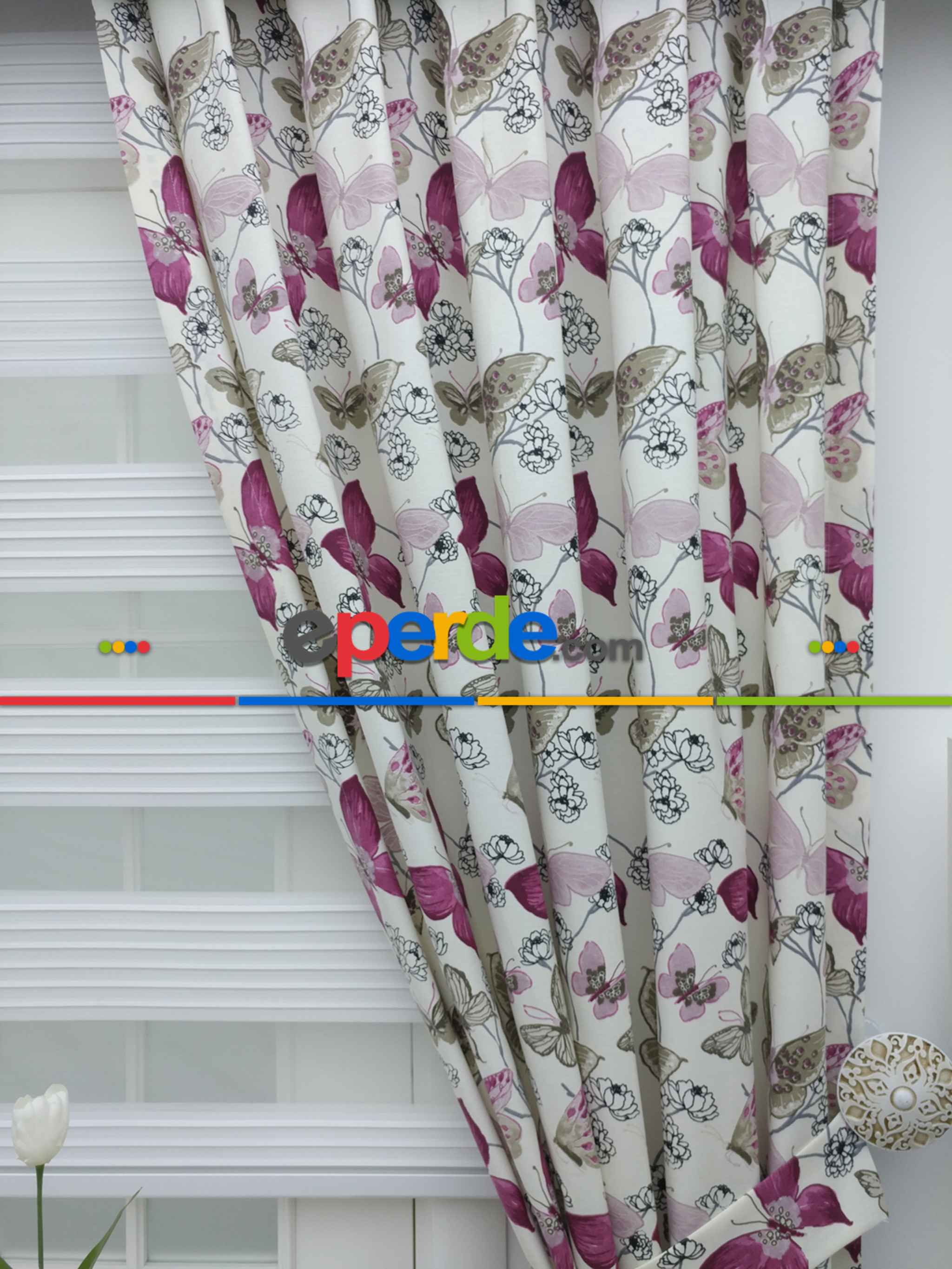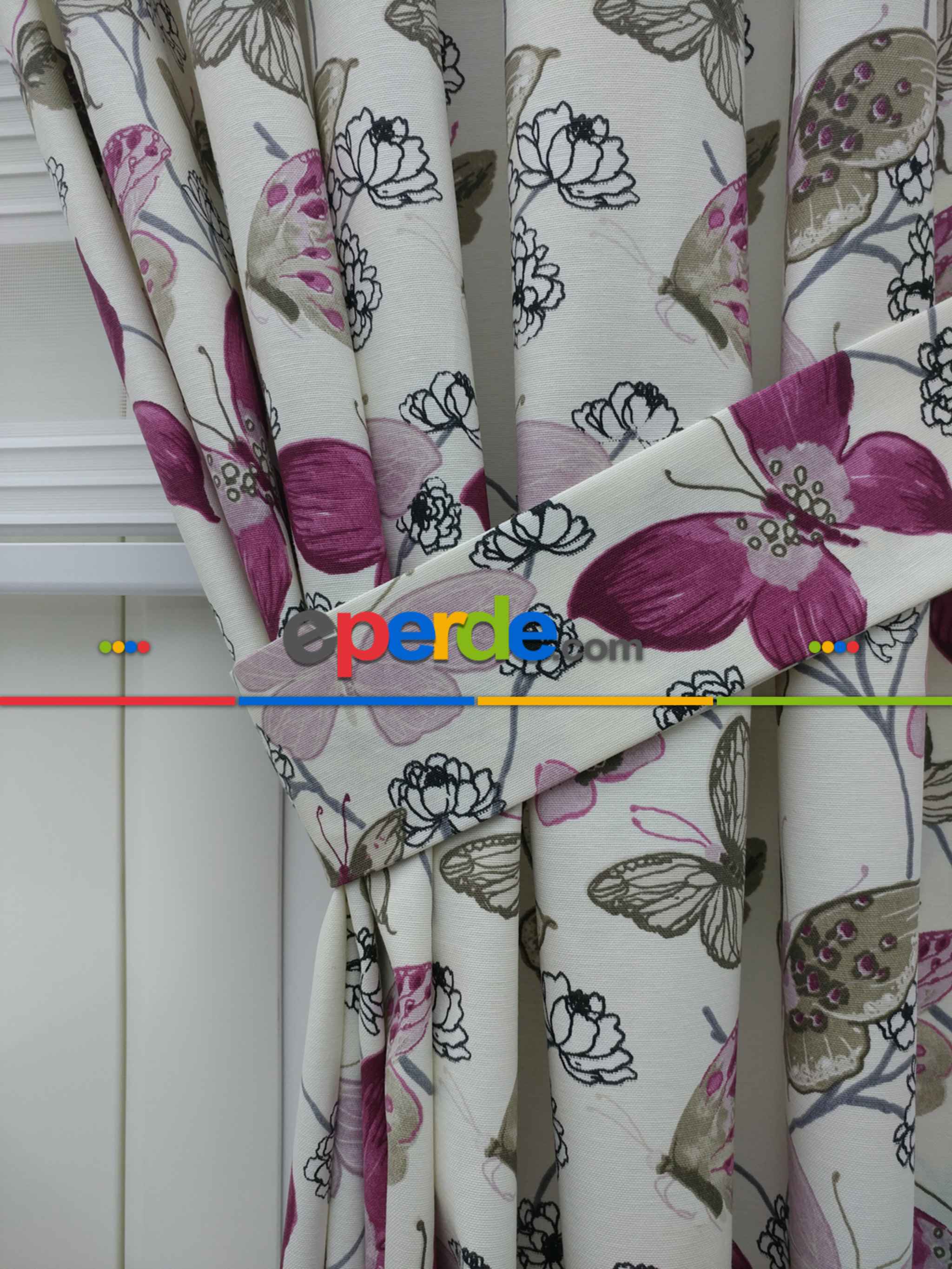 Kelebek Desenli Fon Perde Pembe Mor ( Leke Tutmaz )- Pembe-mor » Eperde