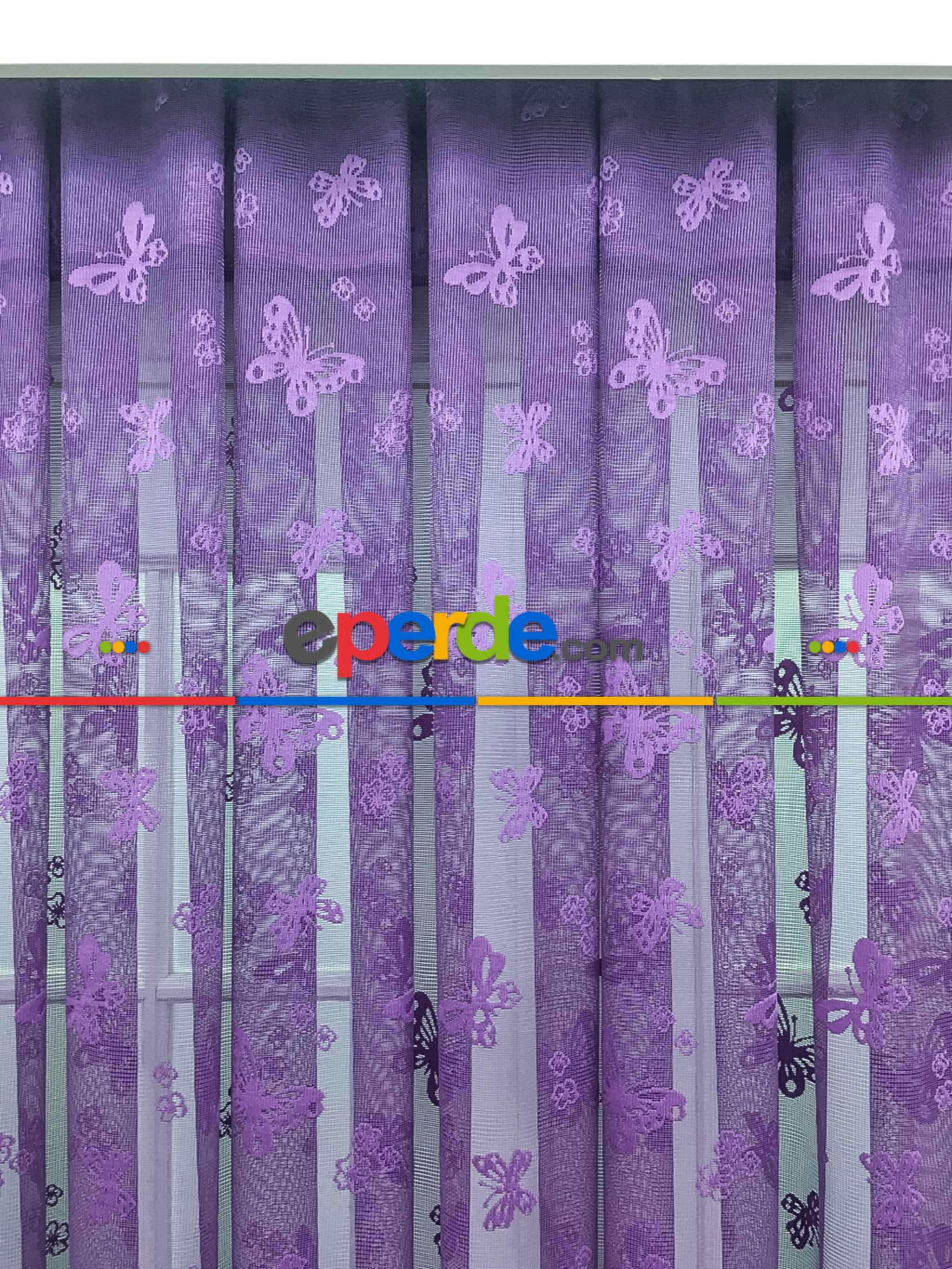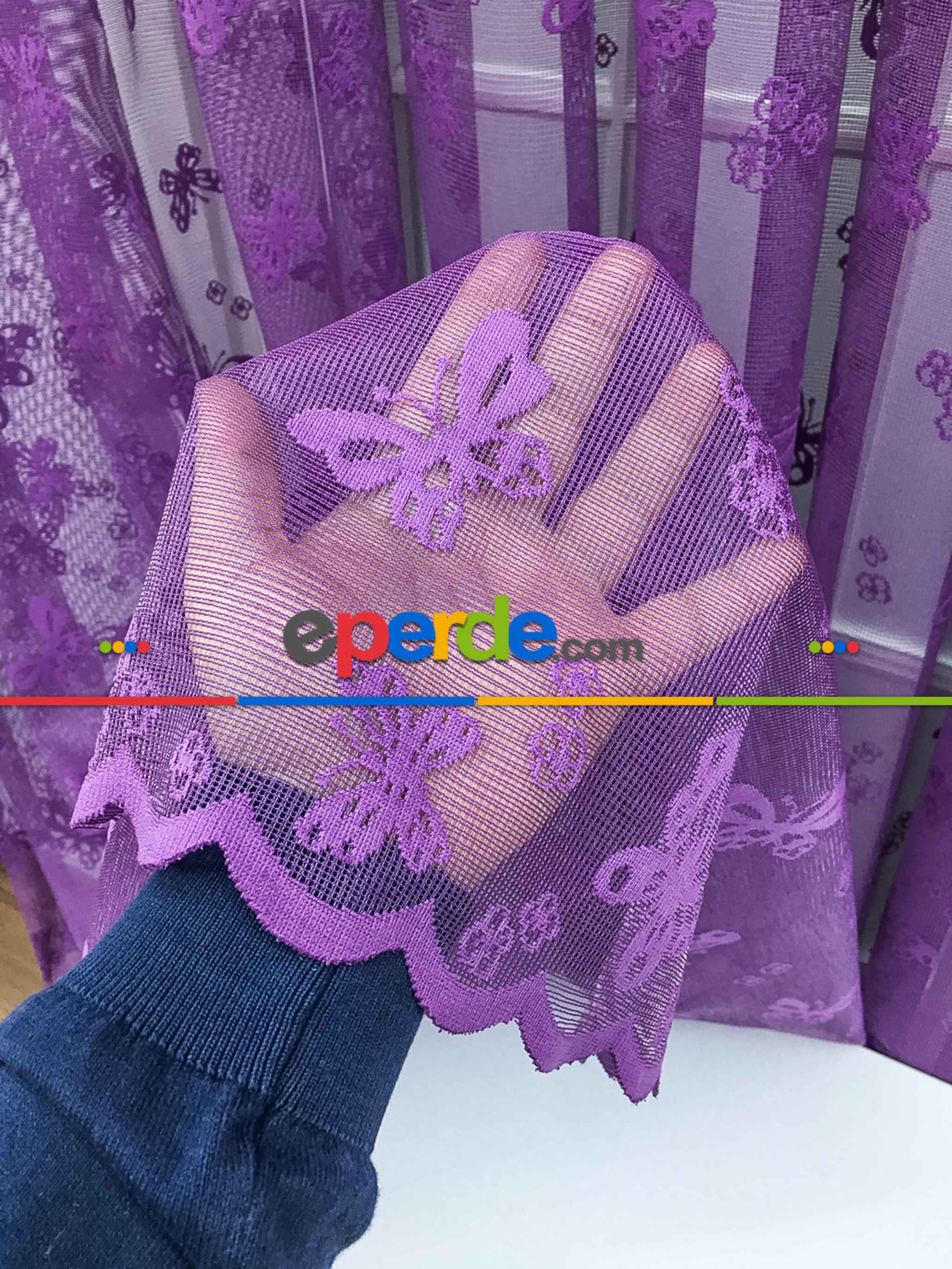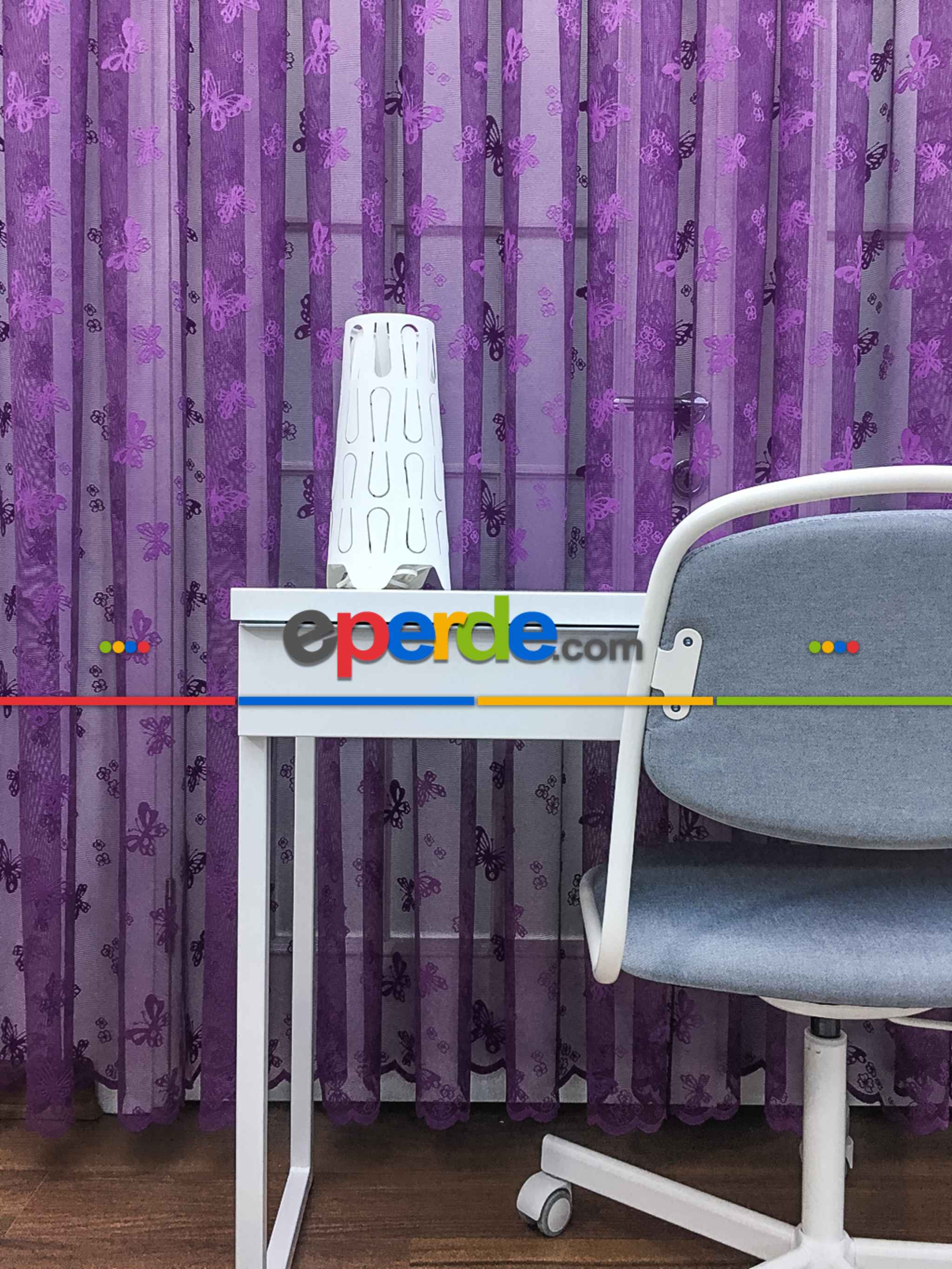Kelebek Desenli Kız Çocuk Odası İçin Tül Perde - Mor- Mor Ürün Açıklaması