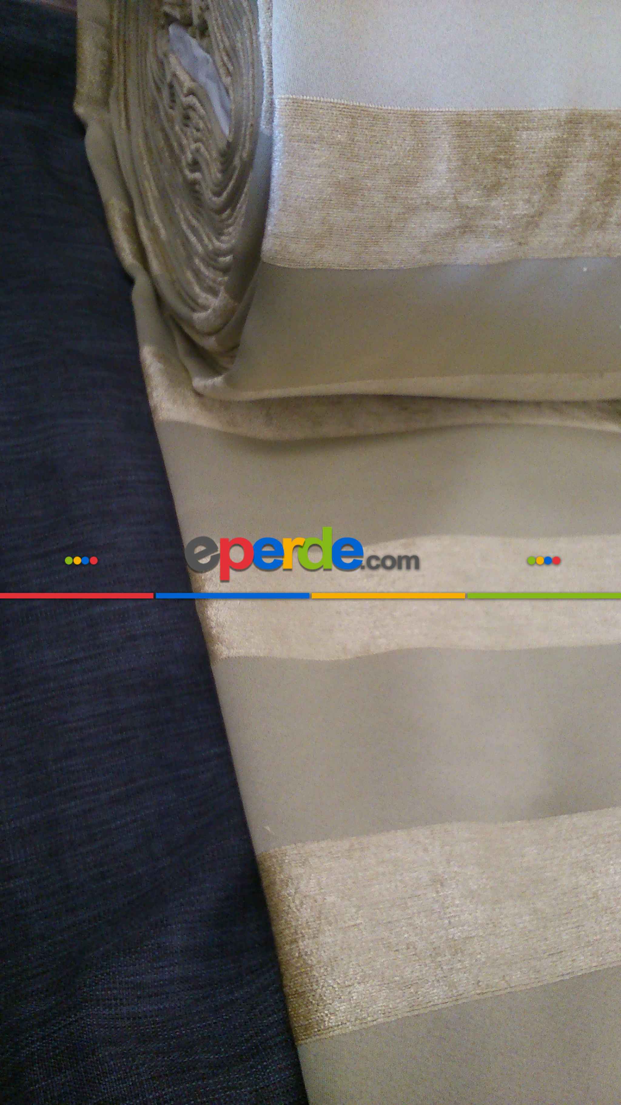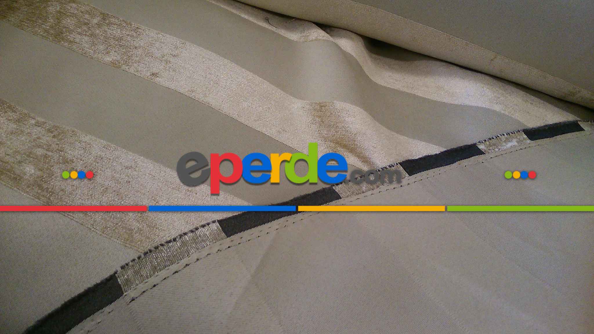 Keten Blackout Fon Perde - Şerit Desenli - Koyu Krem- Krem Koyu Ödeme Seçenekleri