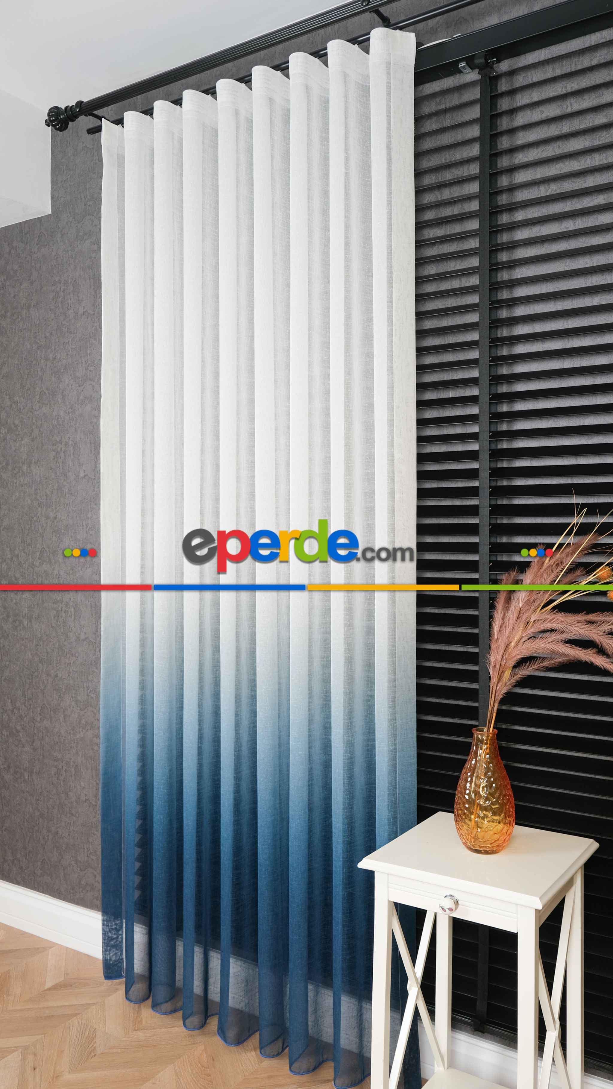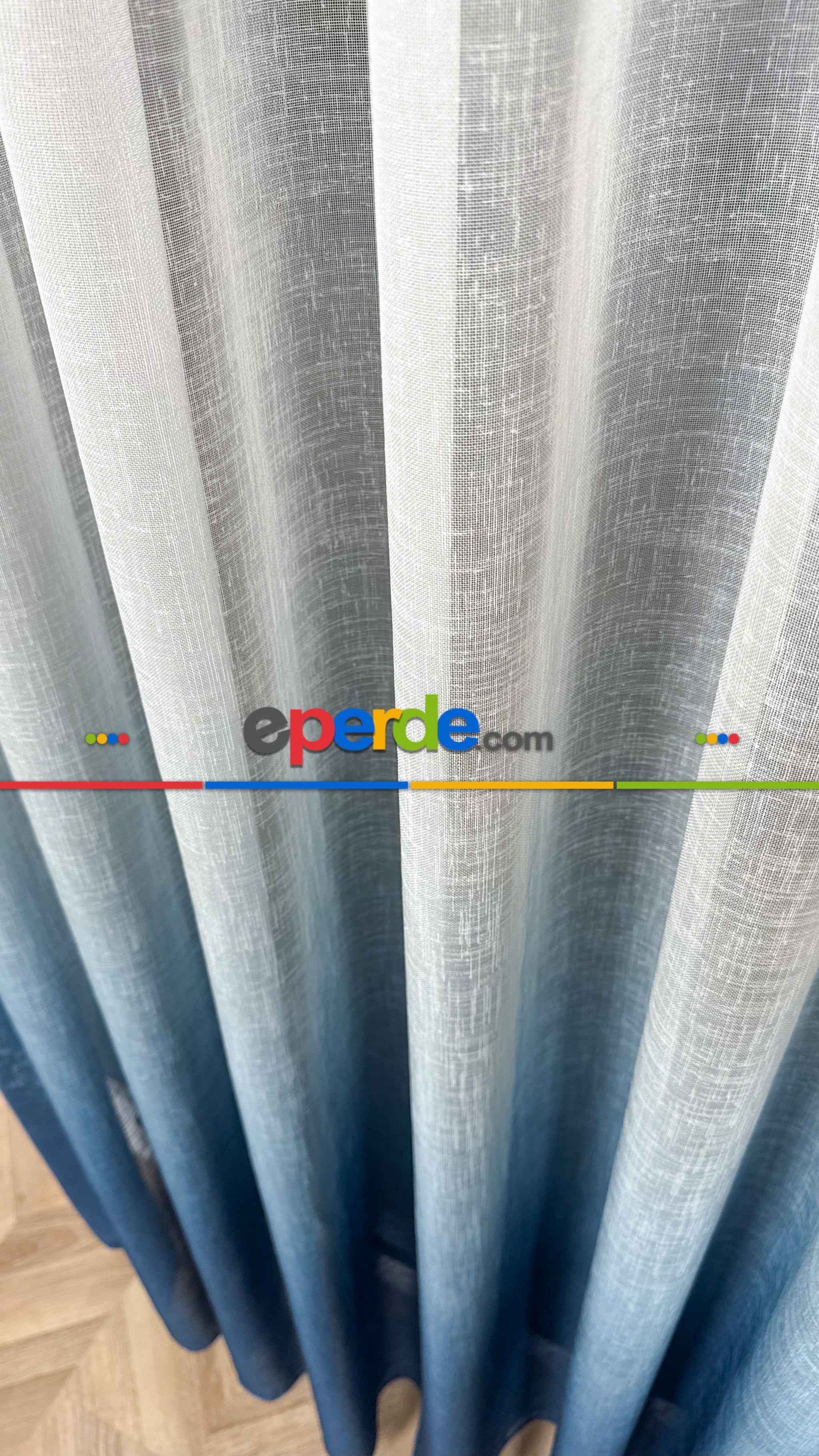 Keten Ekru Mavi Degrade Geçişli Tül Perde, Ağır Gramajlı Premium Seri, Eteği Kurşunlu » Eperde