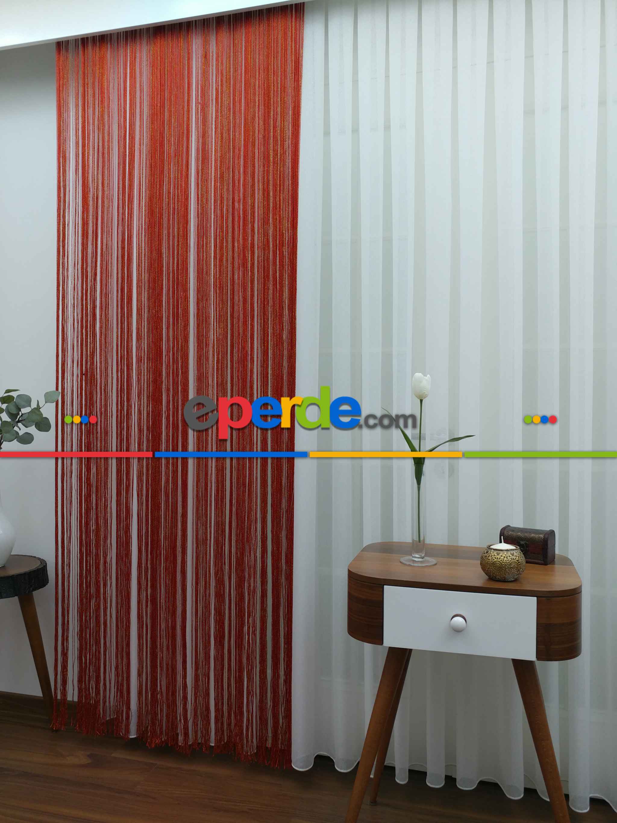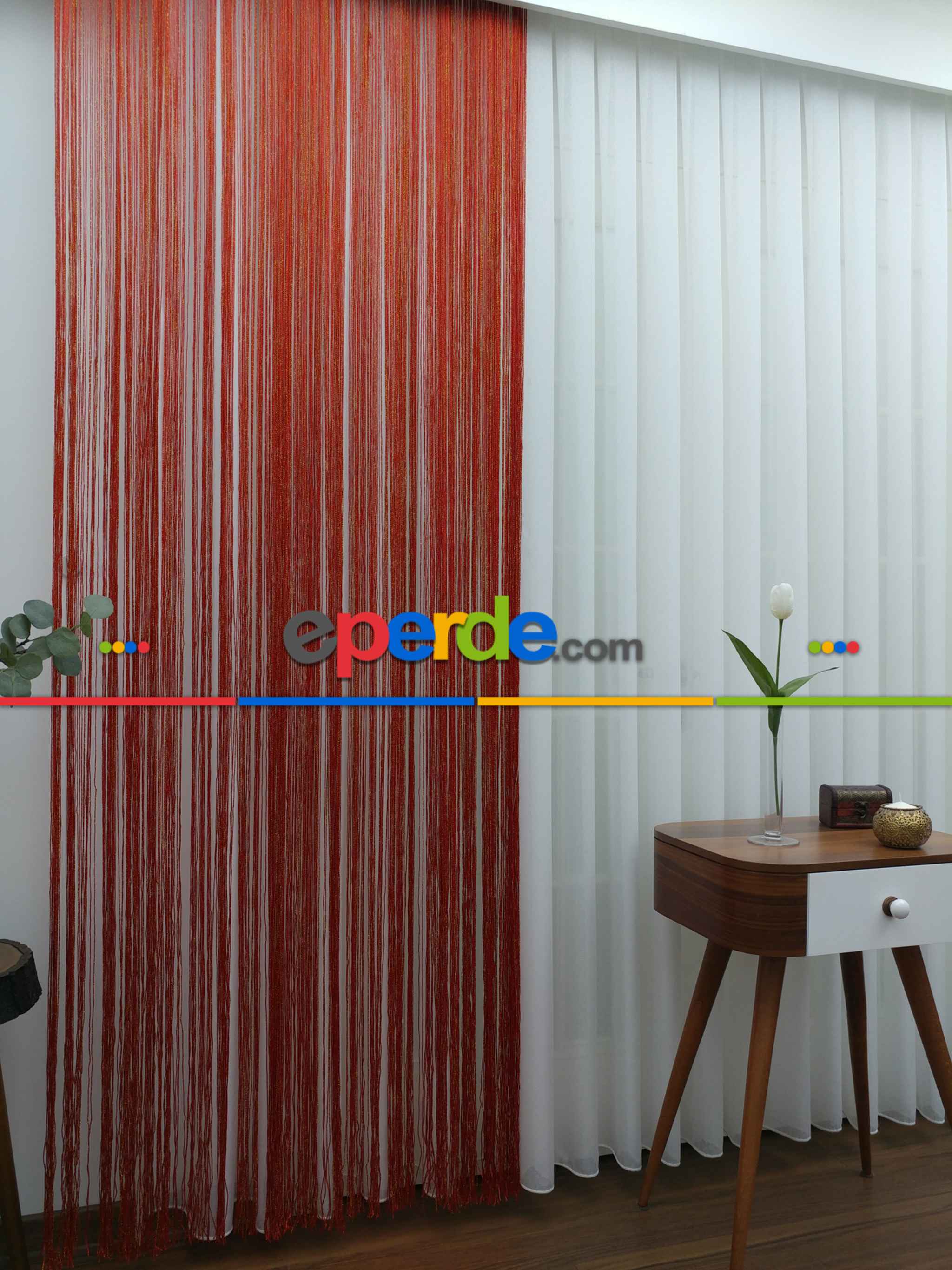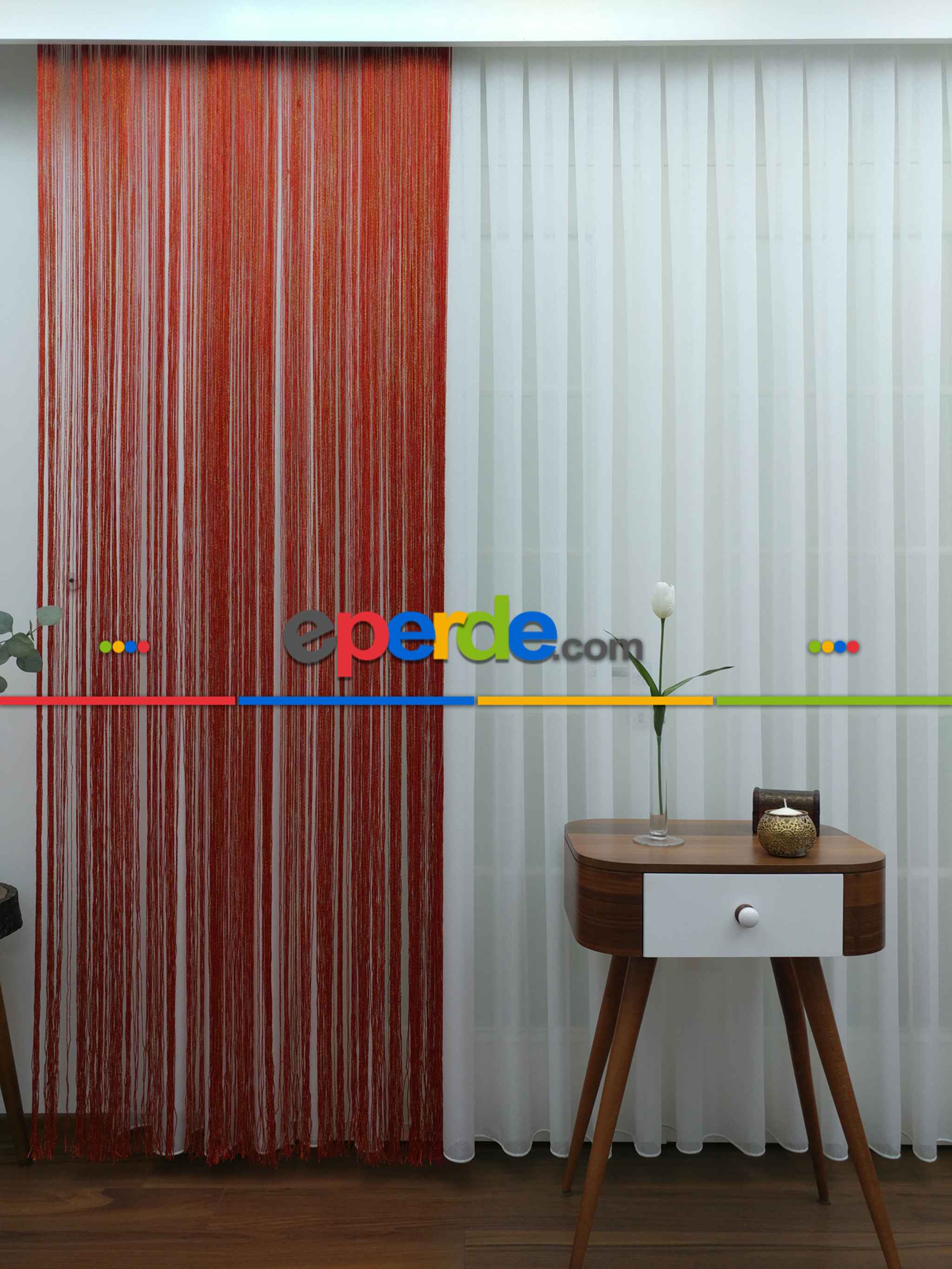Kırmızı ( Altın Simli ) - İp Perde Simli Seri- Kırmızı-altın Simli Ödeme Seçenekleri