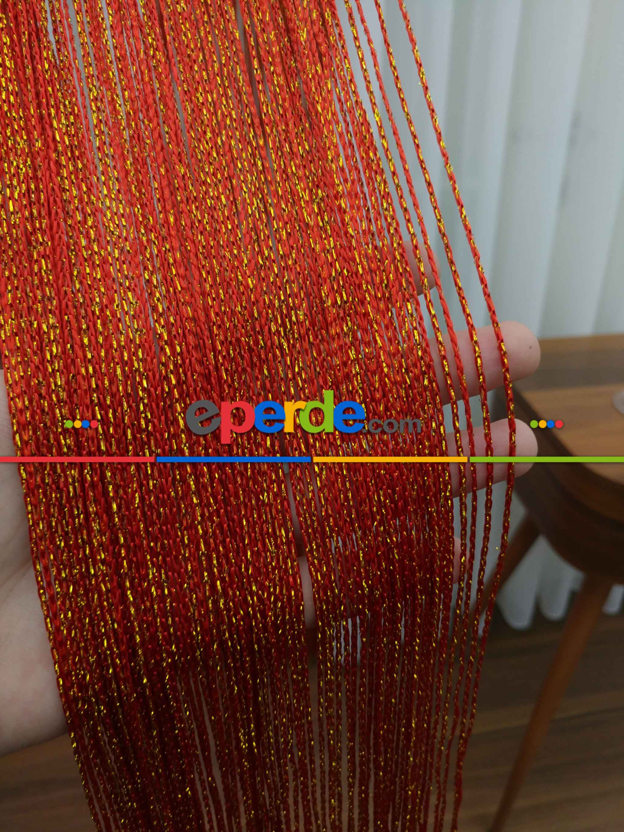 Kırmızı ( Altın Simli ) - İp Perde Simli Seri- Kırmızı-altın Simli