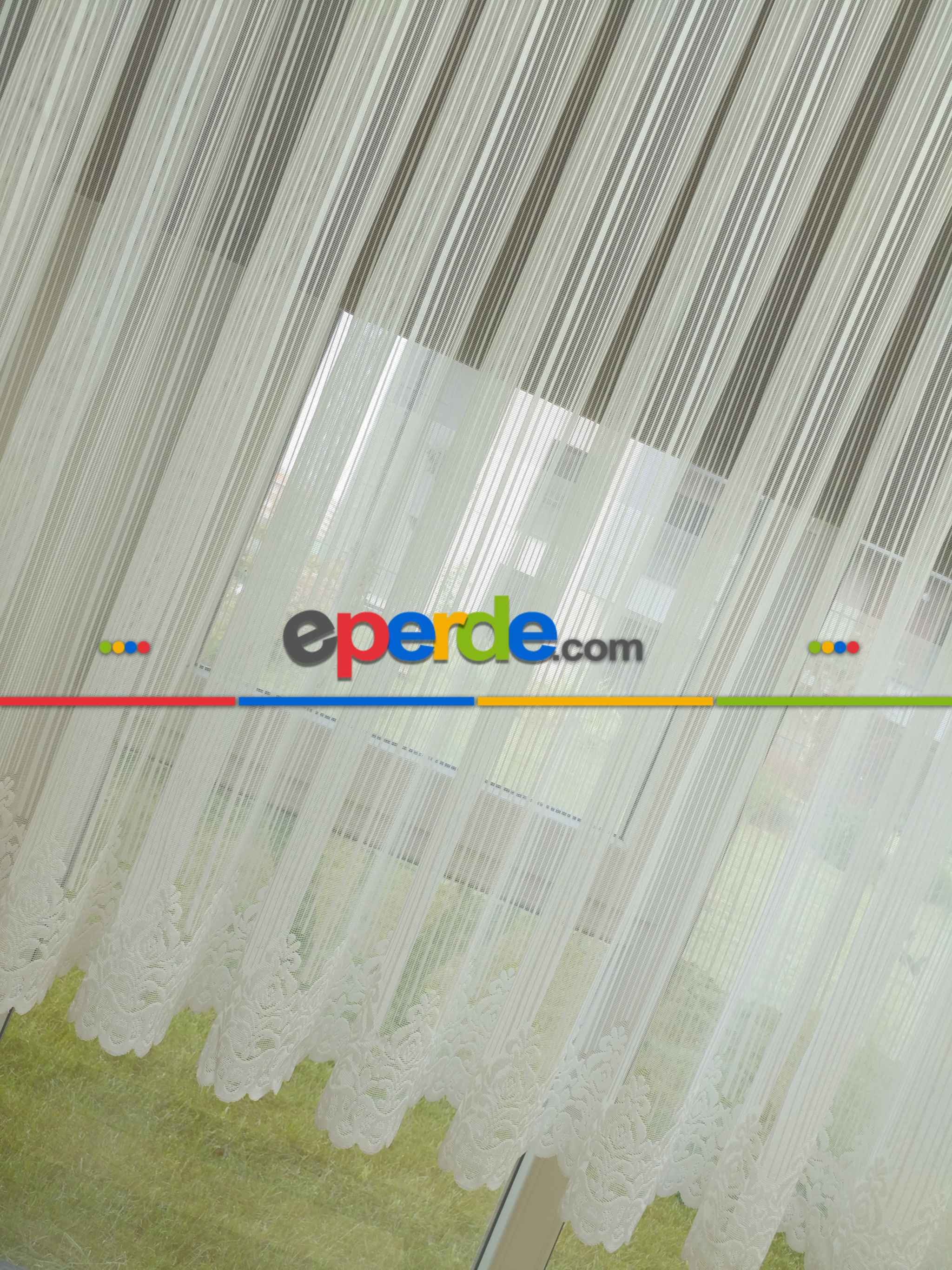 Güney Afrika | Kısa Boylu Boyuna Çizgili Etek Ucu Desenli Tül Perde - Petek Üstü Boy- Ekru » Eperde