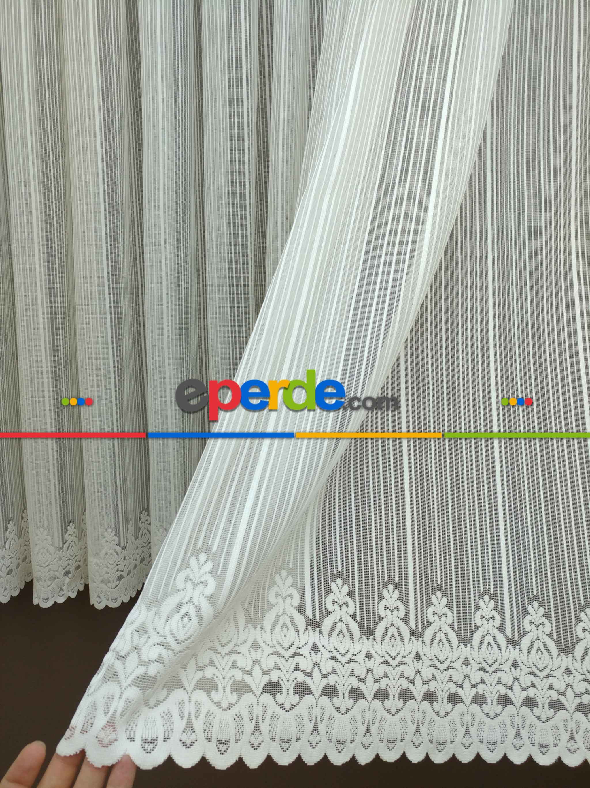 Kısa Boylu Boyuna Çizgili Etek Ucu Desenli Tül Perde - Petek Üstü Boy- Ekru Ödeme Seçenekleri