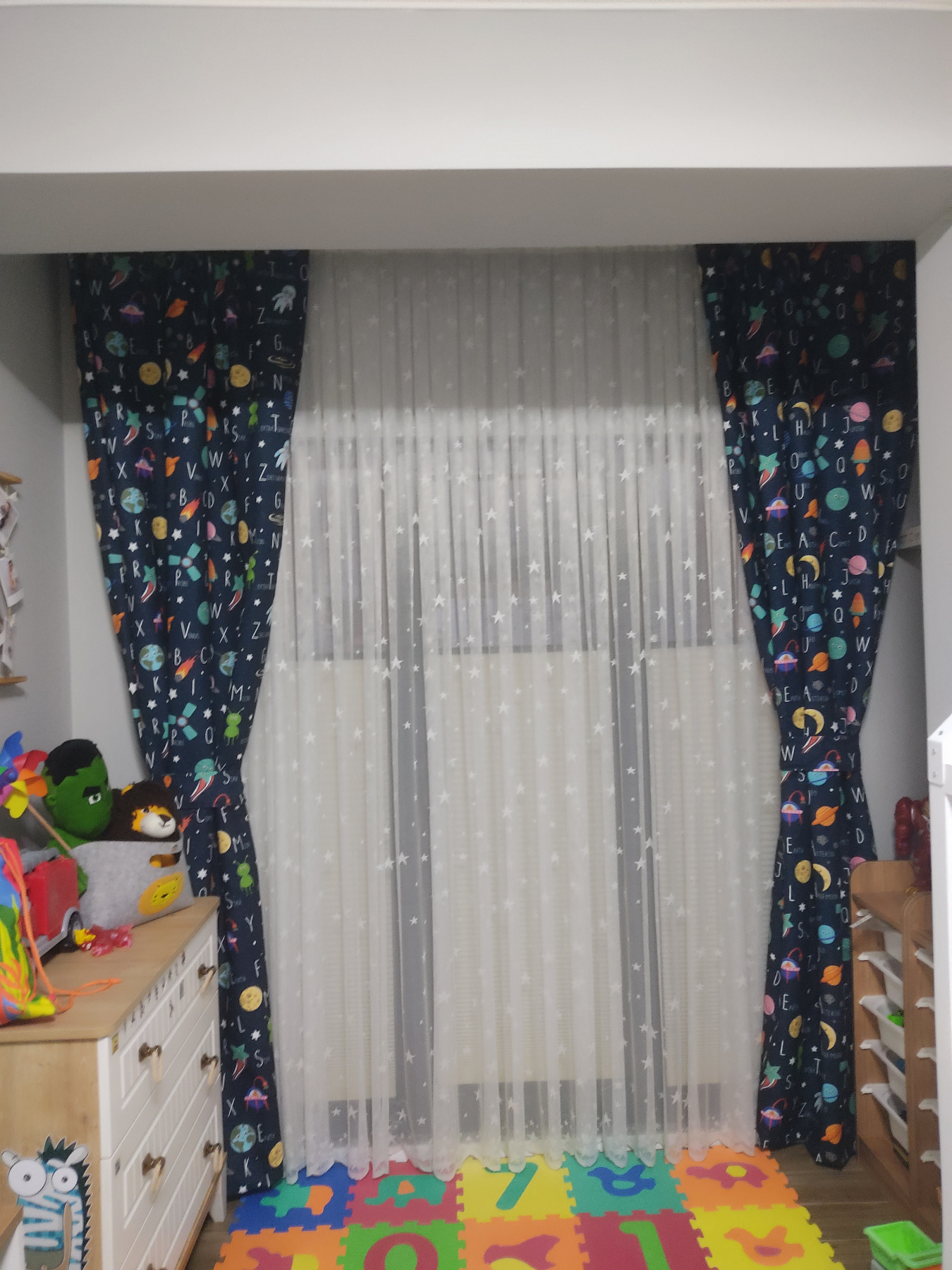 Yakindan daha da güzel bir fon perde. Oğlumun odası icin aldık o da çok beğendi🤩