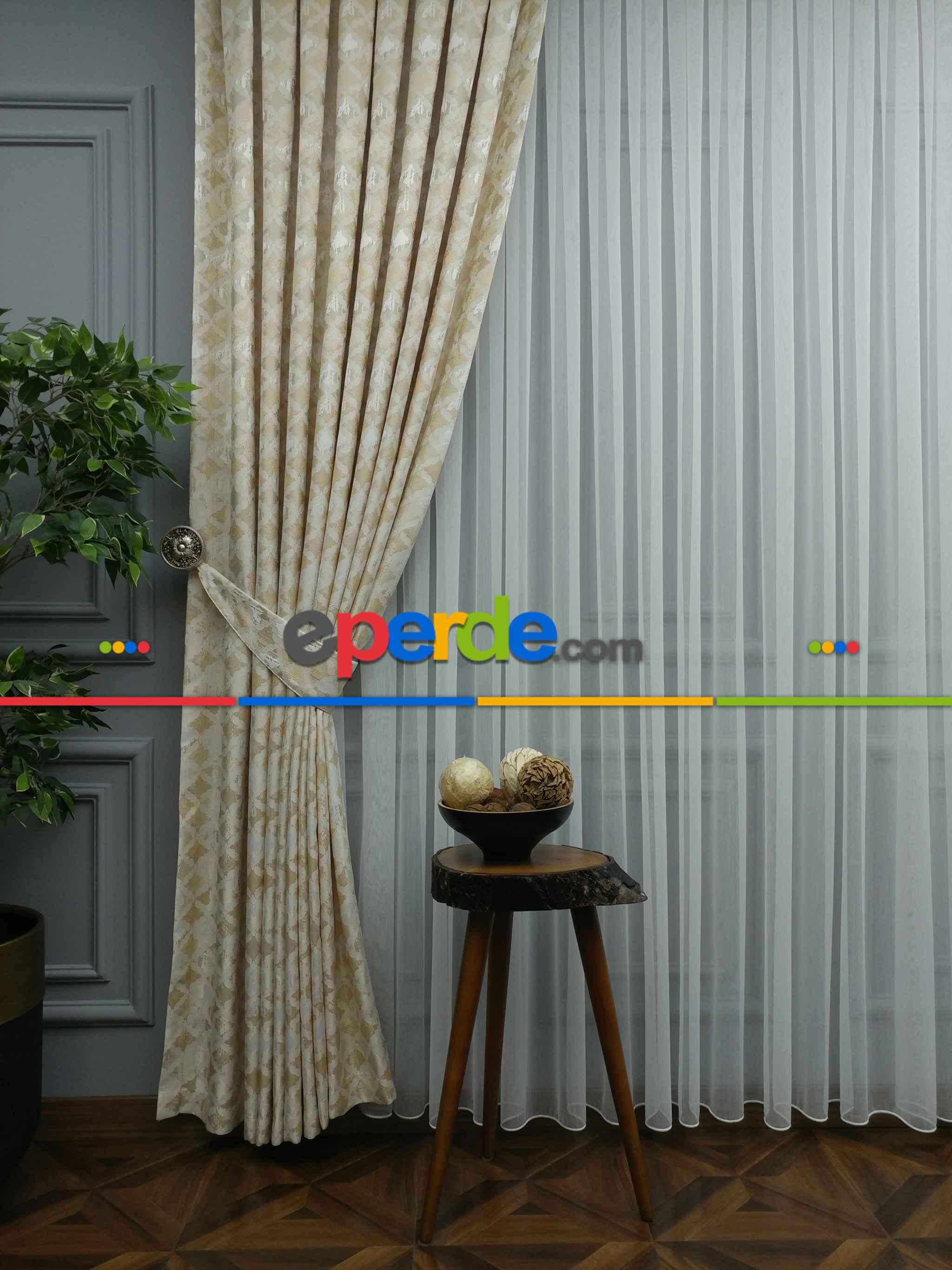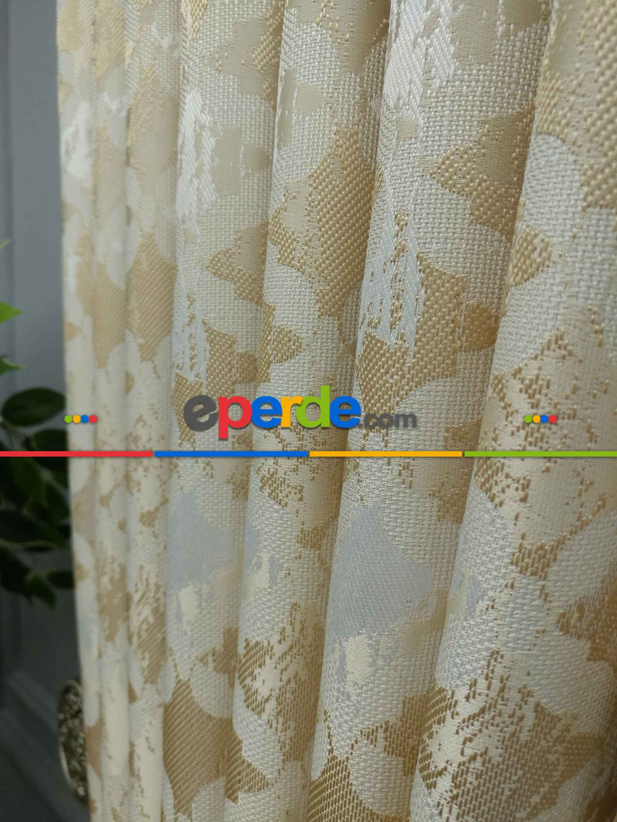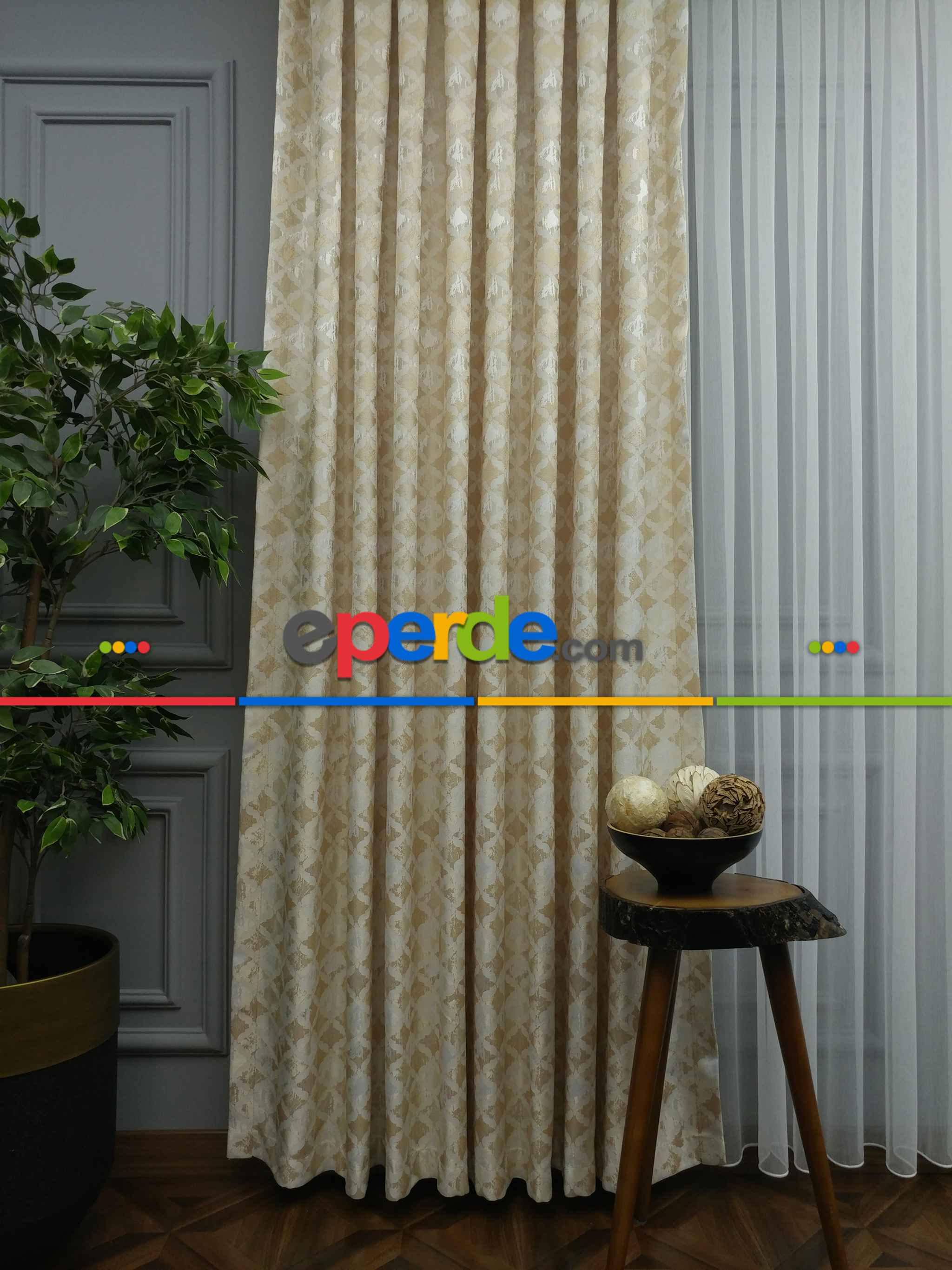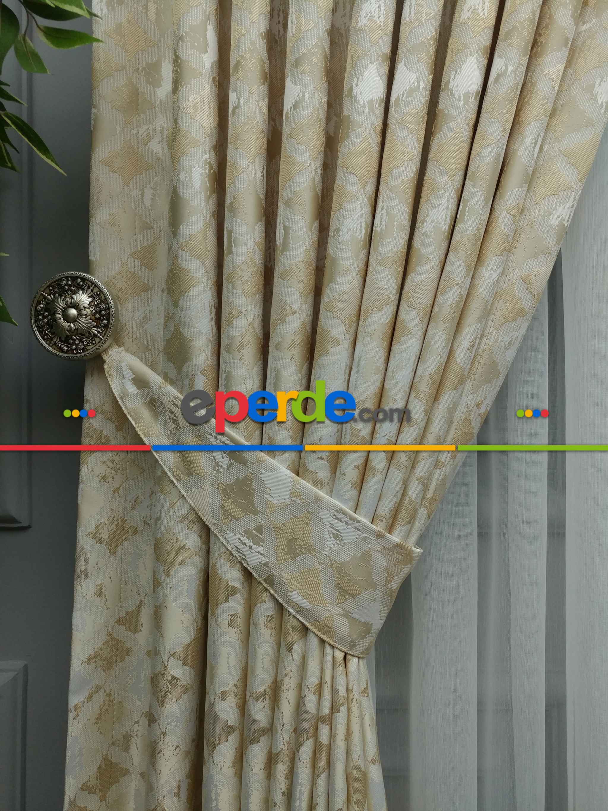 Krem Desenli Jakar Fon Perde (180)- Krem Ürün Açıklaması
