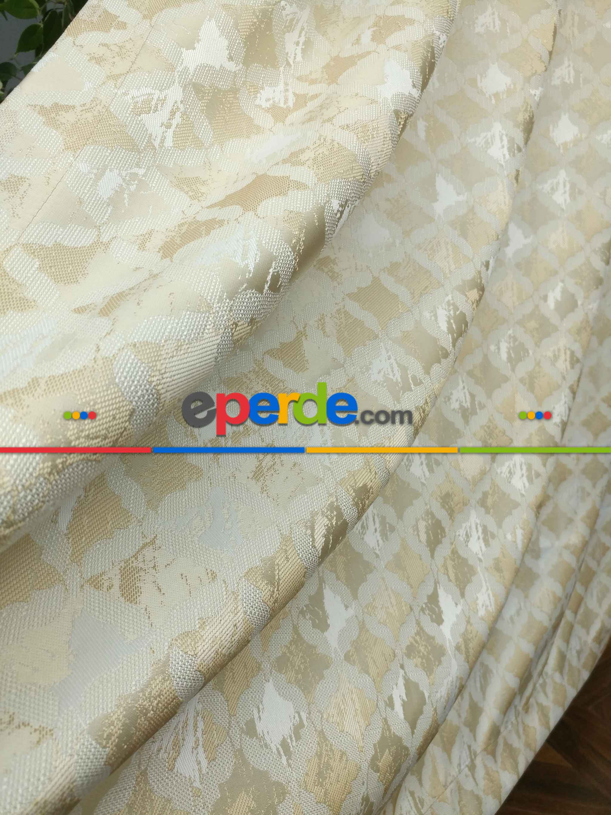 Krem Desenli Jakar Fon Perde (180)- Krem