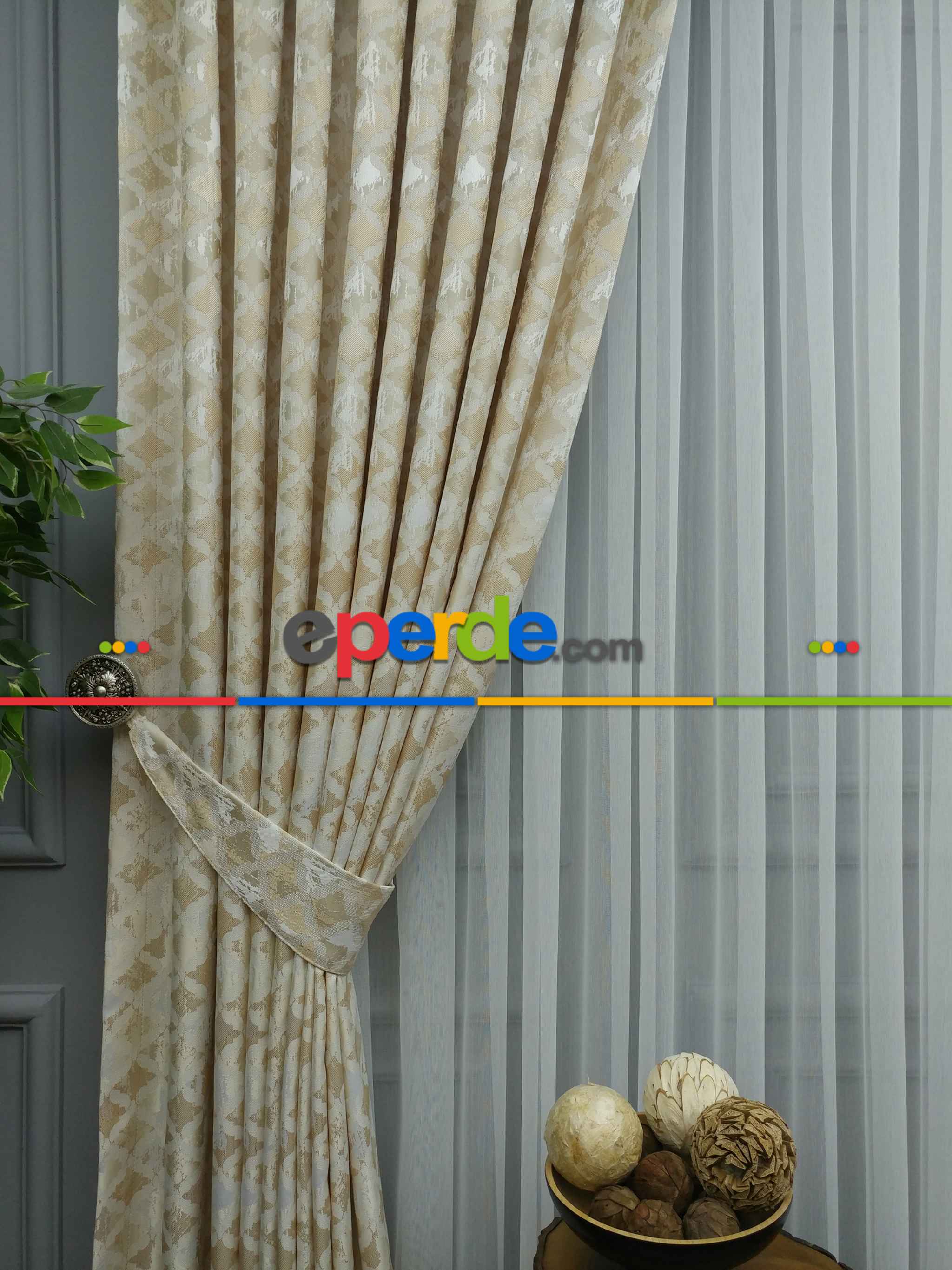 Güney Afrika | Krem Desenli Jakar Fon Perde (180)- Krem » Eperde