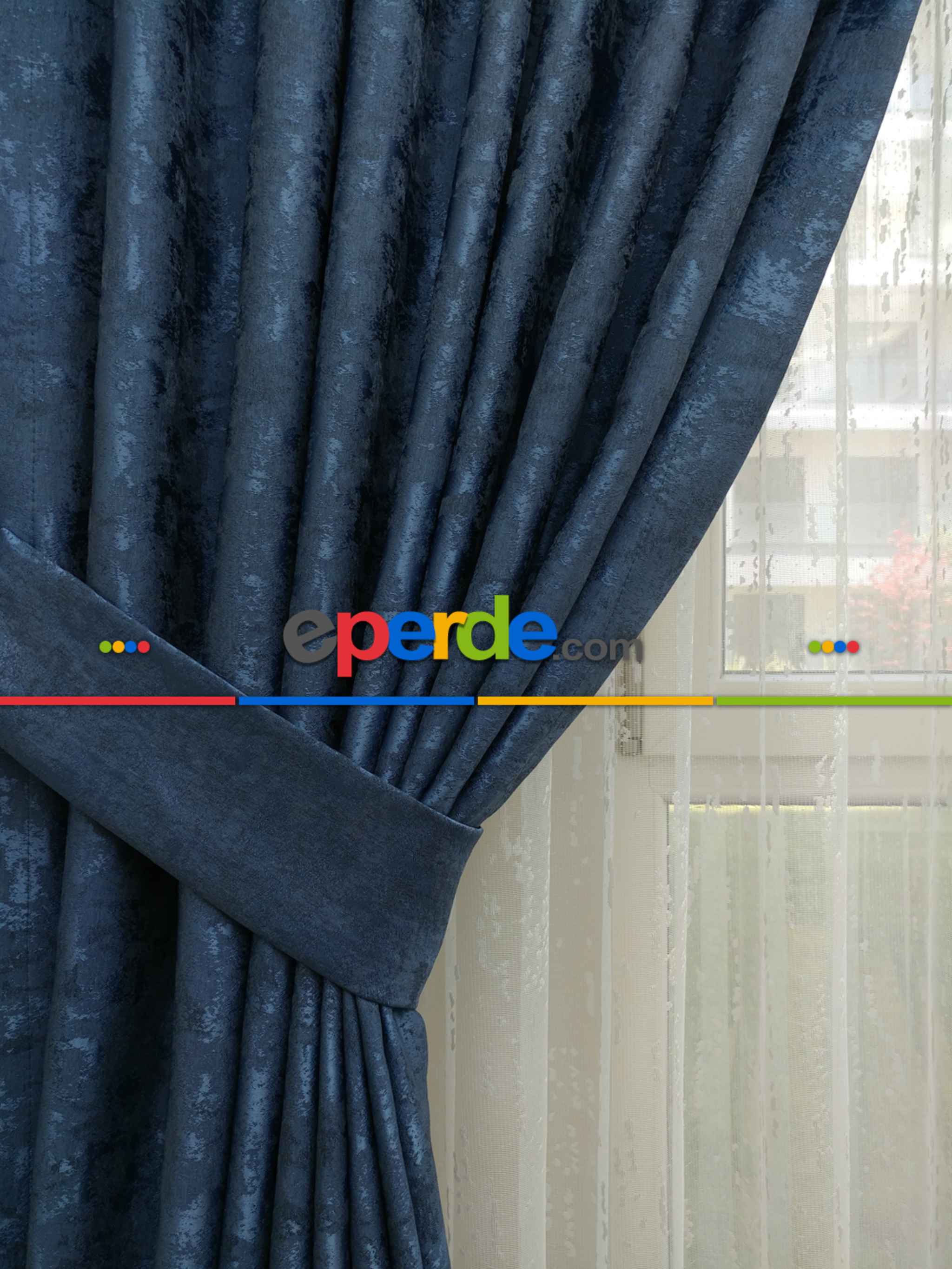 Pakistan | Patinedesenli Lacivert - Katyonik Jakar Fon Perde- Lacivert » Eperde
