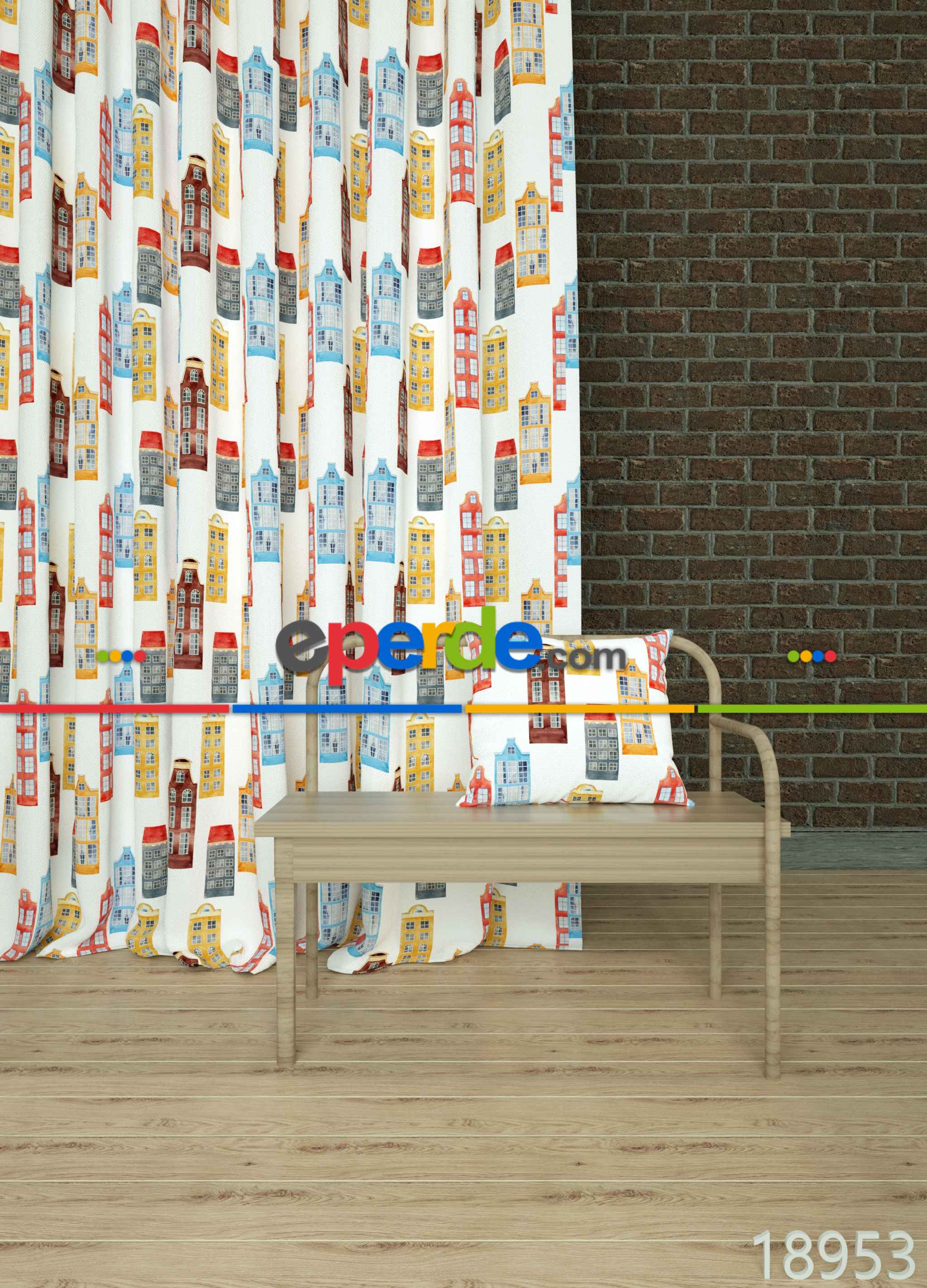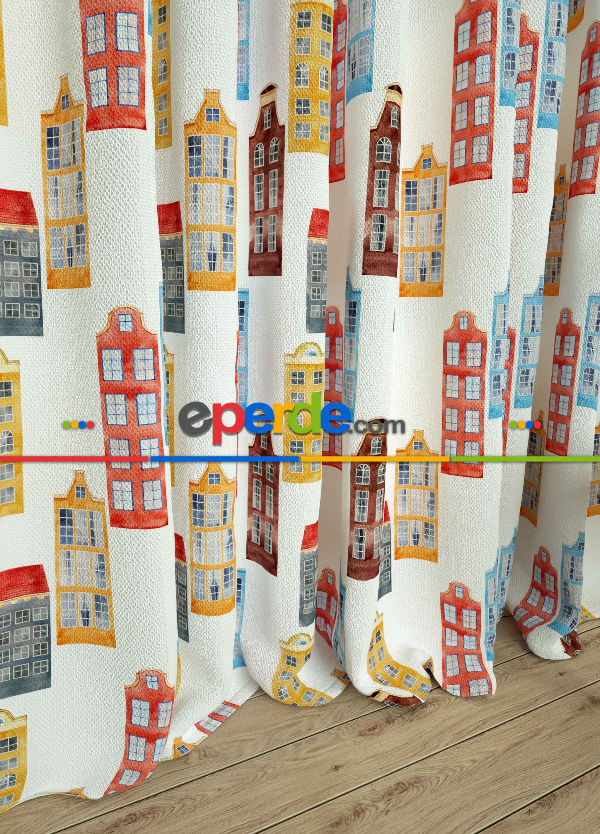 Mavi Kırmızı Küçük Boy Modern Desenli Baskılı Fon Perde Geniş En 1. Kalite