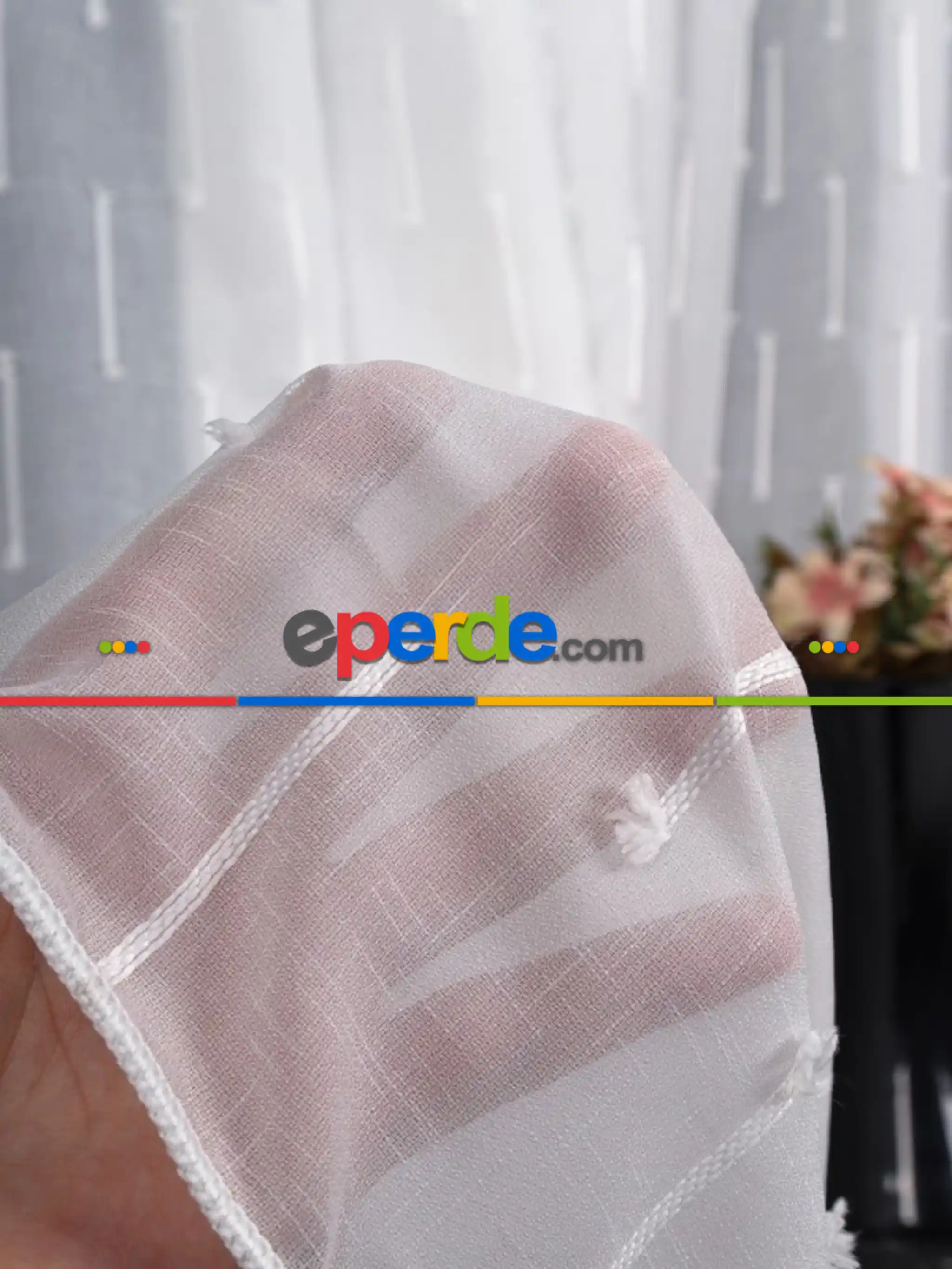 Pakistan | Minimal Çizgili Ekru Keten Tül Perde | Modern Ve Zarif Görünüm » Eperde