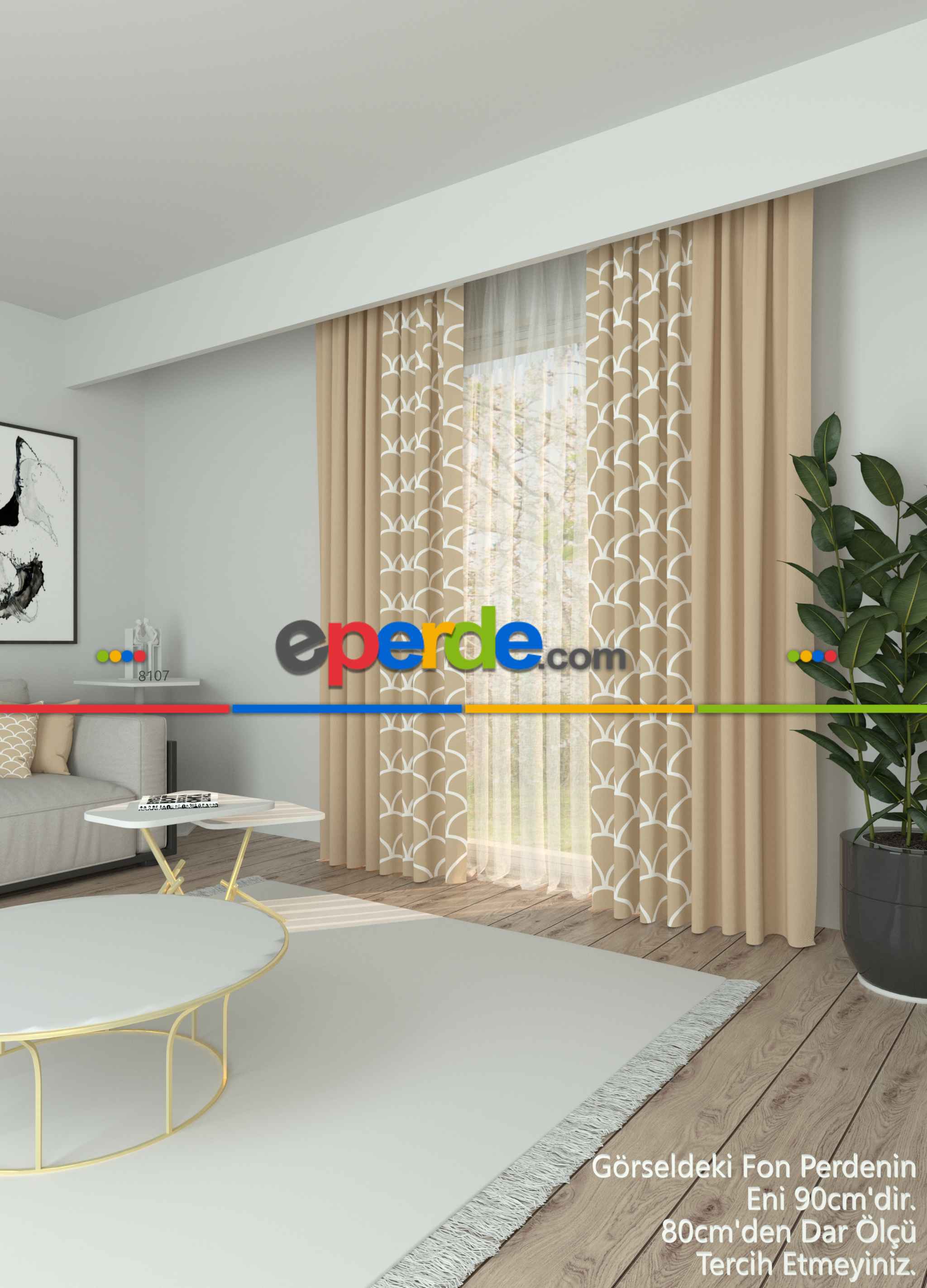 Dökümlü Kumaştan Modern Desenli Bej Kombinli Baskılı Fon Perde 1. Kalite