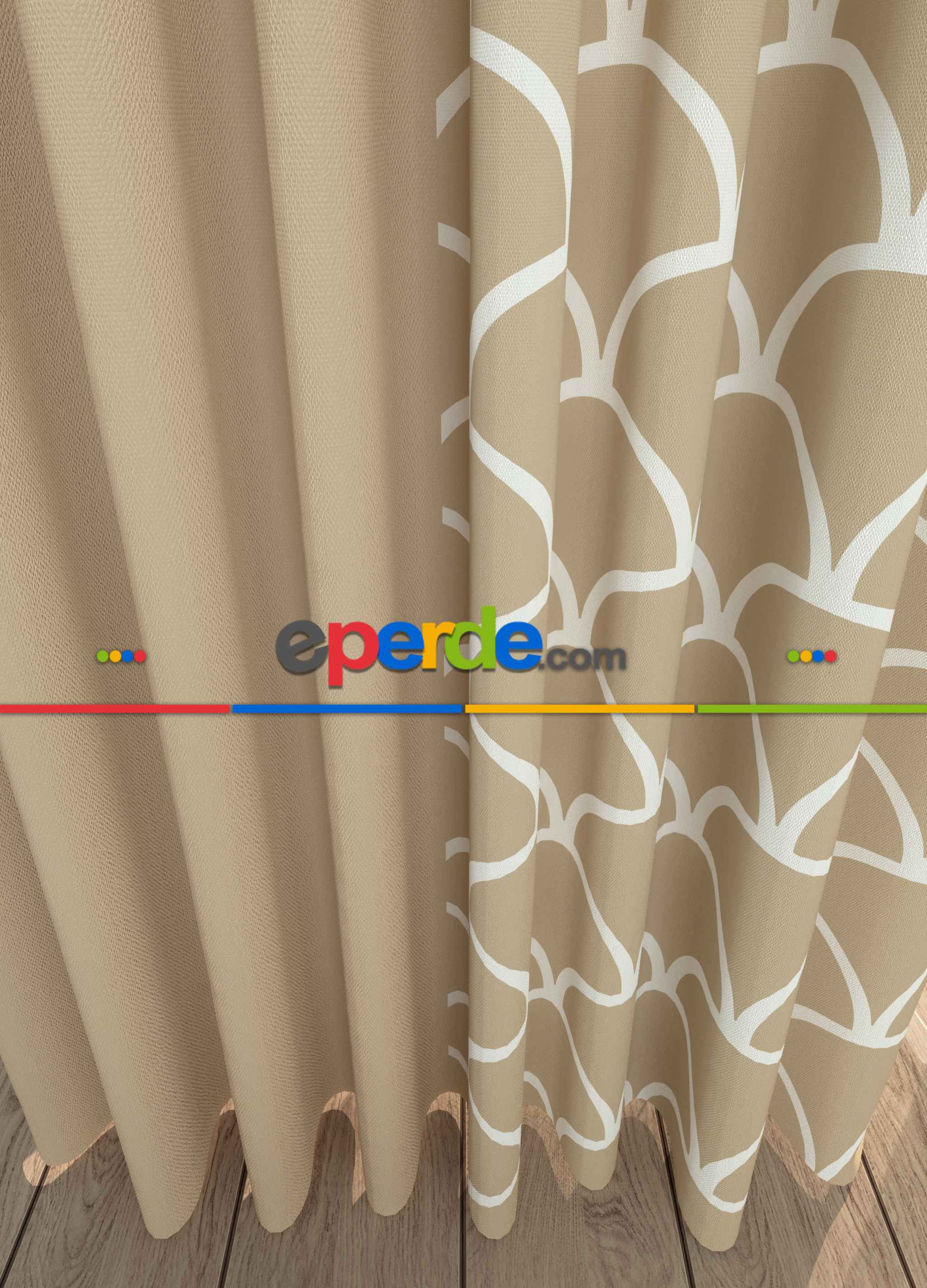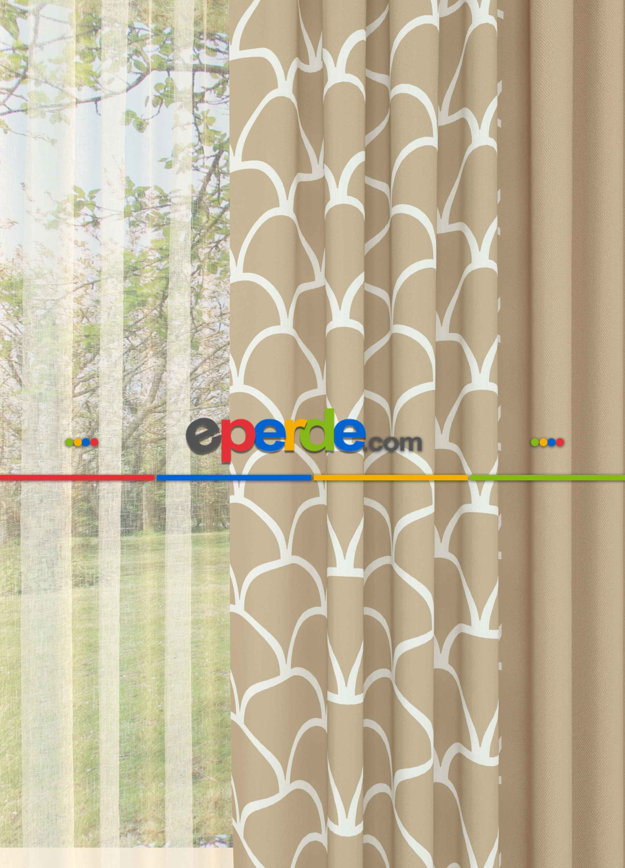 Dökümlü Kumaştan Modern Desenli Bej Kombinli Baskılı Fon Perde 1. Kalite » Eperde