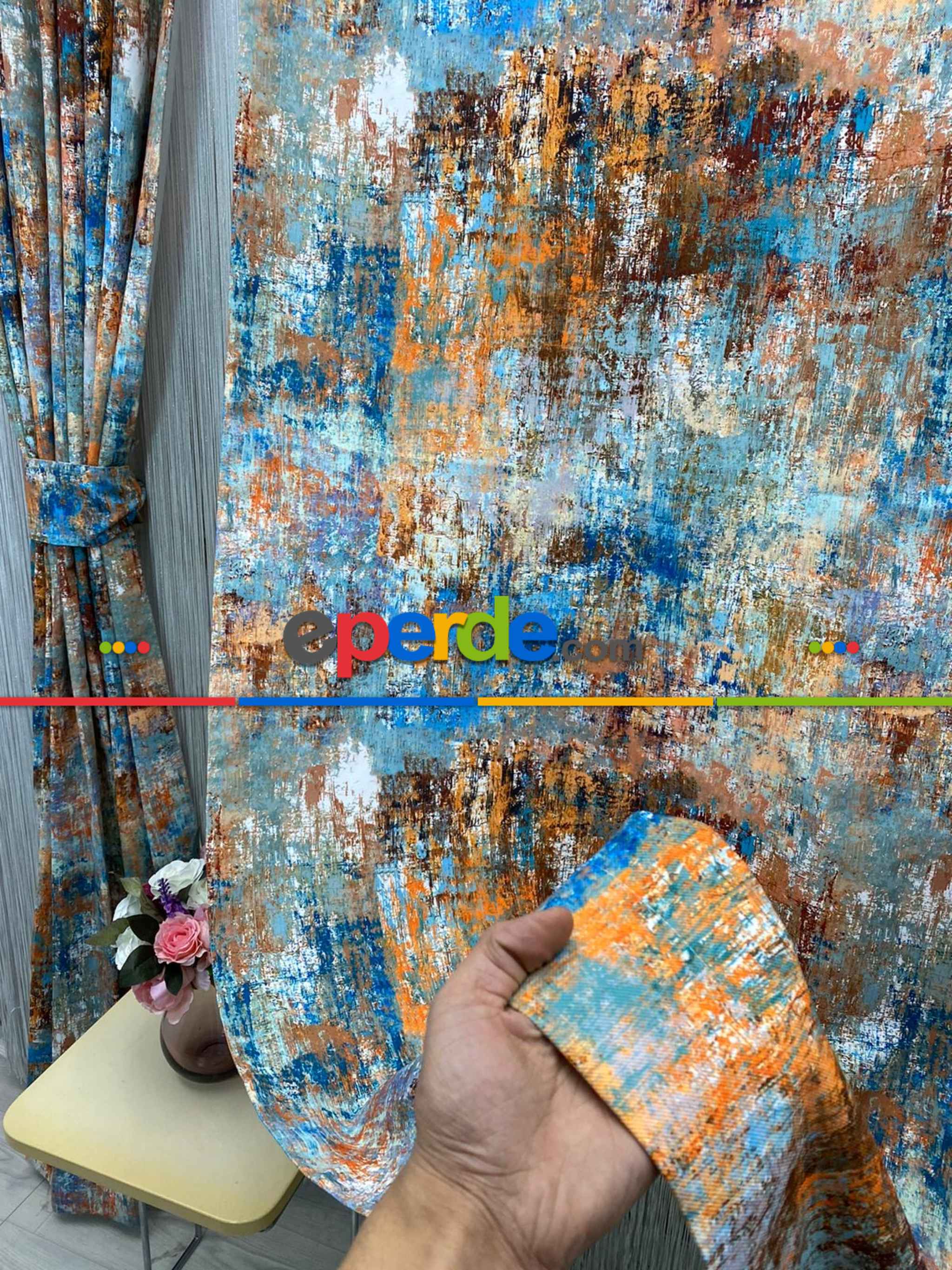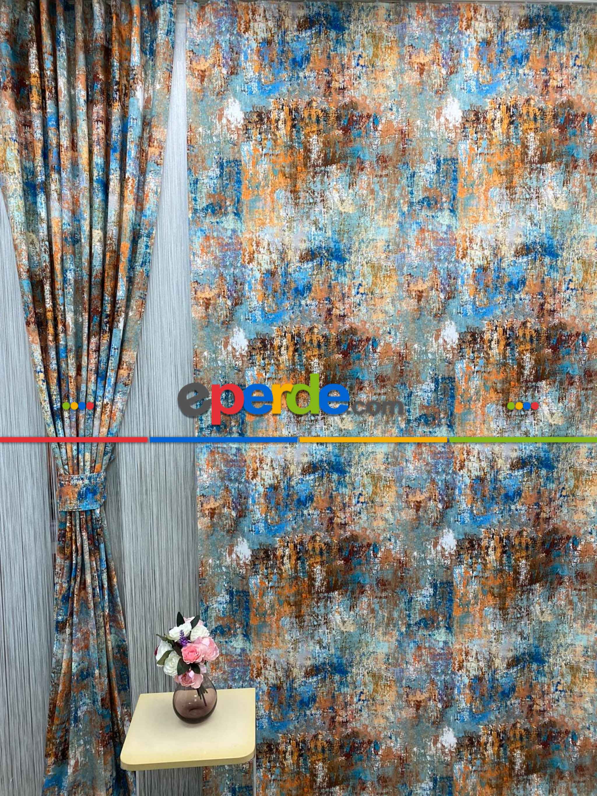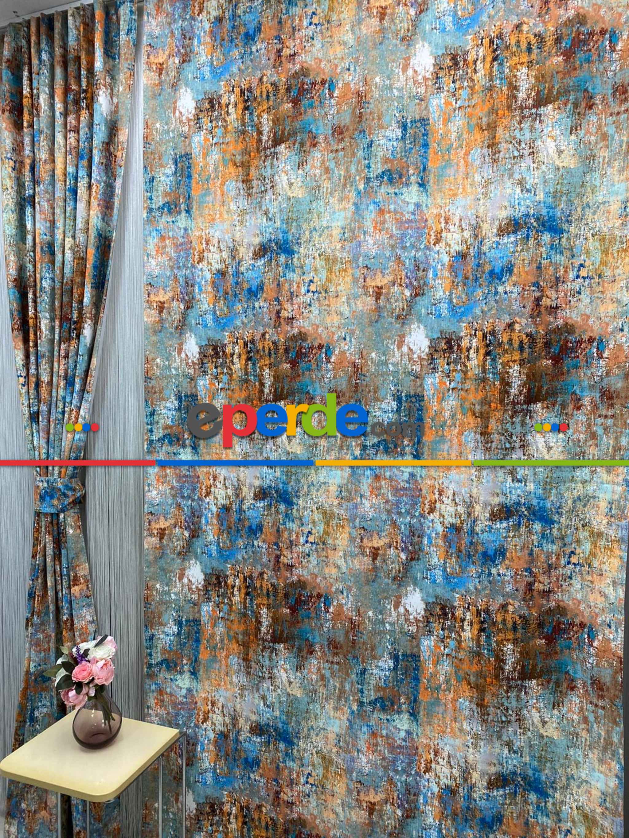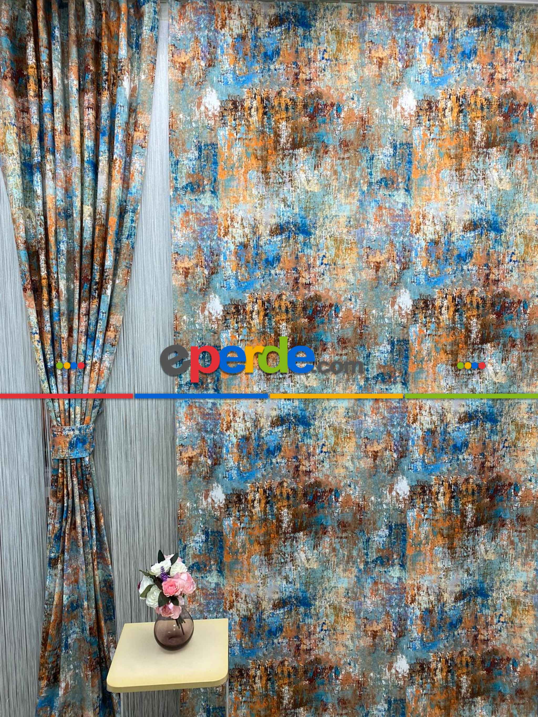 Modern Desenli Fon Perde 7 - ( Kalın Pamuklu Kumaş)- Kahve Venge-mavi Açık-mavi Koyu-ekru-hardal Sarısı