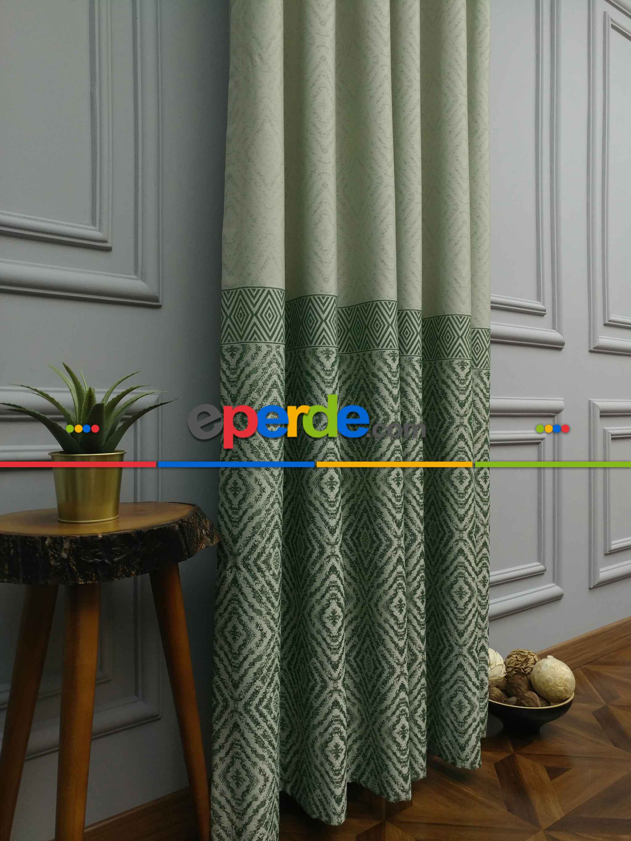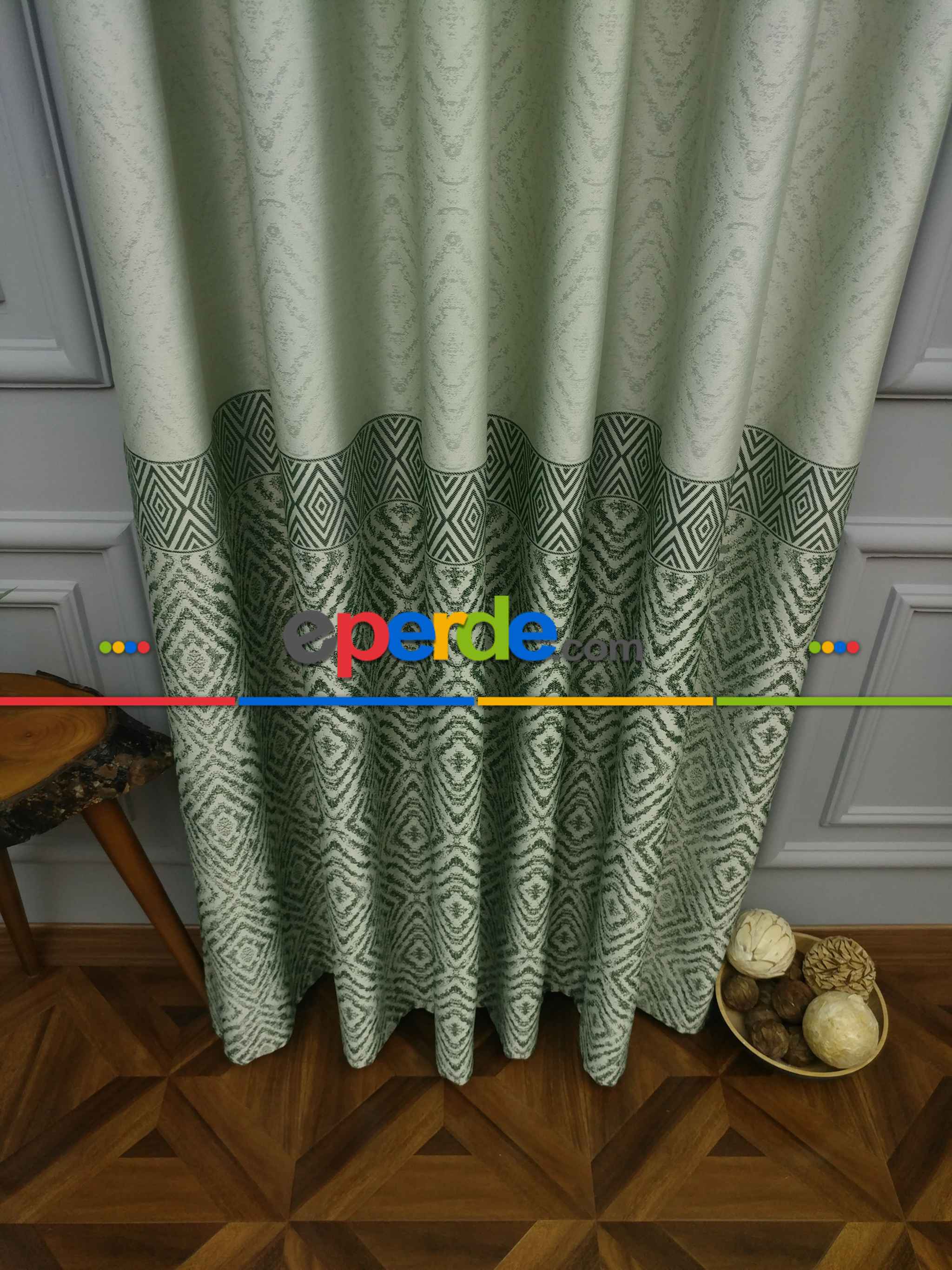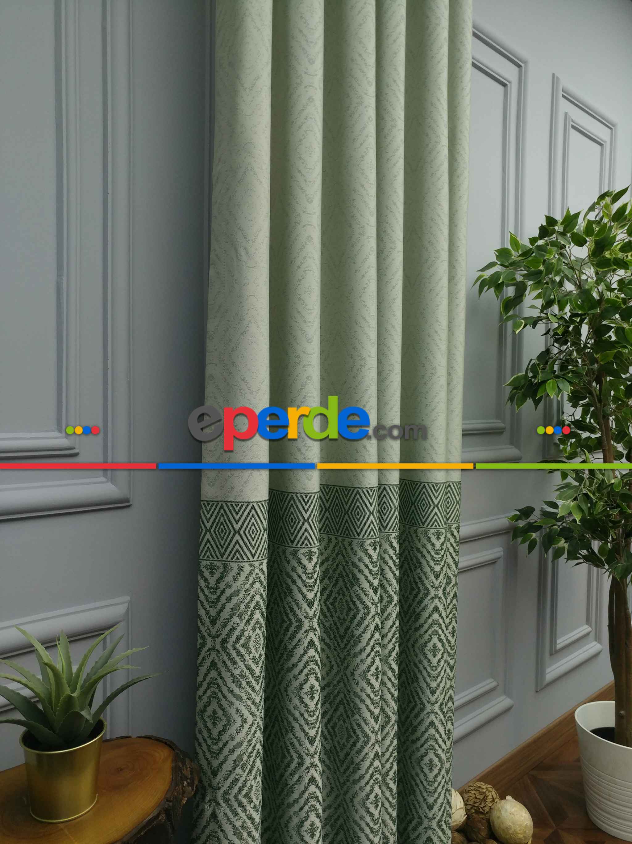 Modern Pano Fon Perde Bantlı Çift Renk - 501- Yeşil-bej-haki Ürün Açıklaması