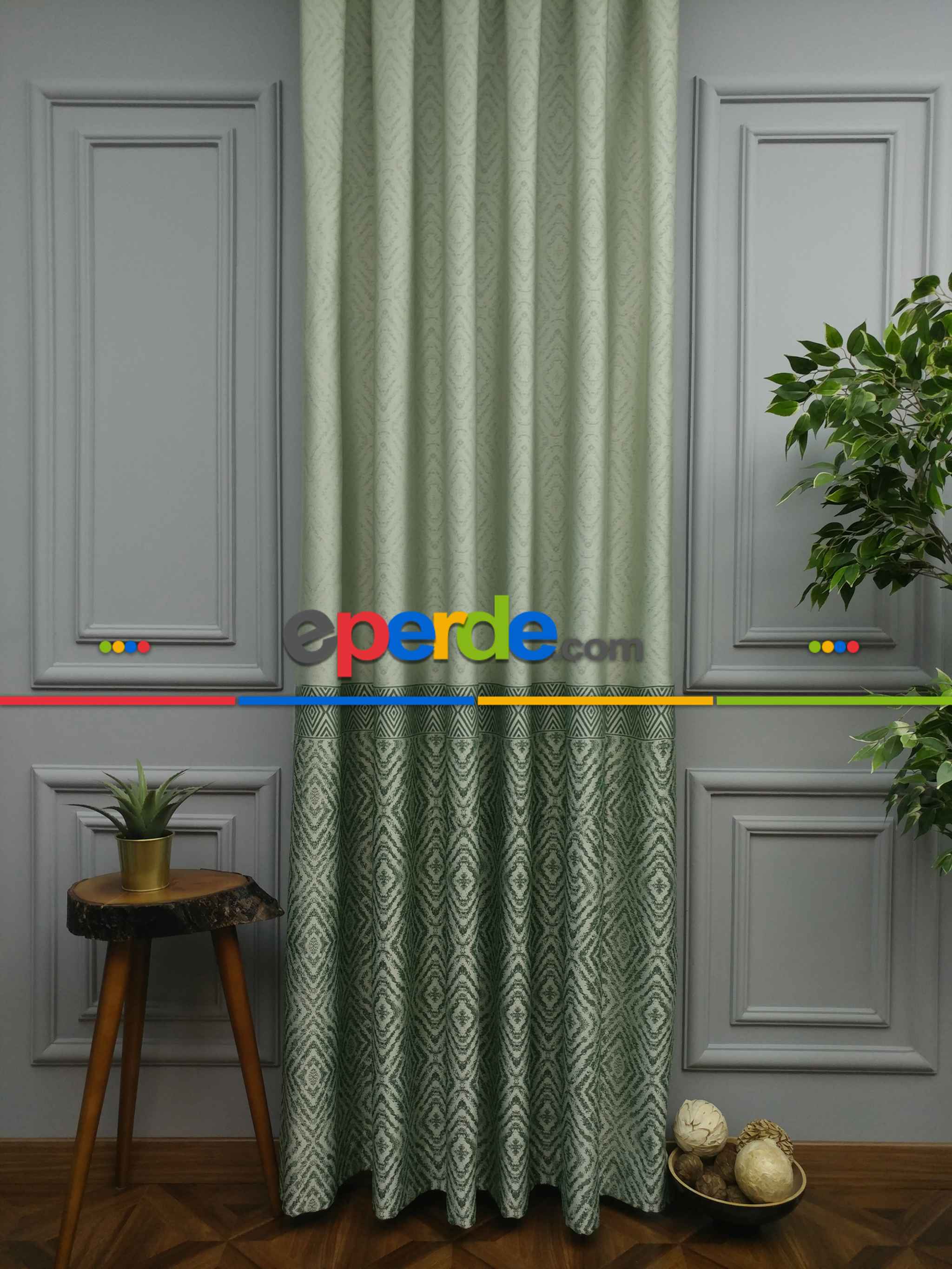 Belçika | Modern Pano Fon Perde Bantlı Çift Renk - 501- Yeşil-bej-haki » Eperde