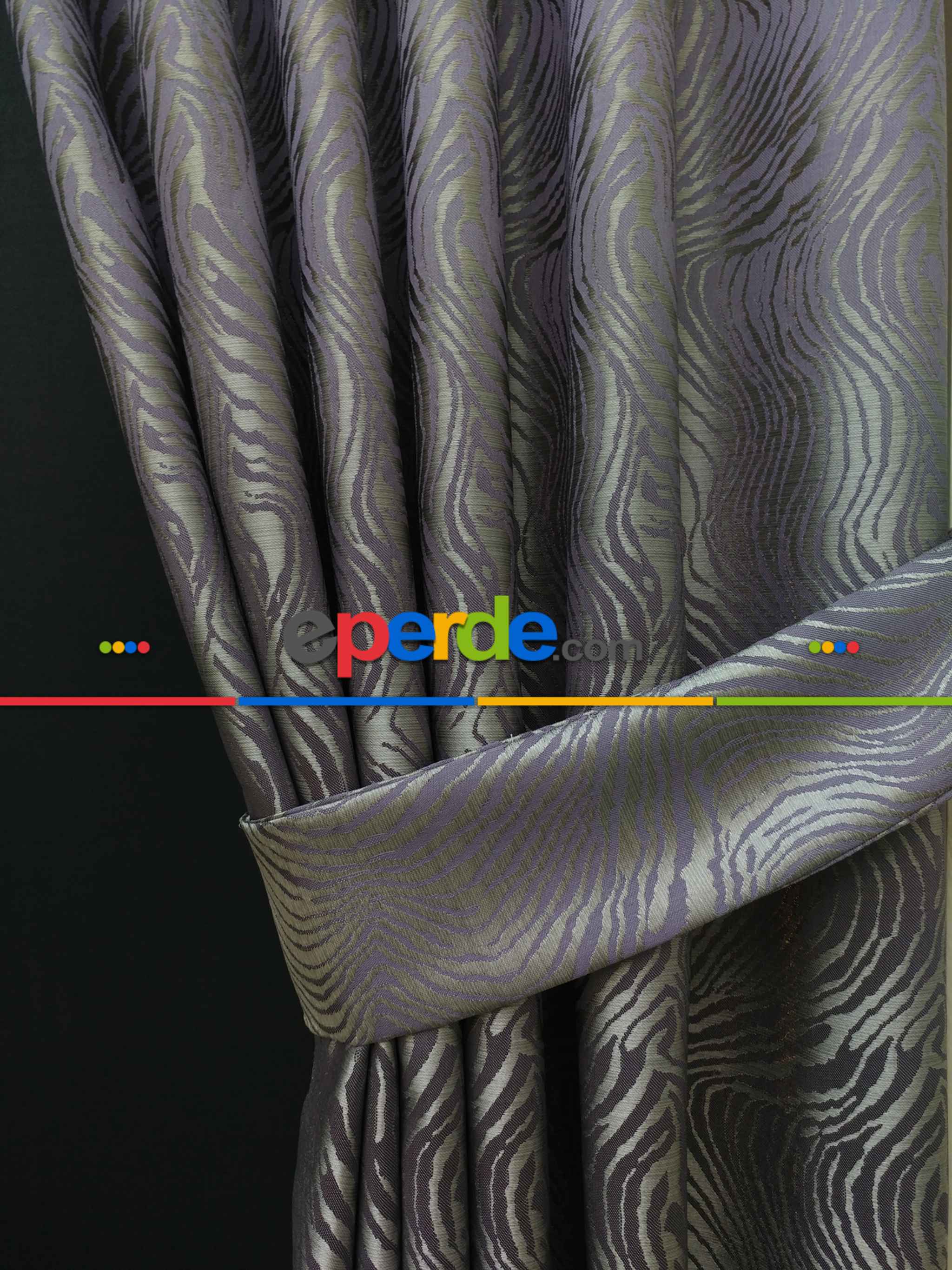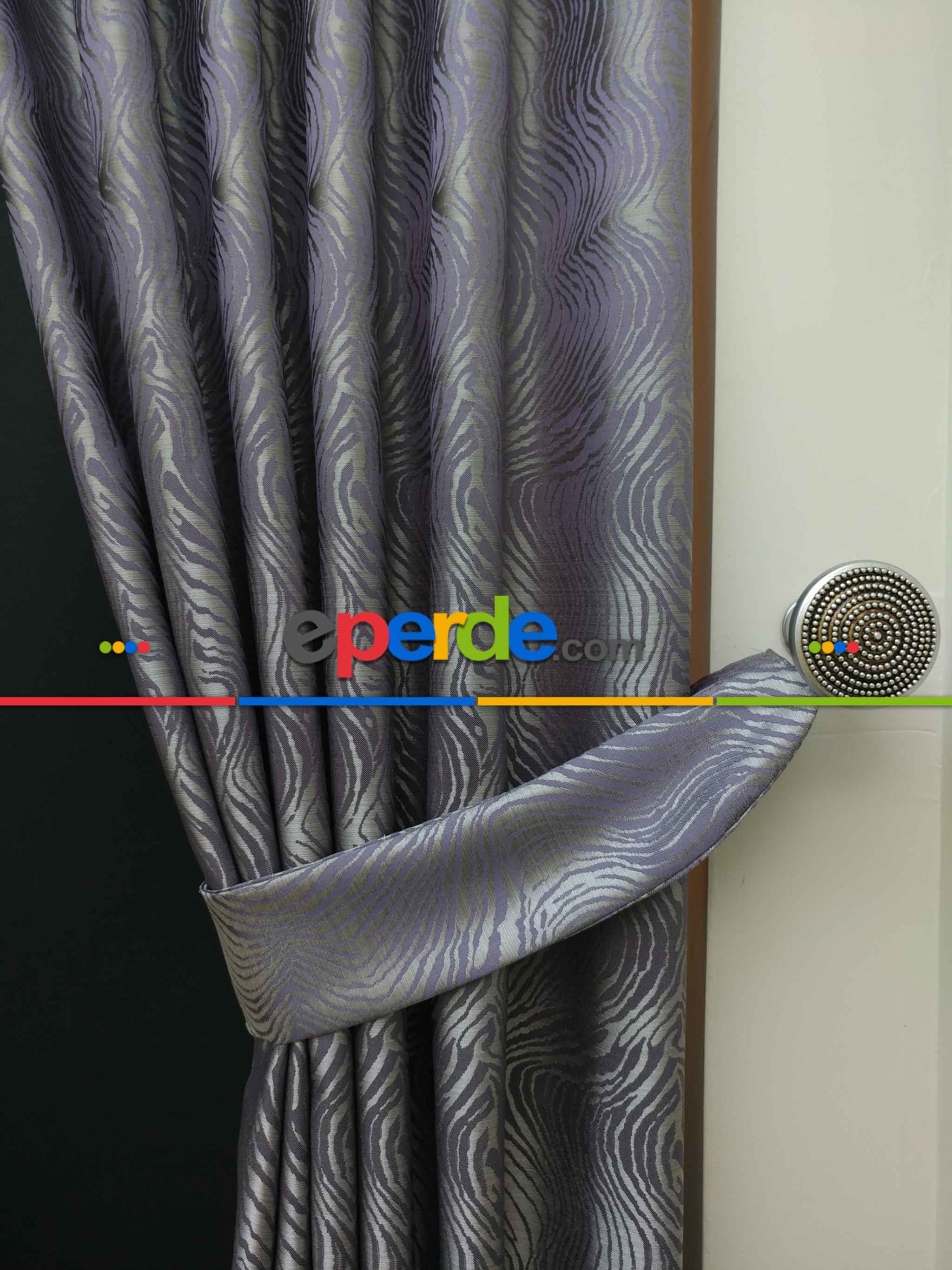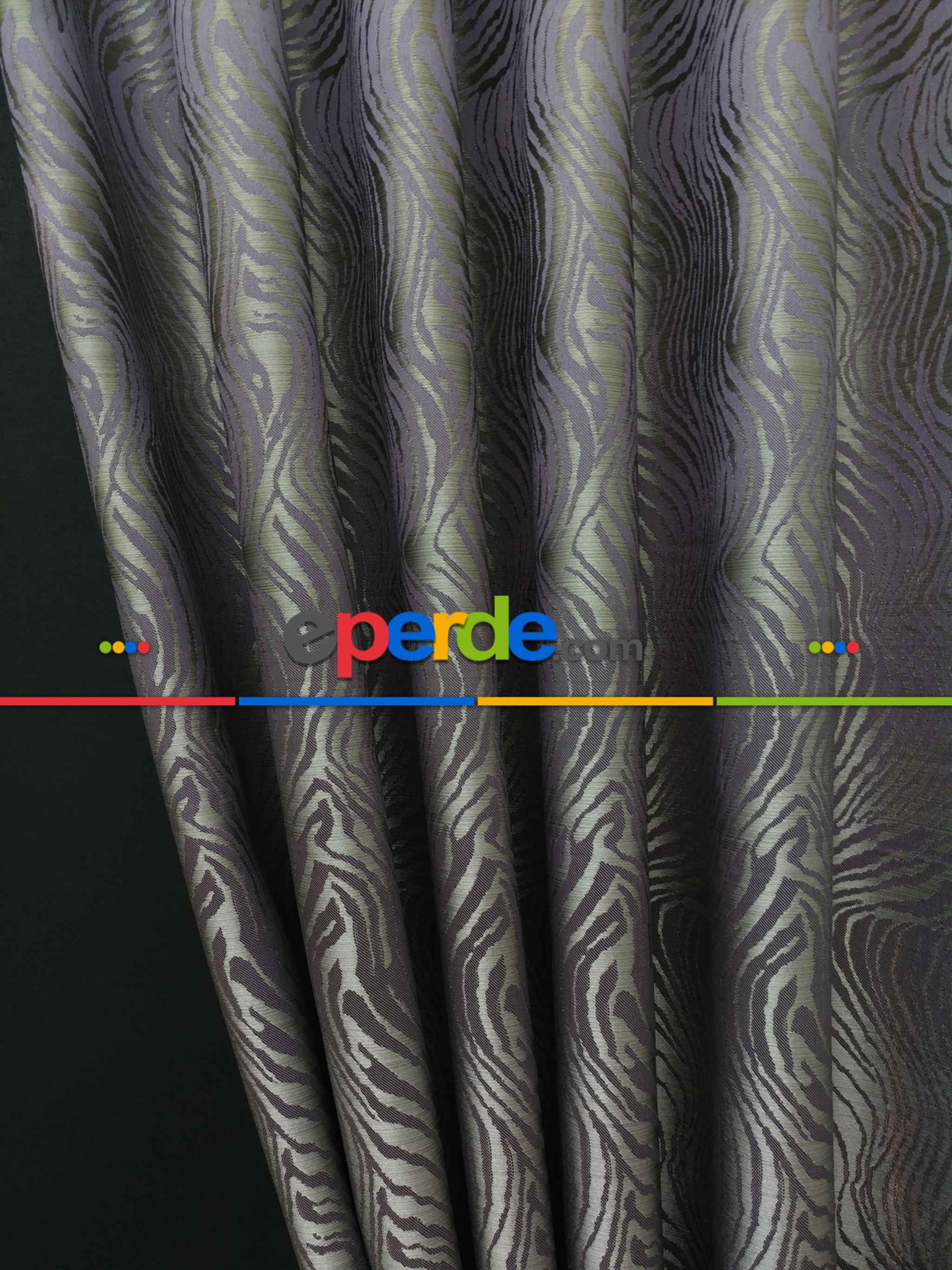 Dikiş Fiyata Dahildir - Mor Dalga Desenli Jakar Fon Perde- Mor Ödeme Seçenekleri