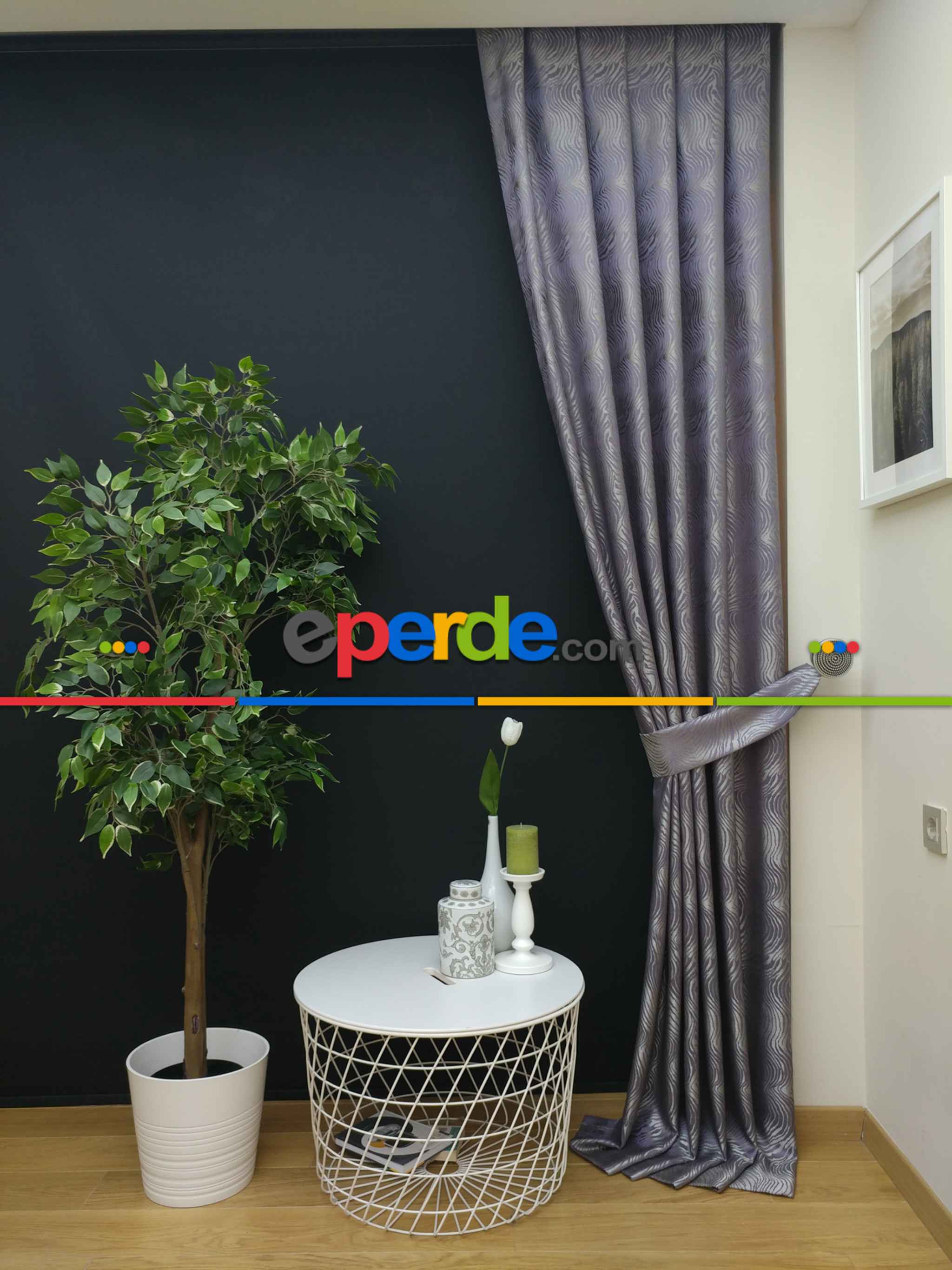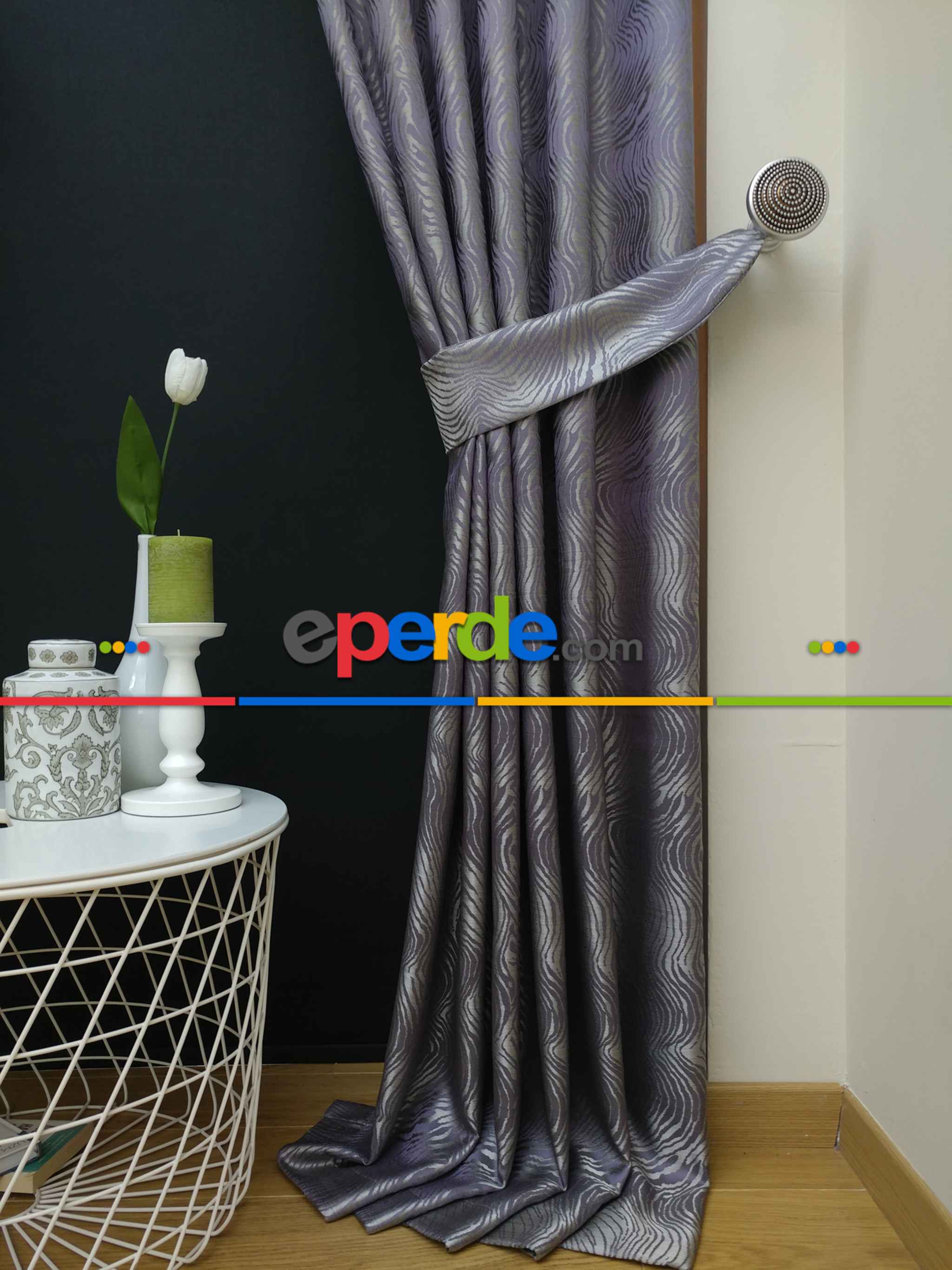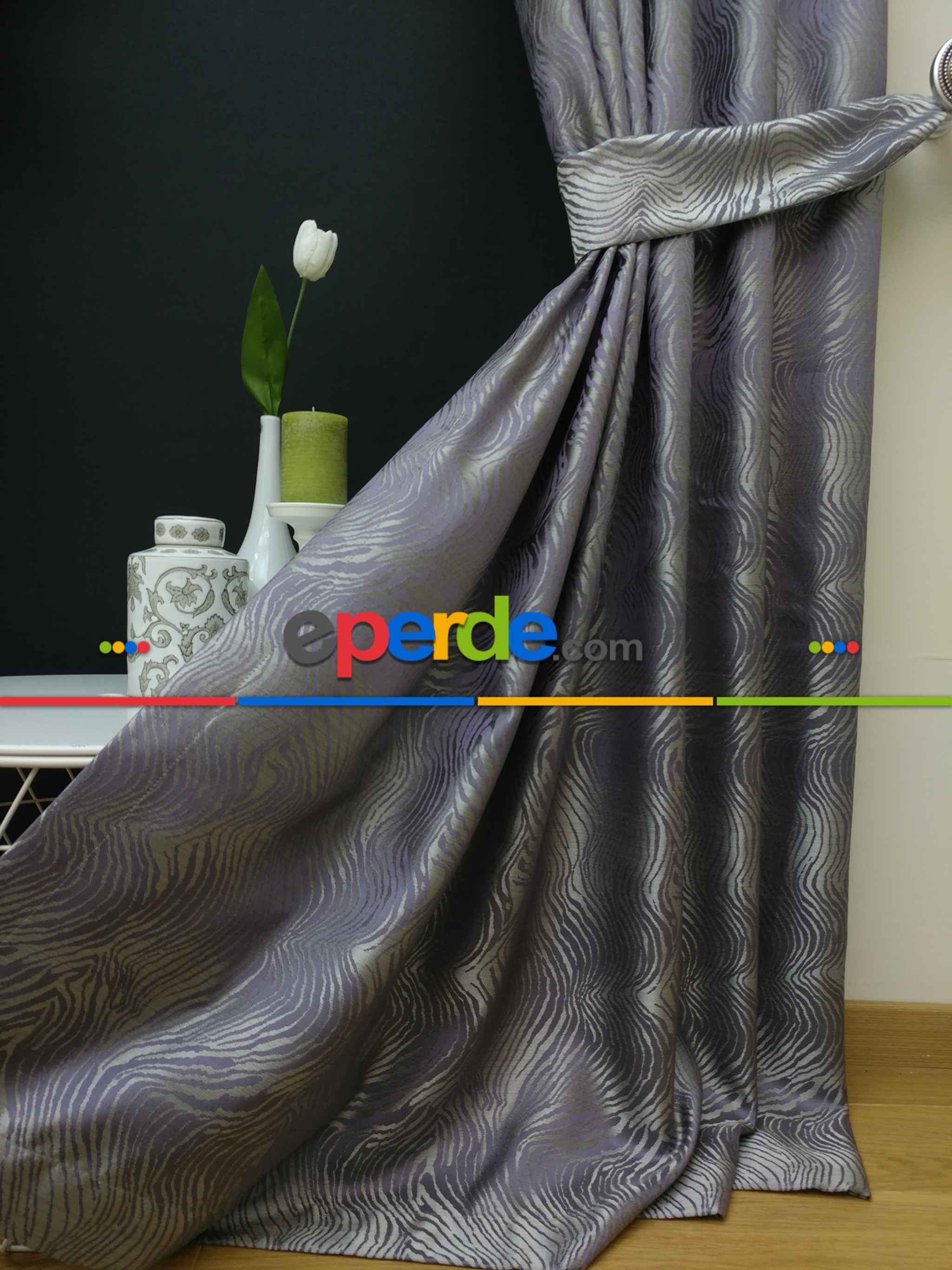 Dikiş Fiyata Dahildir - Mor Dalga Desenli Jakar Fon Perde- Mor Ödeme Seçenekleri