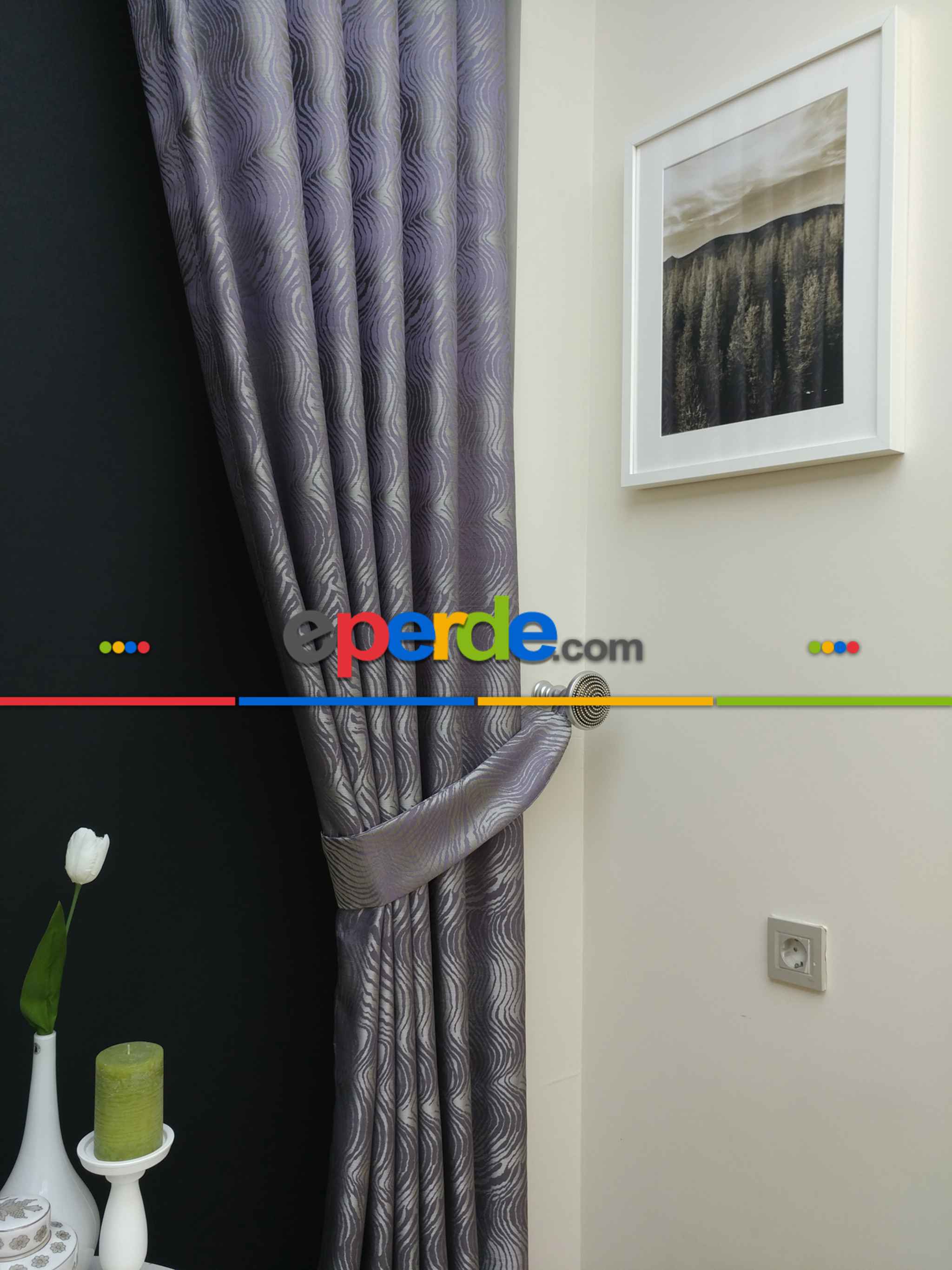 Dikiş Fiyata Dahildir - Mor Dalga Desenli Jakar Fon Perde- Mor Ürün Açıklaması