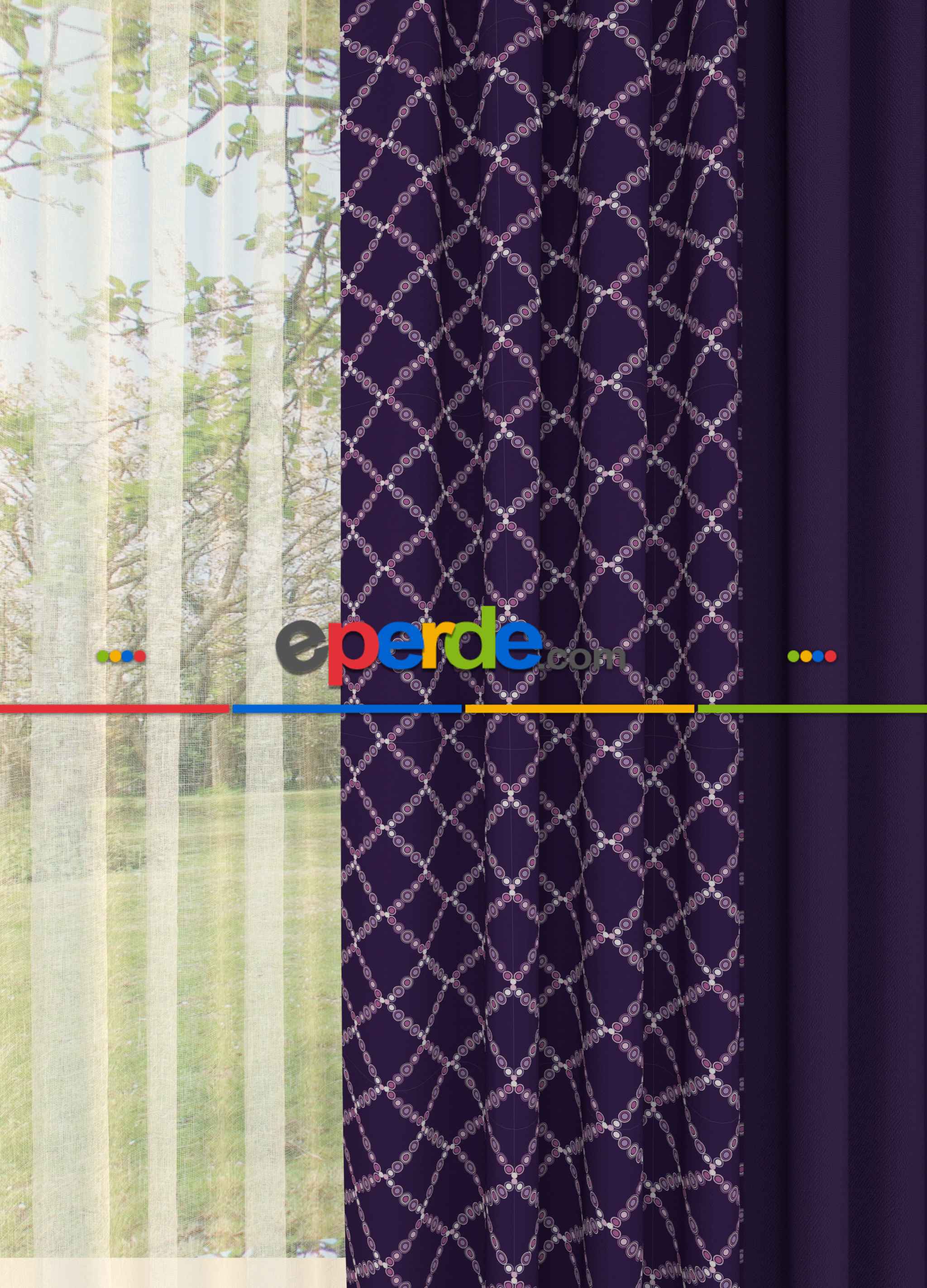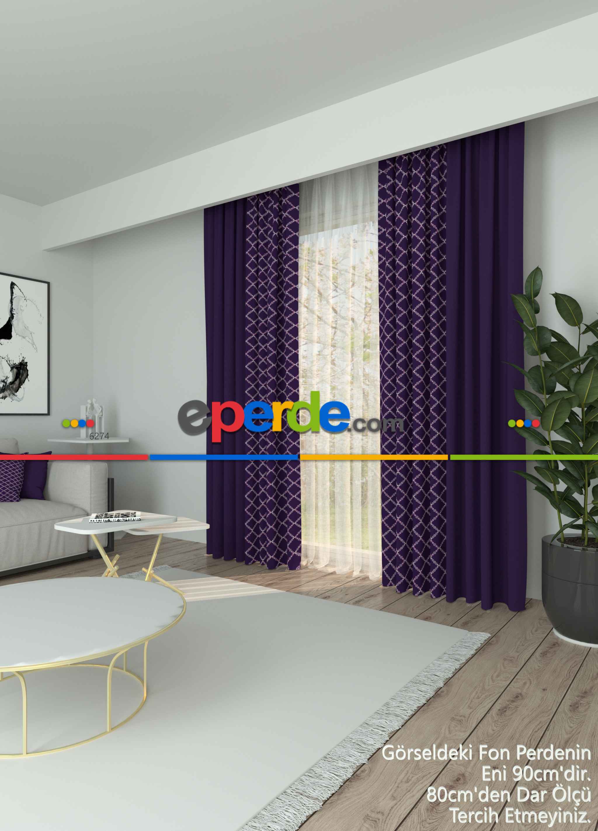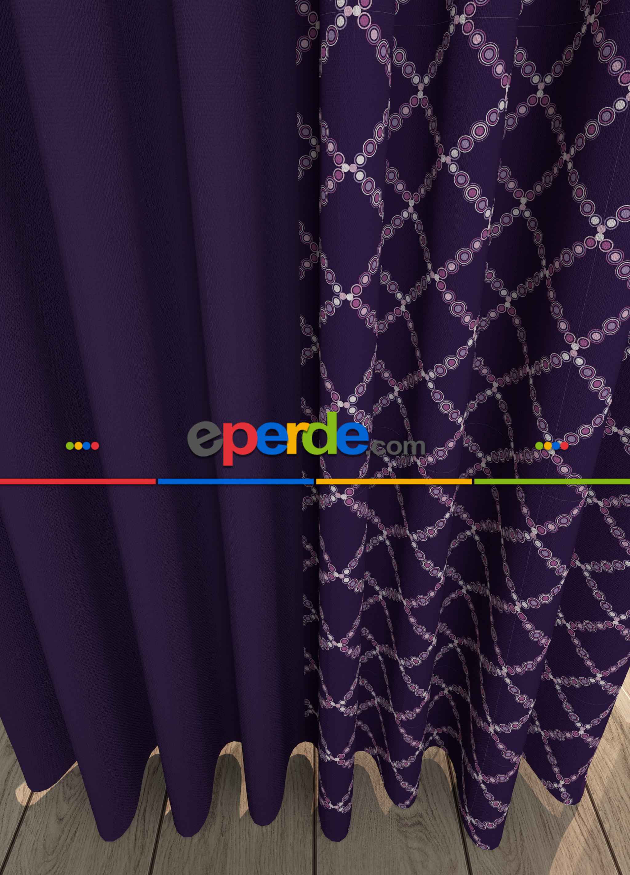 Dökümlü Kumaştan Mor Geometrik Desenli Baskılı Fon Perde Geniş En Kombinli 1. Kalite