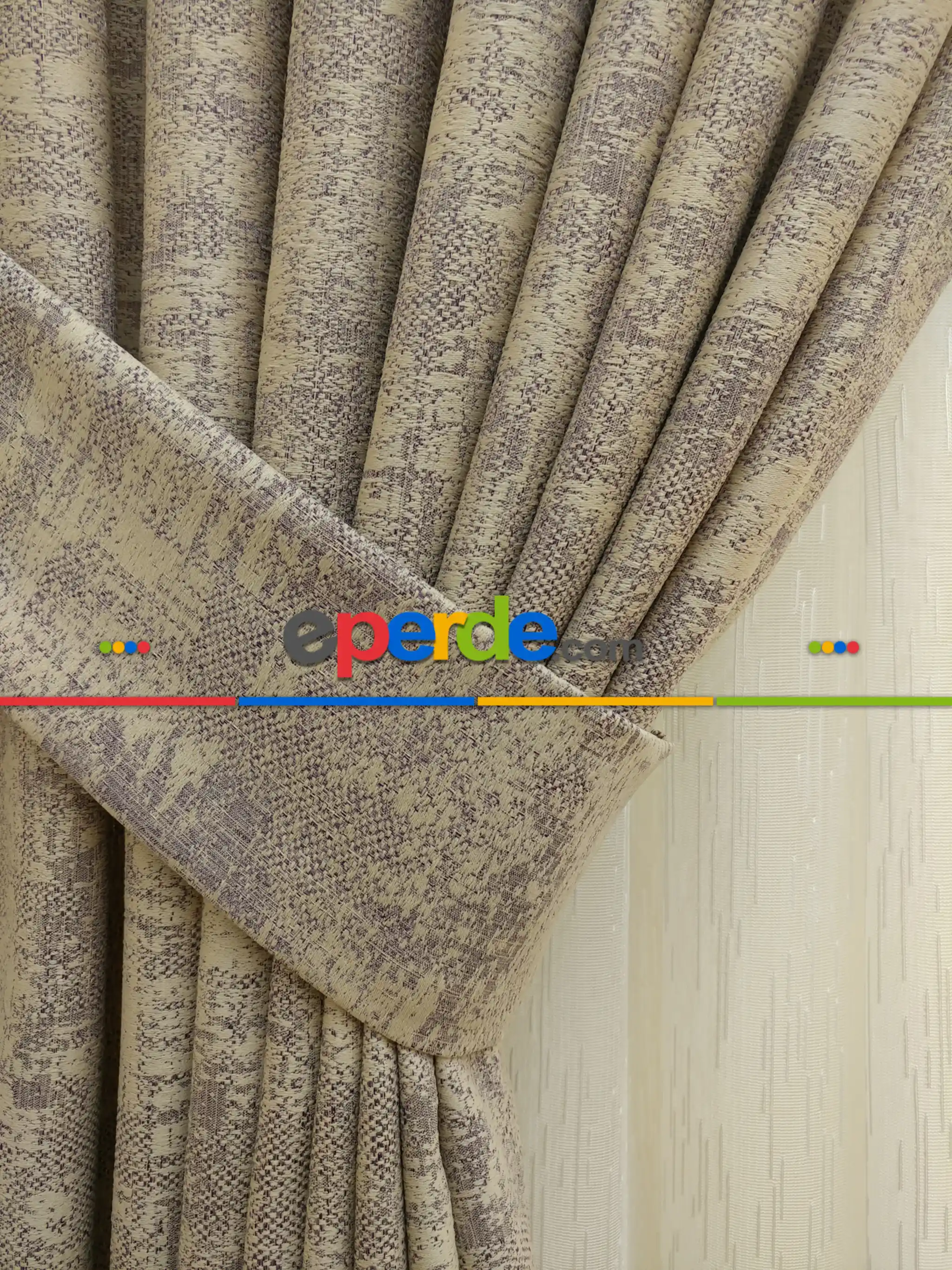 Mürdüm Krem- Düz Jakar Fon Perde (180)- Krem-mürdüm » Eperde