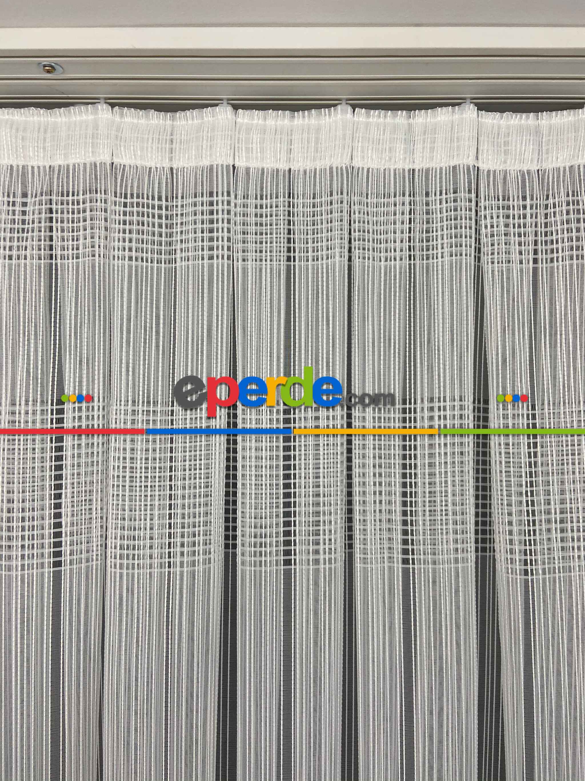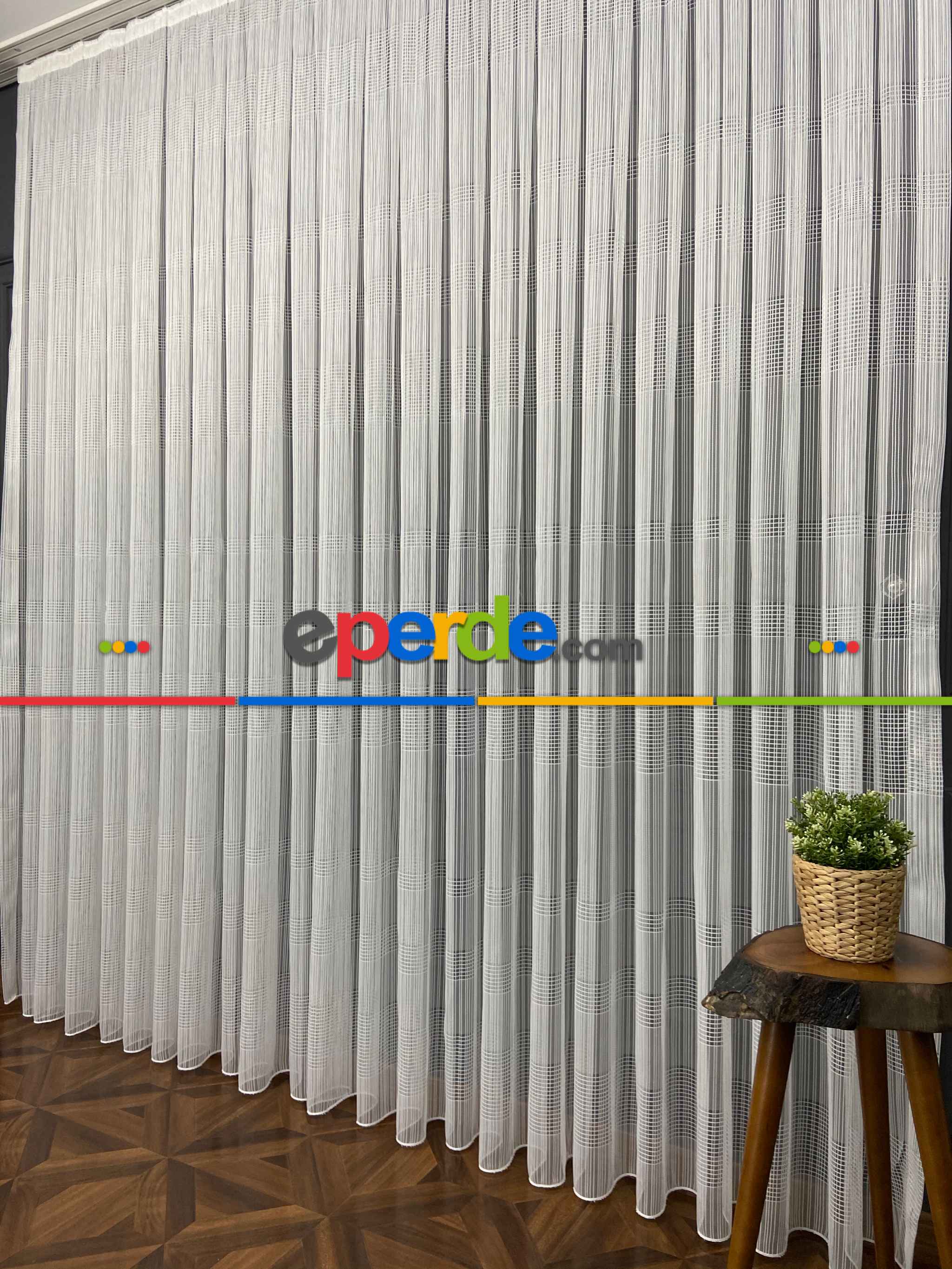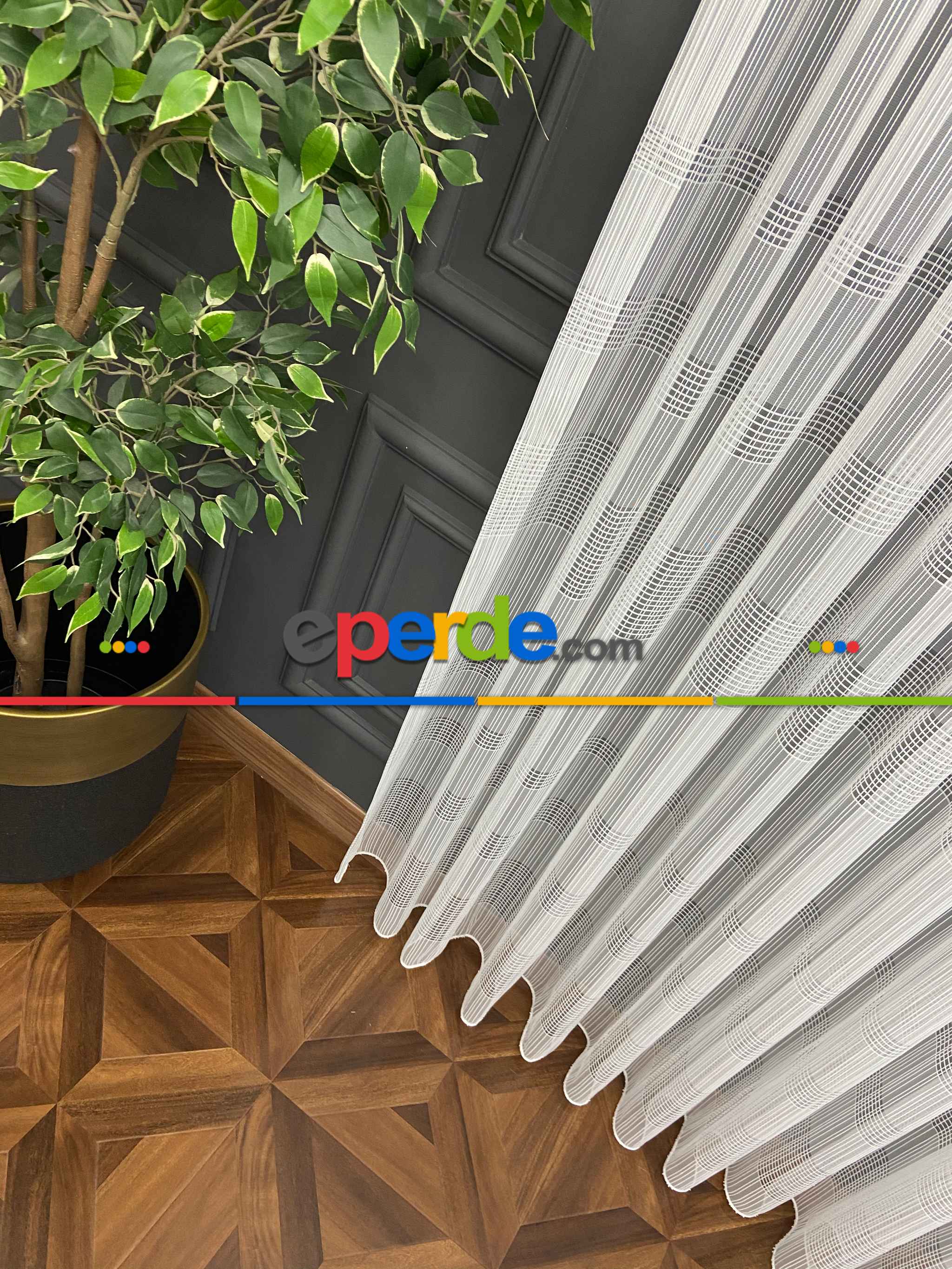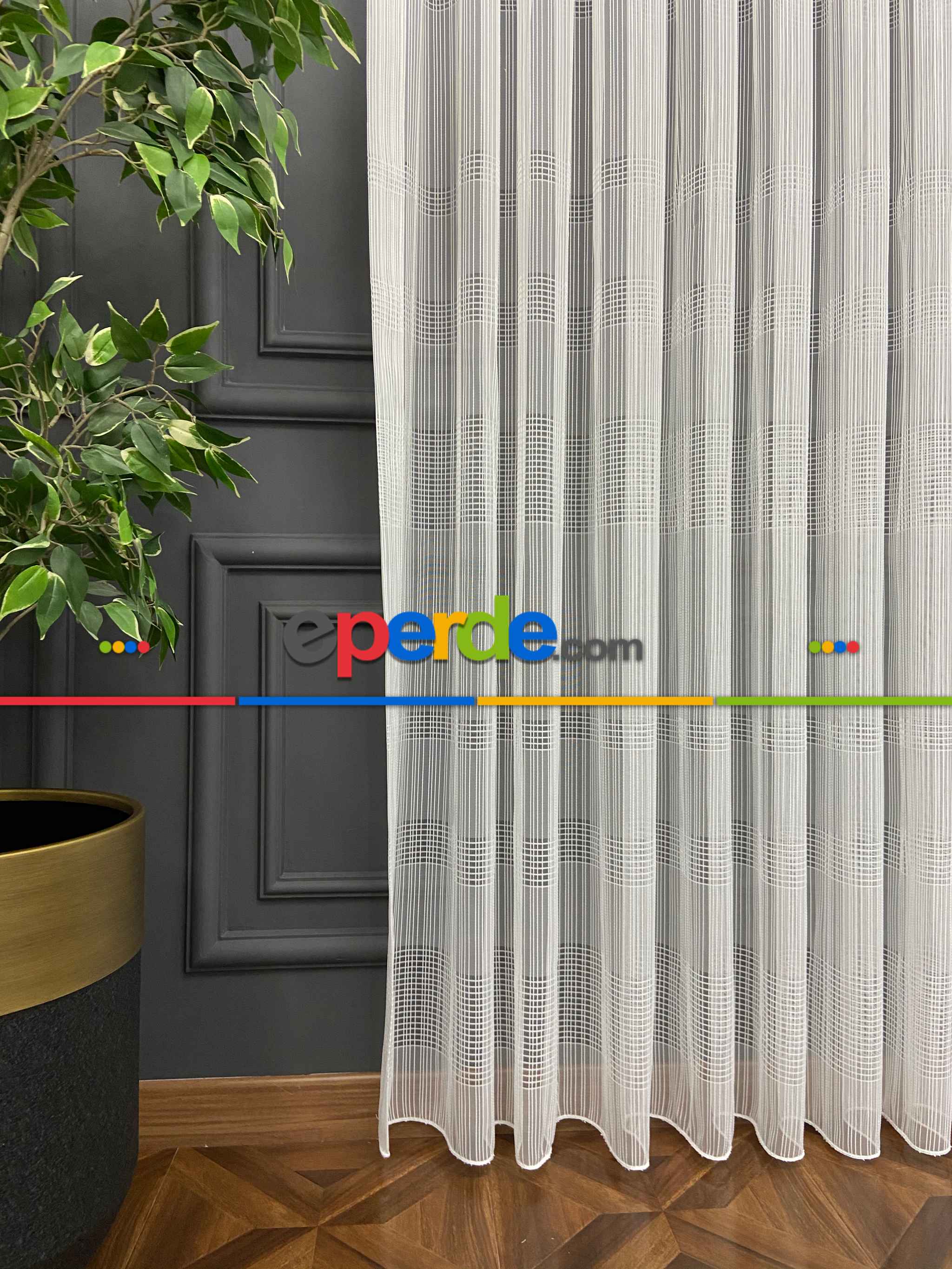Mutfak - Zincir Çizgili Tül Perde Ekru Renk Kırık Beyaz- Ekru » Eperde