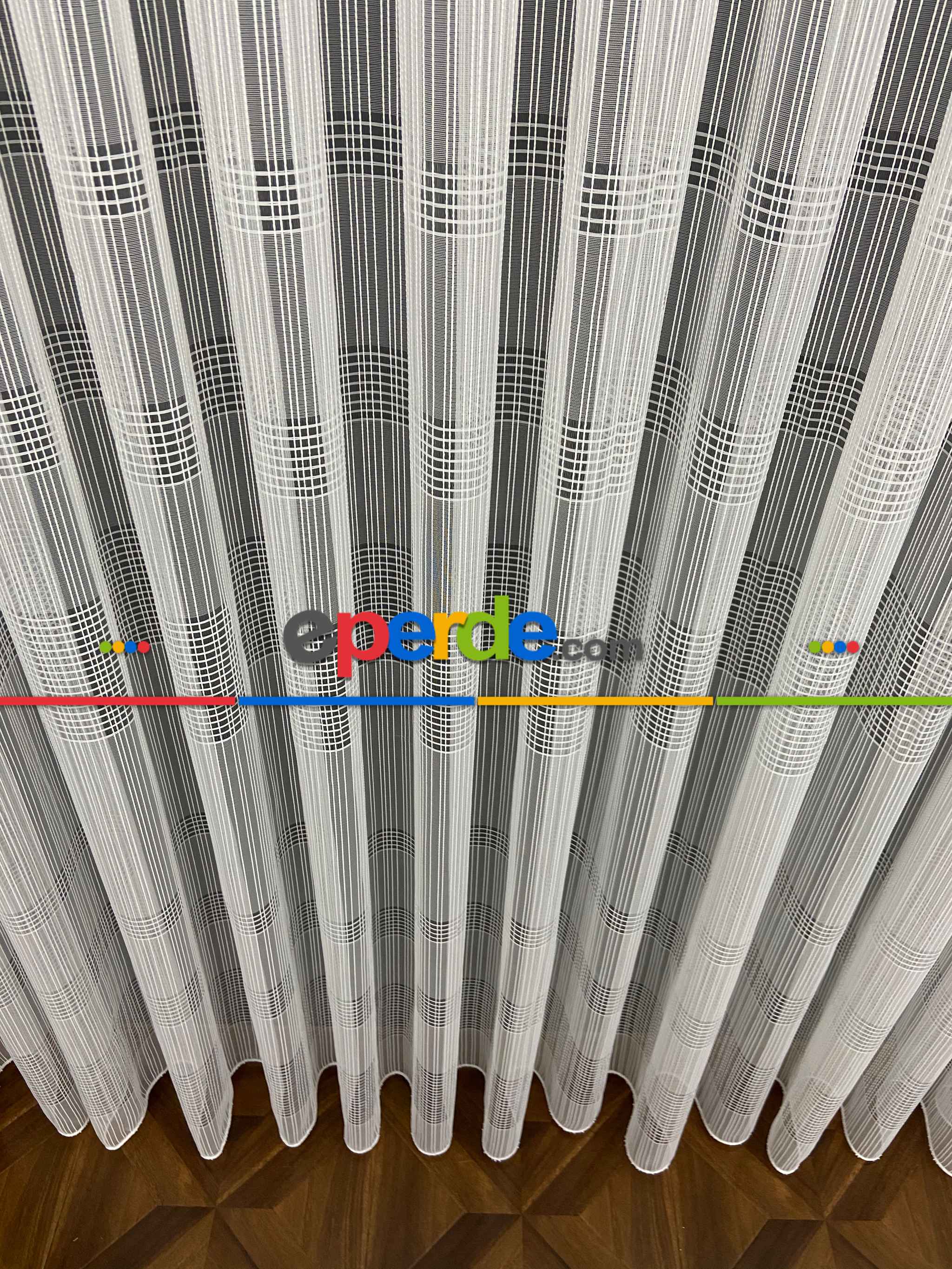 Mutfak - Zincir Çizgili Tül Perde Ekru Renk Kırık Beyaz- Ekru Ürün Açıklaması
