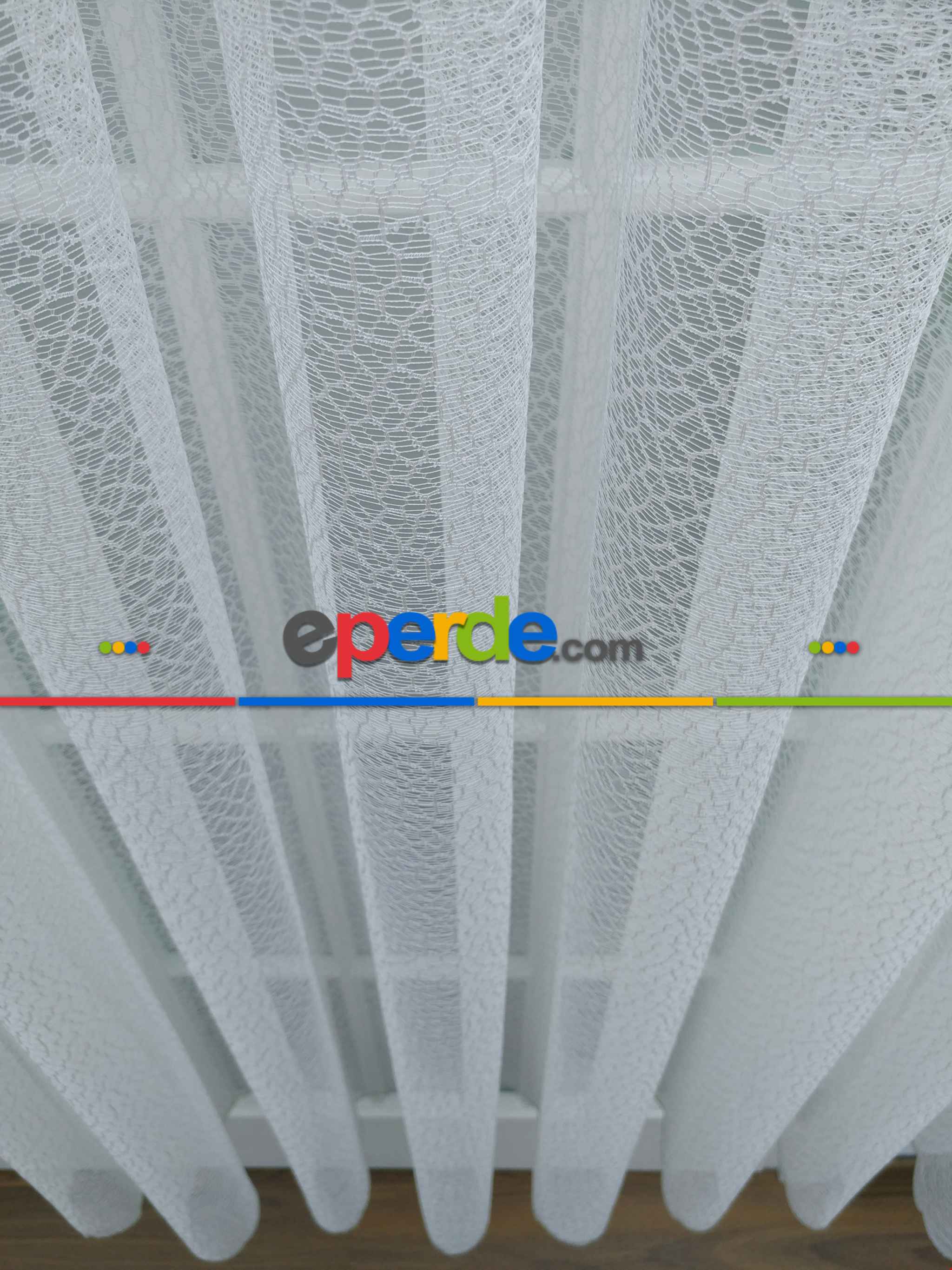 Örme Desenli Tül Perde 100% Orjinal Ürün- Ekru