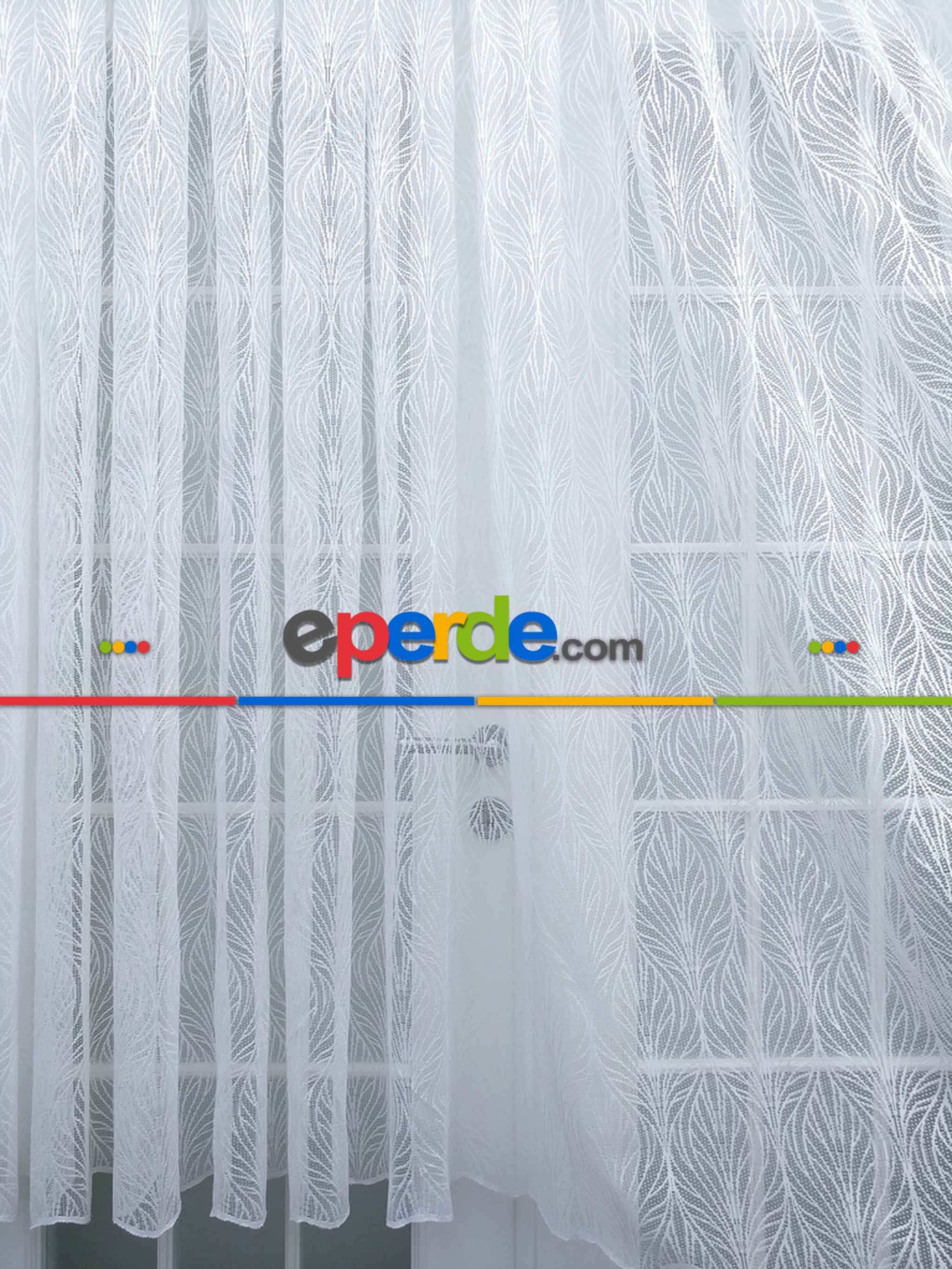 Örme Desenli Tül Perde 100% Orjinal Ürün- Ekru
