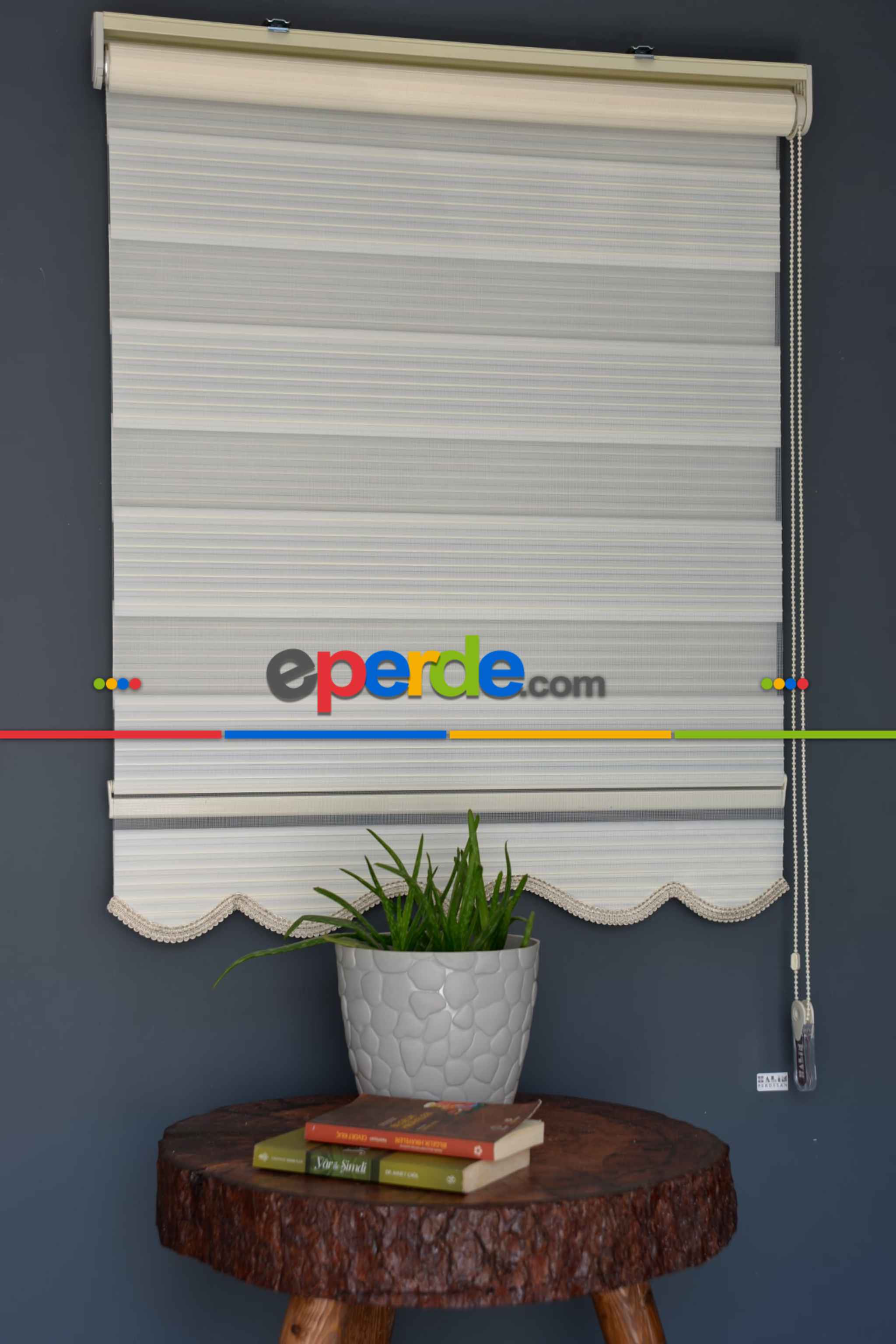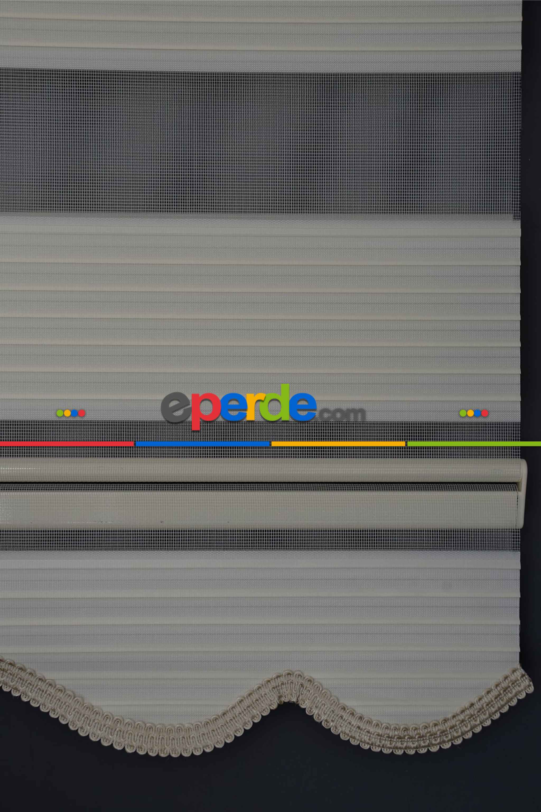Oturma Odası - Halim Perdesan Gp-02 Ekru Renk Etekli Veya Eteksiz Geniş Pliseli Zebra Stor Perde