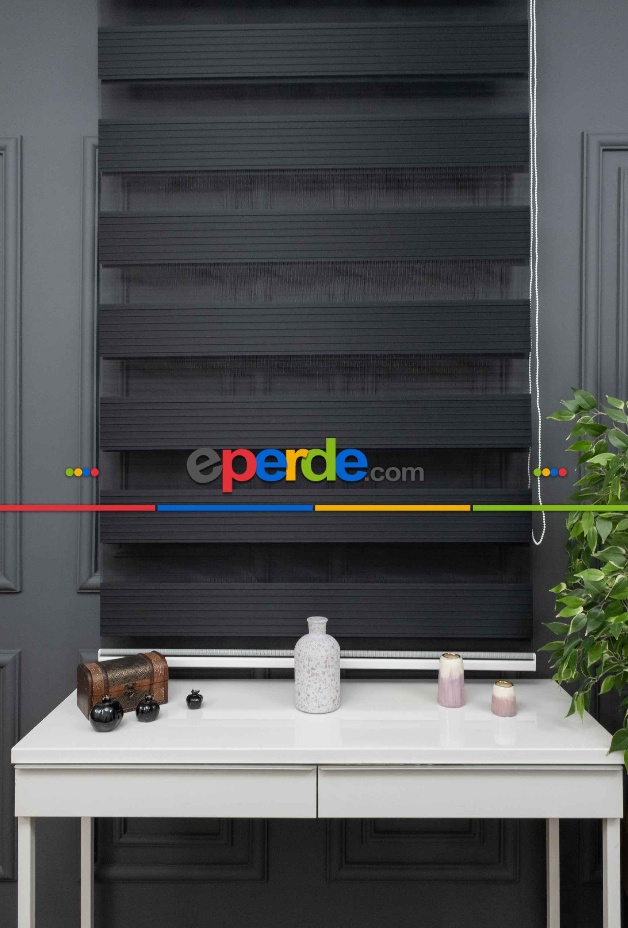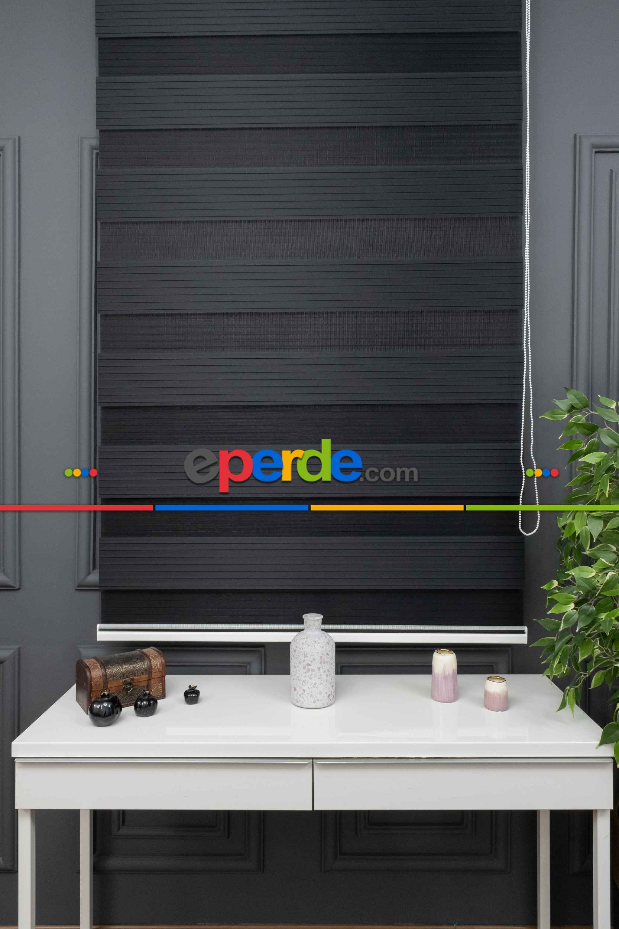 Oturma Odası - Siyah Zebra Perde - Geniş Pileli Zebra Perde Ürün Açıklaması
