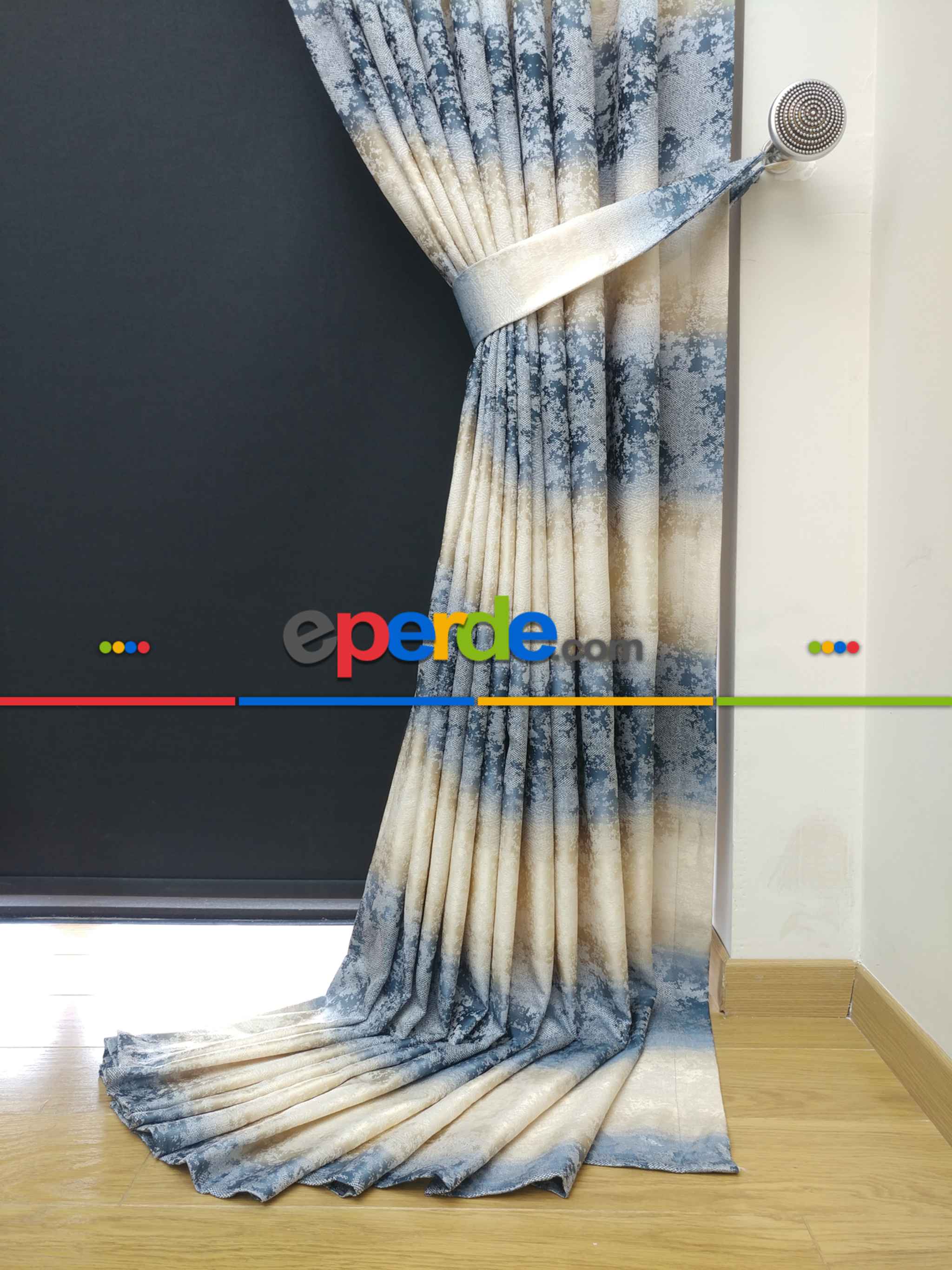 Hollanda | Patine Desenli Gökkuşagı Desenli Jakar Fon Perde Mavi Koyu » Eperde