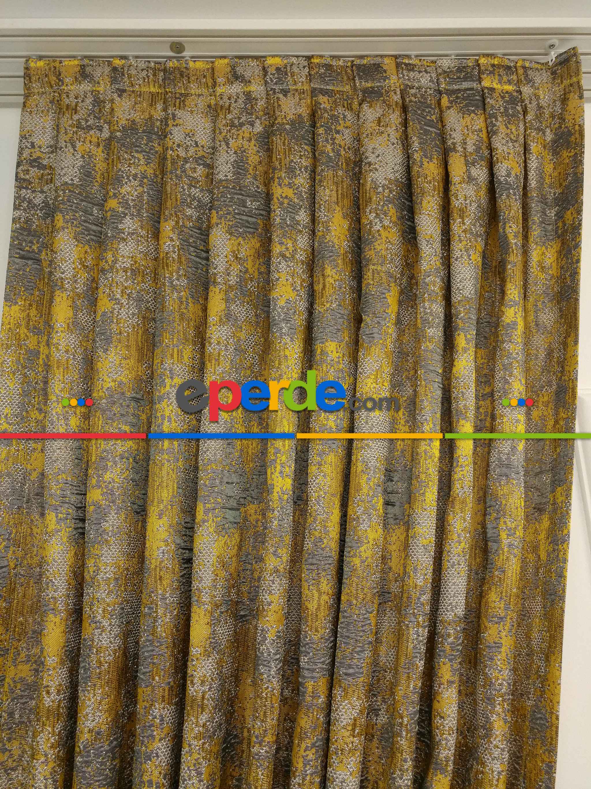 Pakistan | Patine Desenli Jakar Desenli Fon Perde- Gri Sarı » Eperde