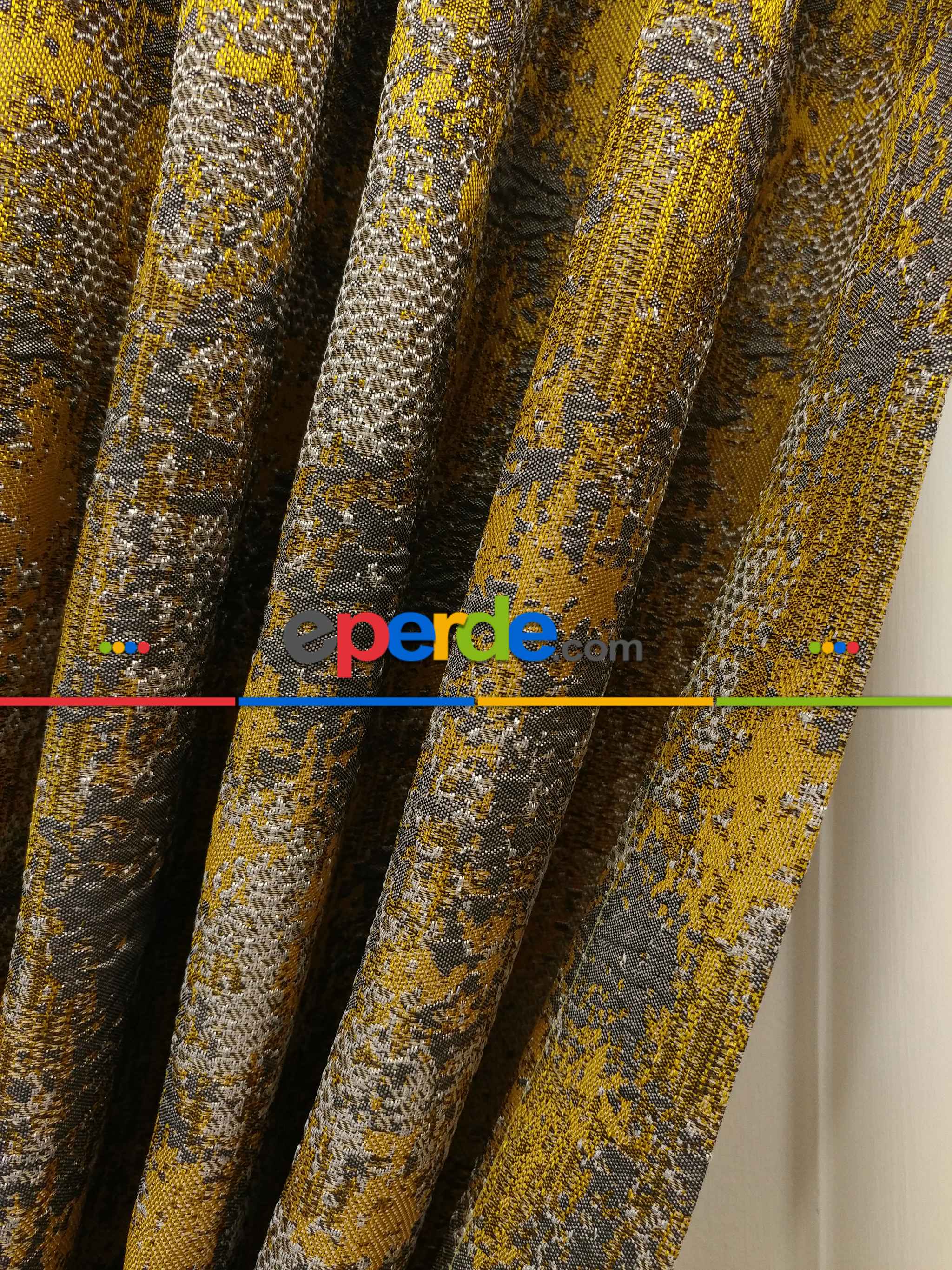 Patine Desenli Jakar Desenli Fon Perde- Gri Sarı Ödeme Seçenekleri