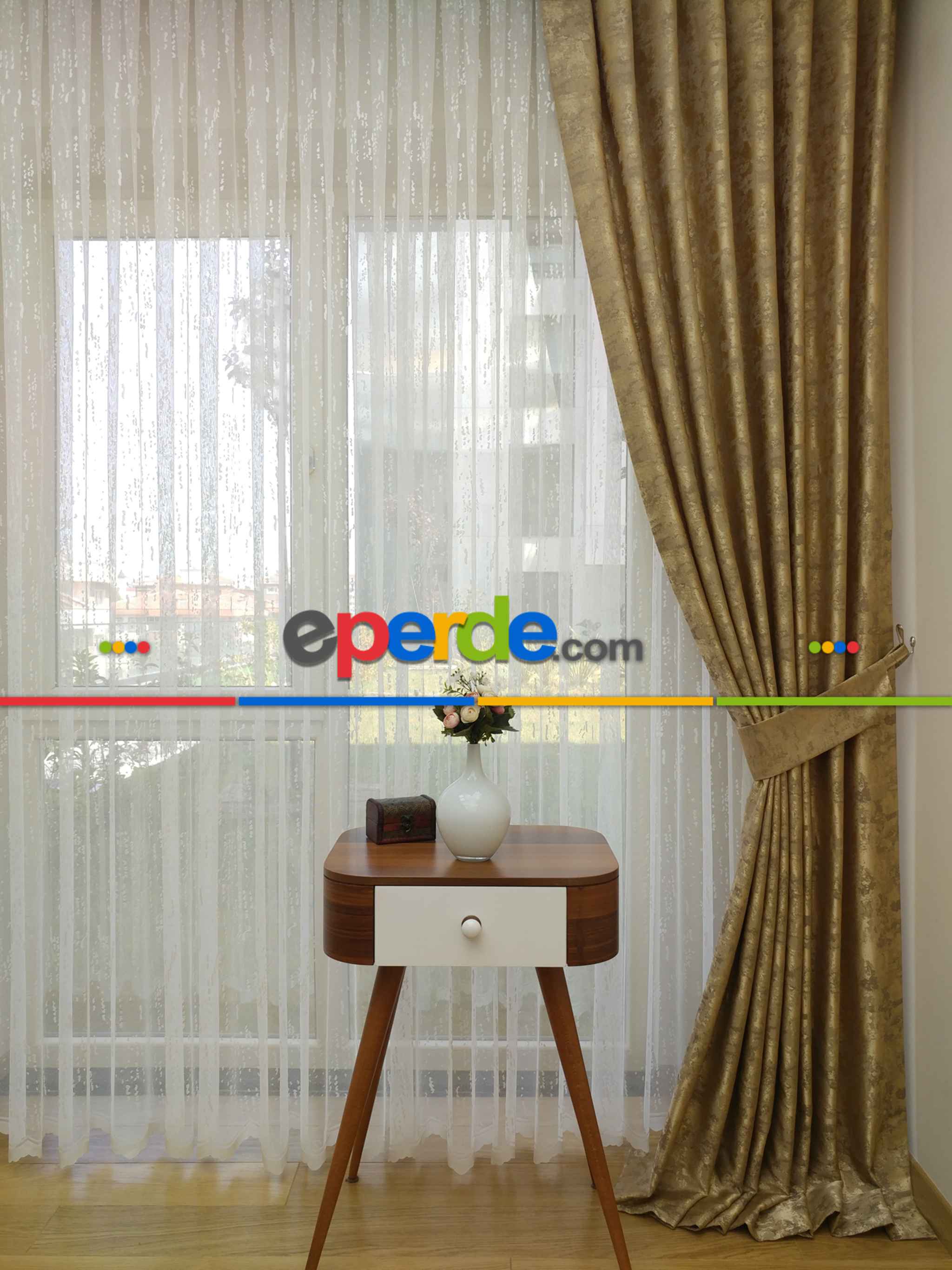 Özel Örme Dokulu Tül Perde- Ekru Özel Örme Dokulu Tül Perde- Ekru