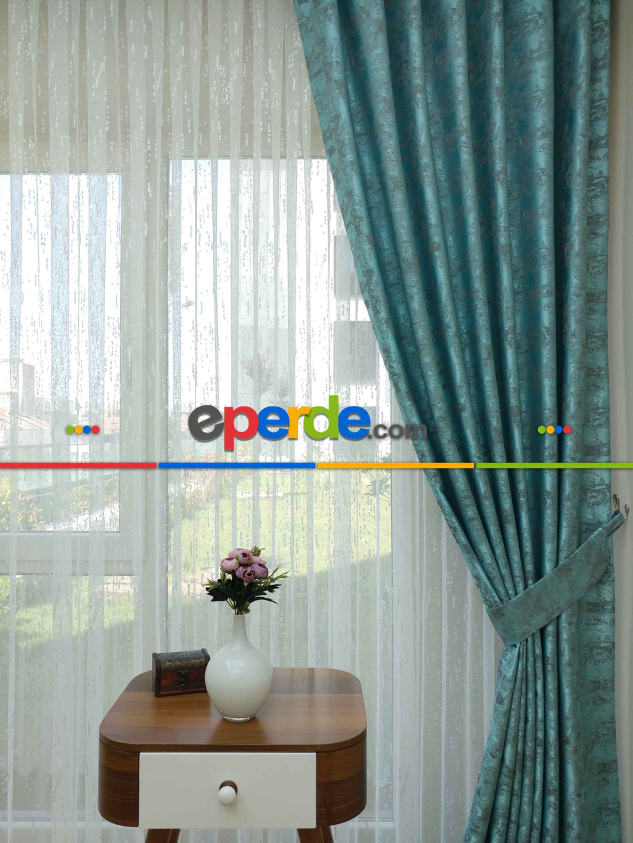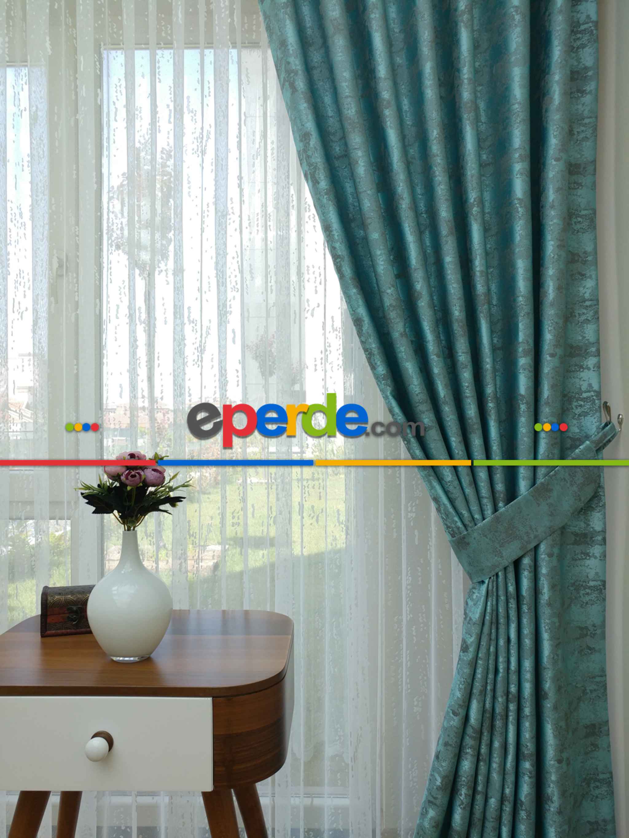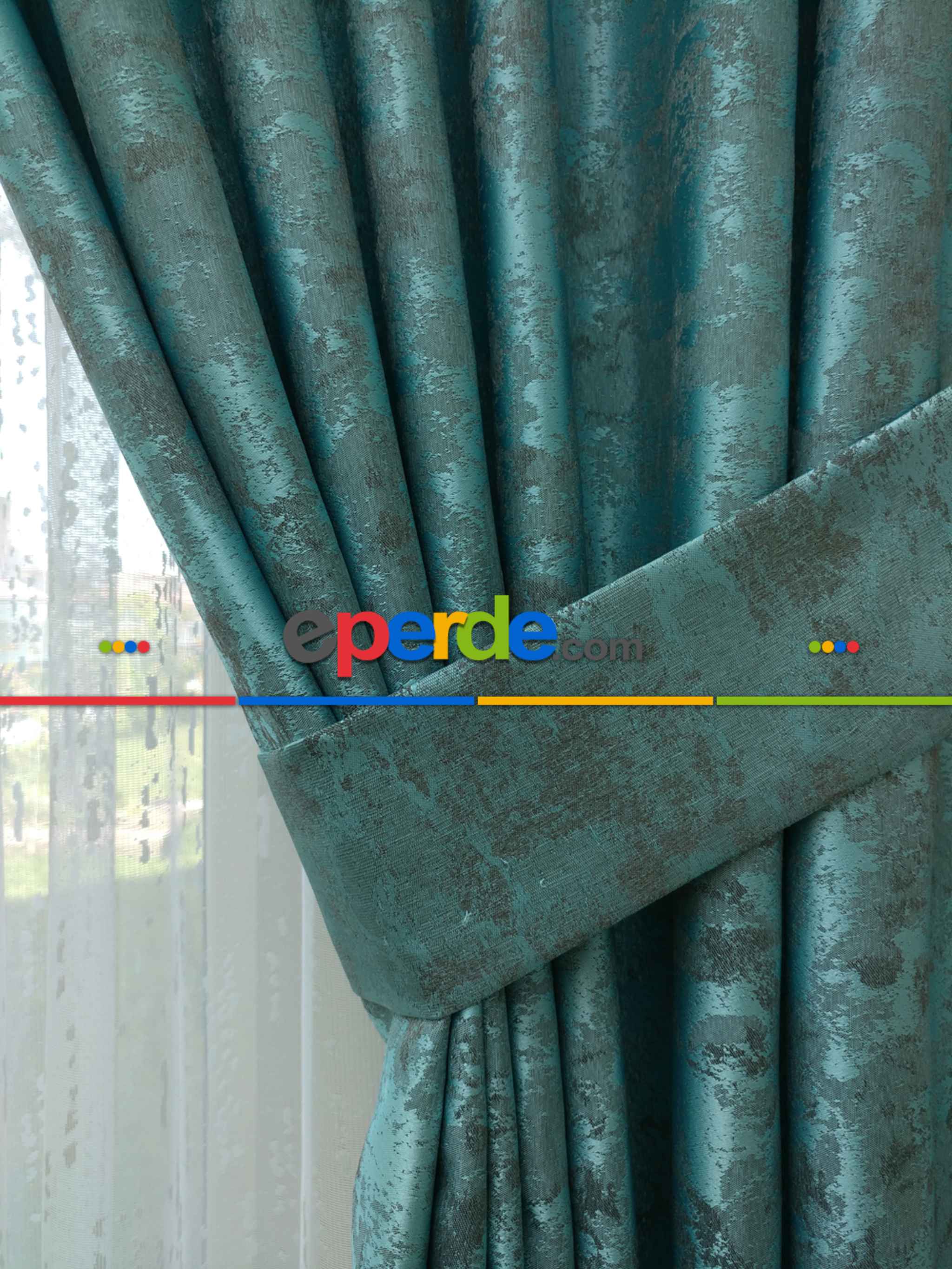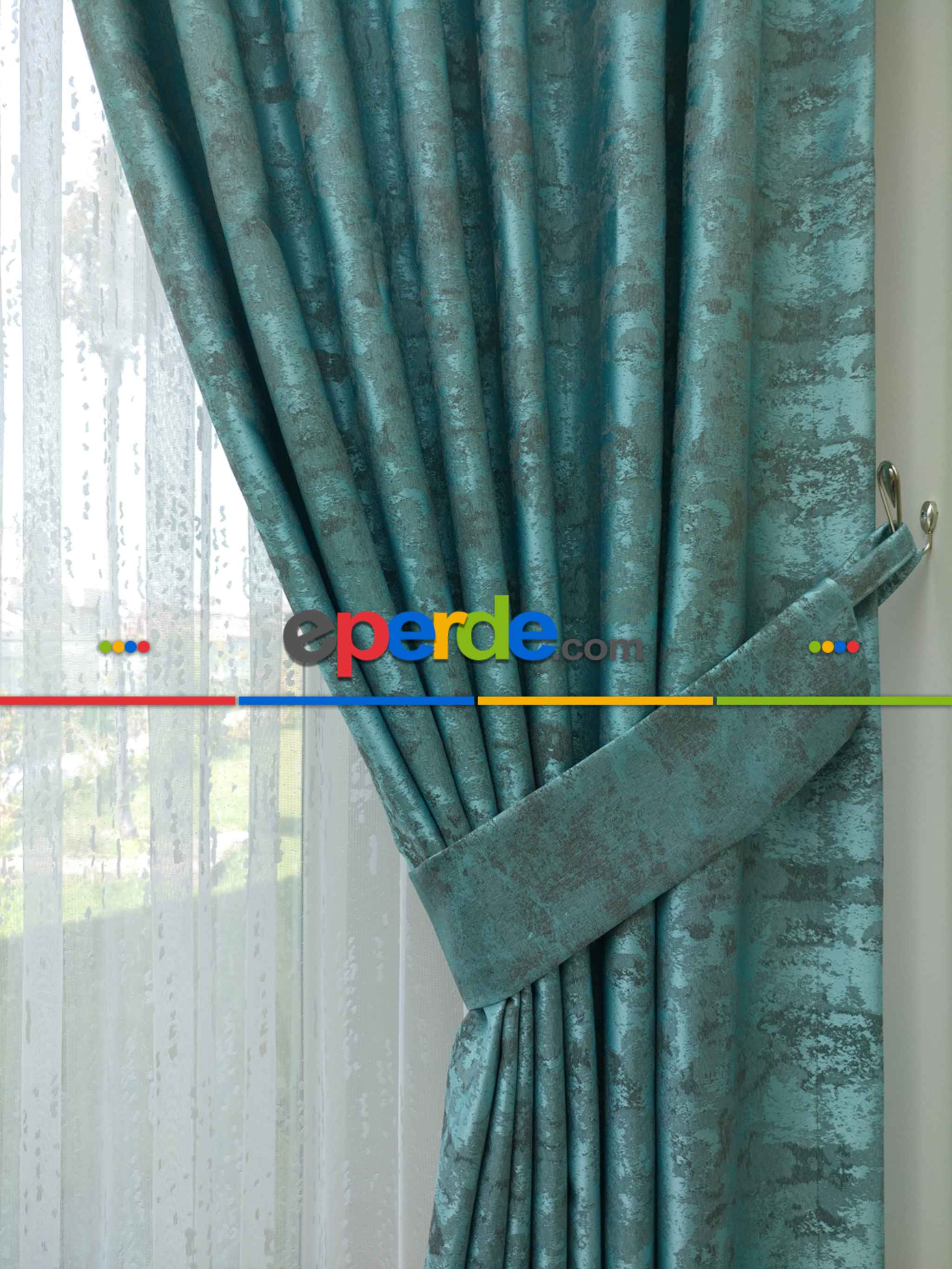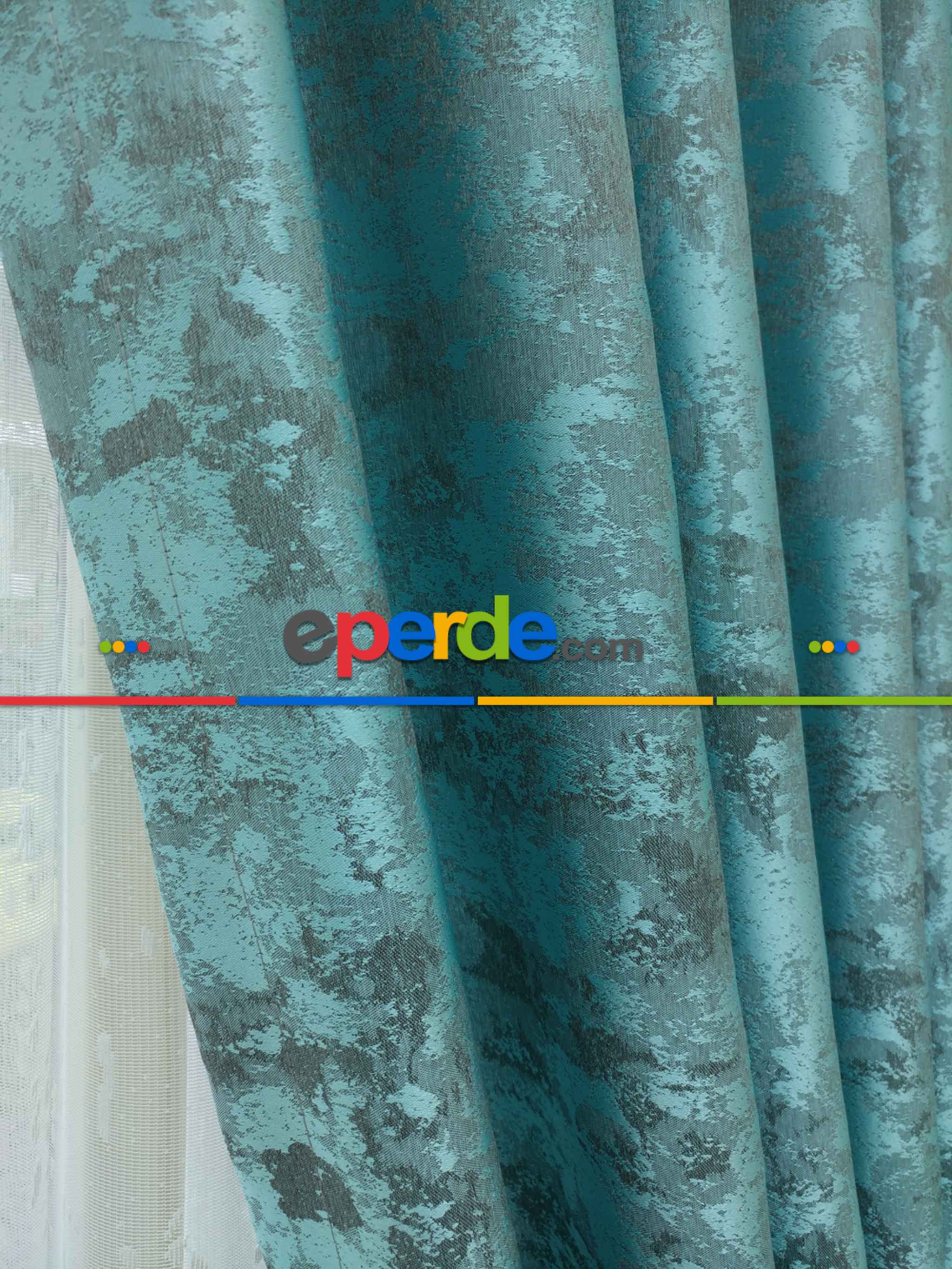 Patine Desenli Turkuaz - Katyonik Jakar Fon Perde- Turkuaz Ürün Açıklaması