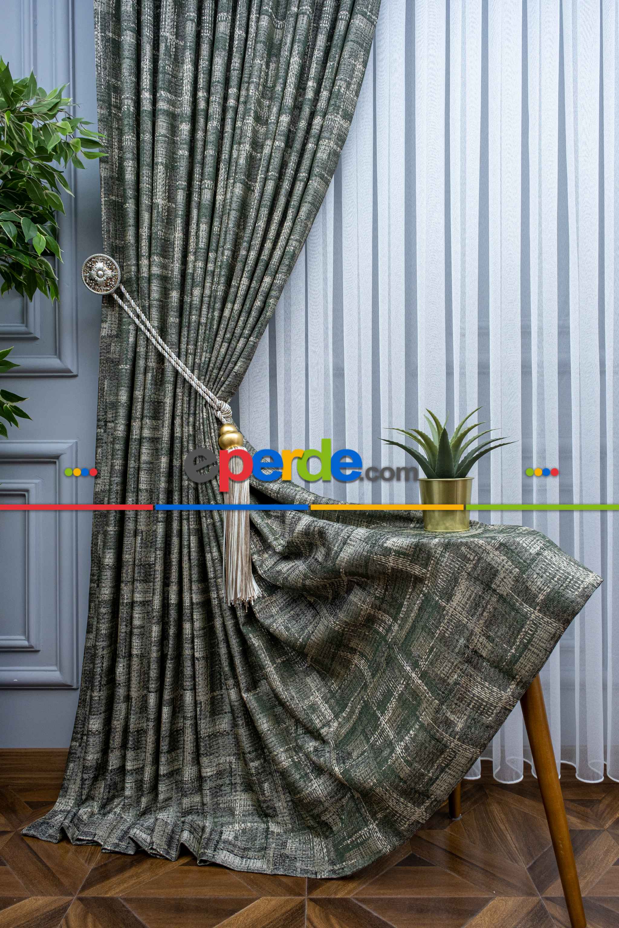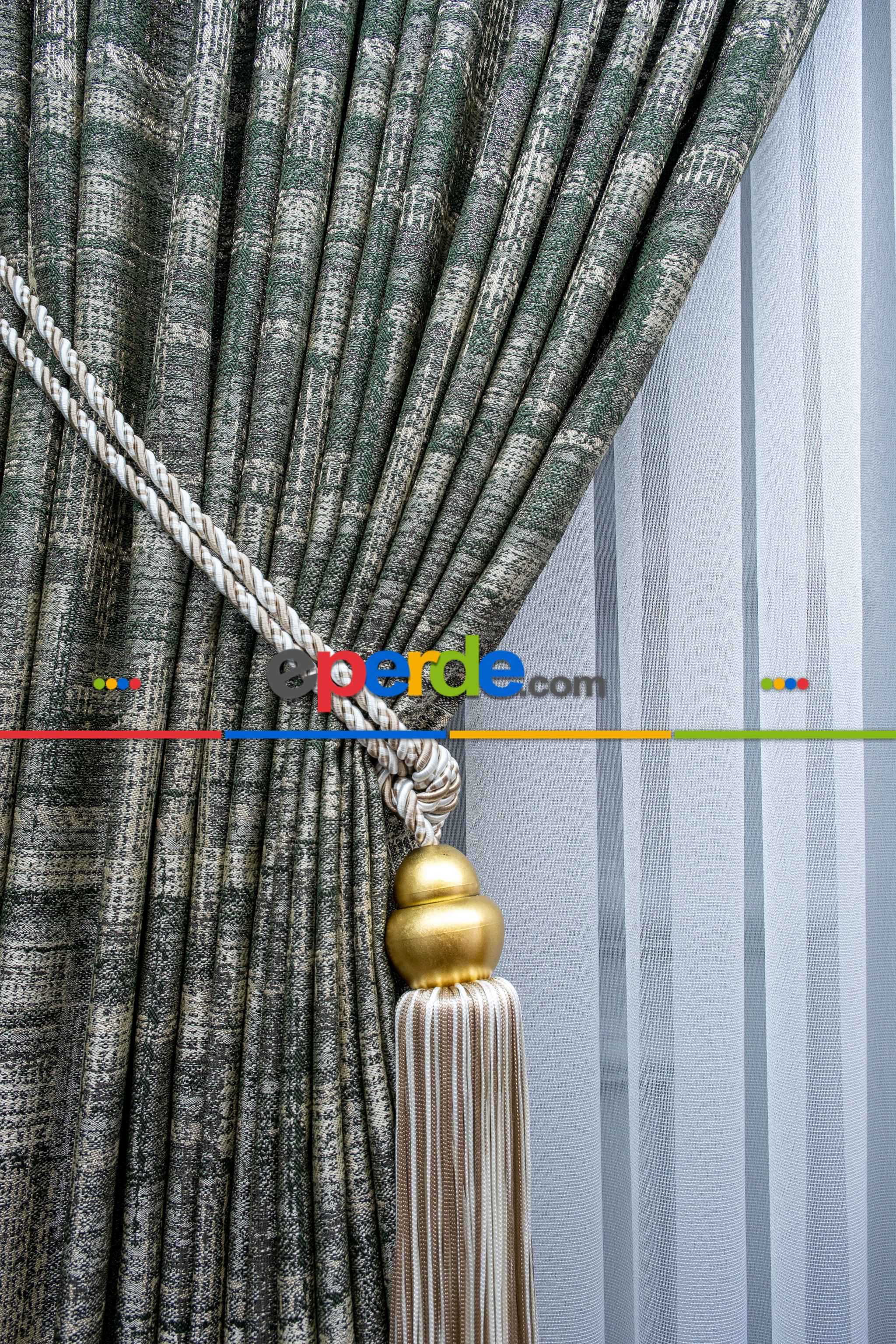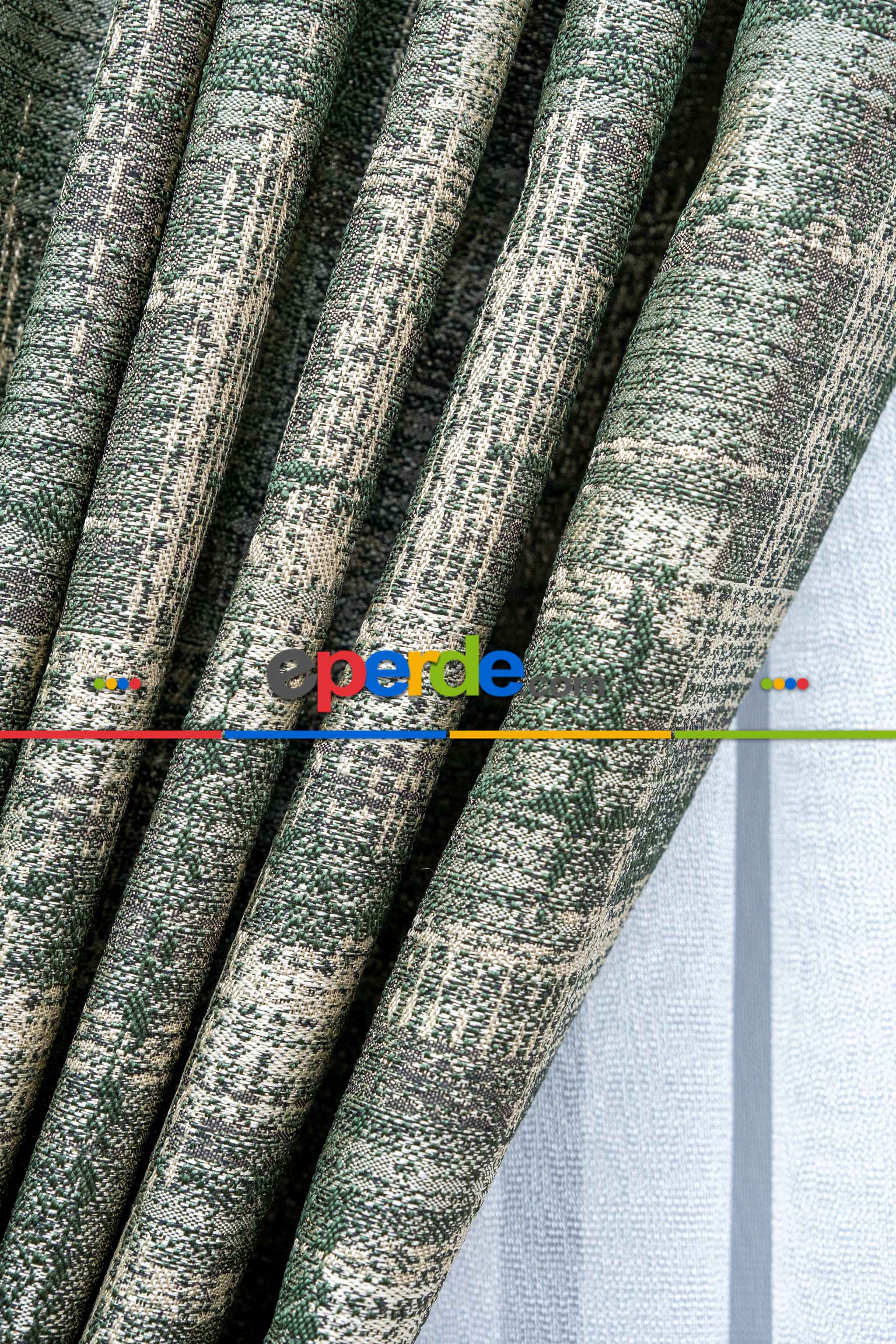Patinedesenli Carmen Jakar Dokuma Fon Perde- Yeşil-bej Ödeme Seçenekleri