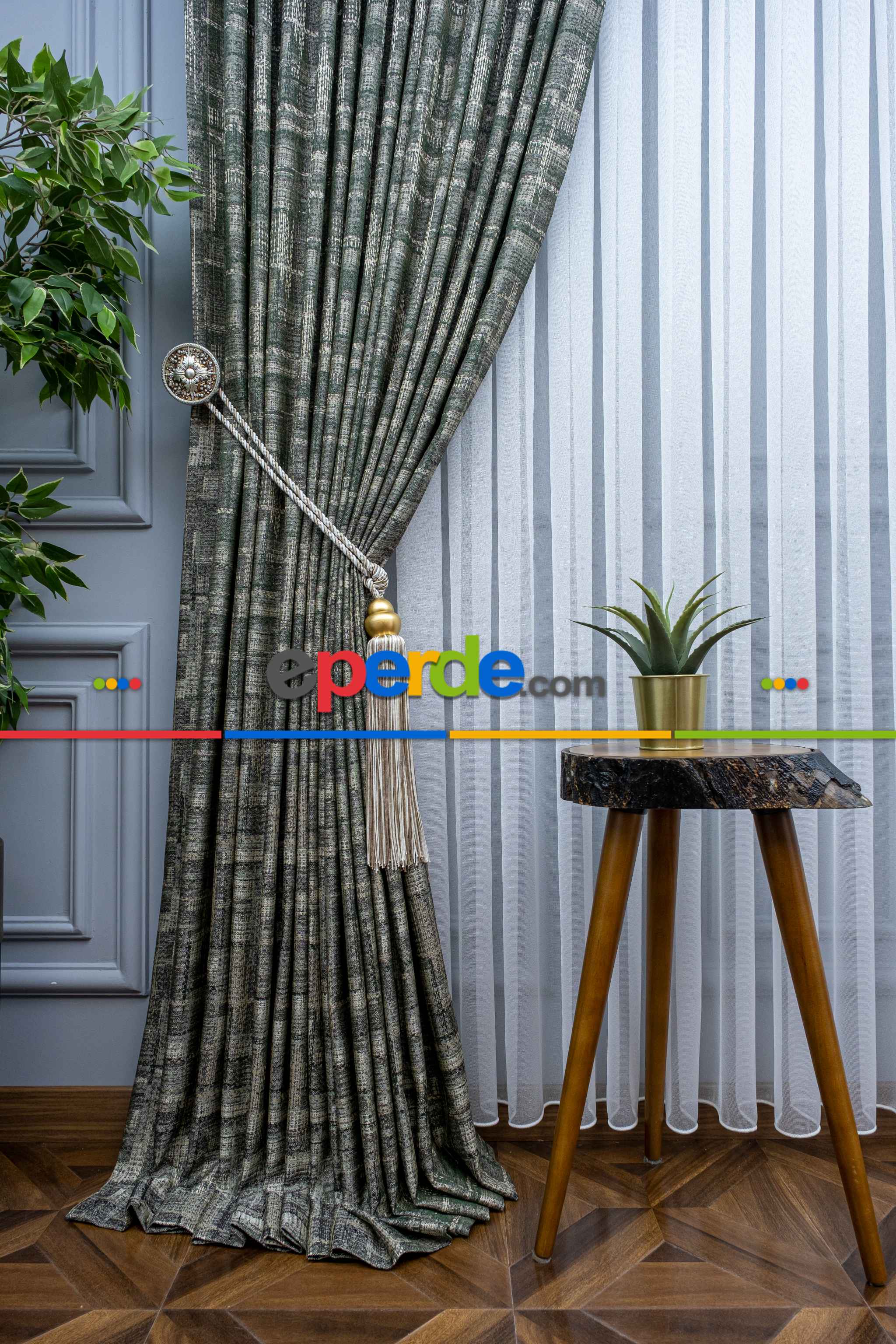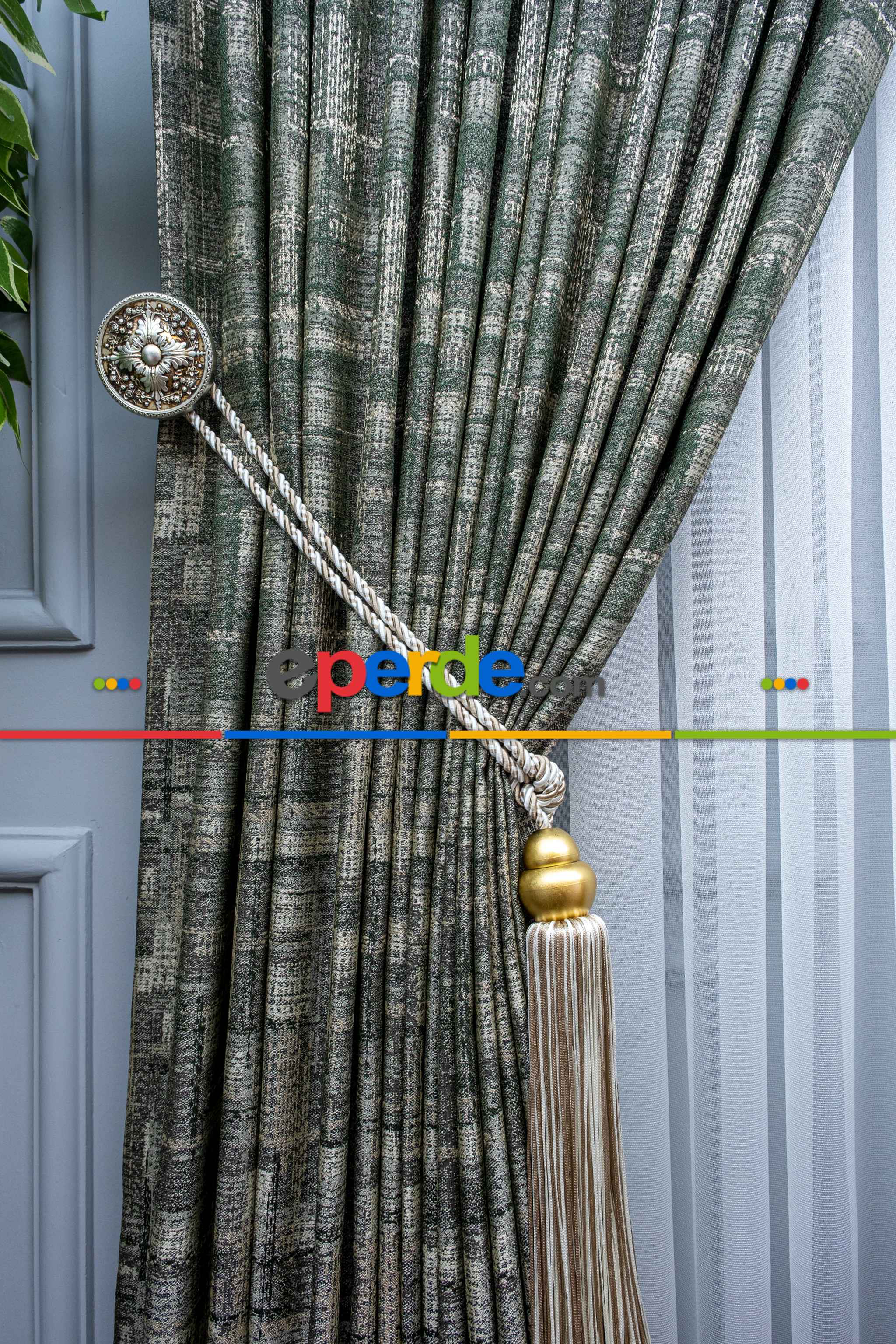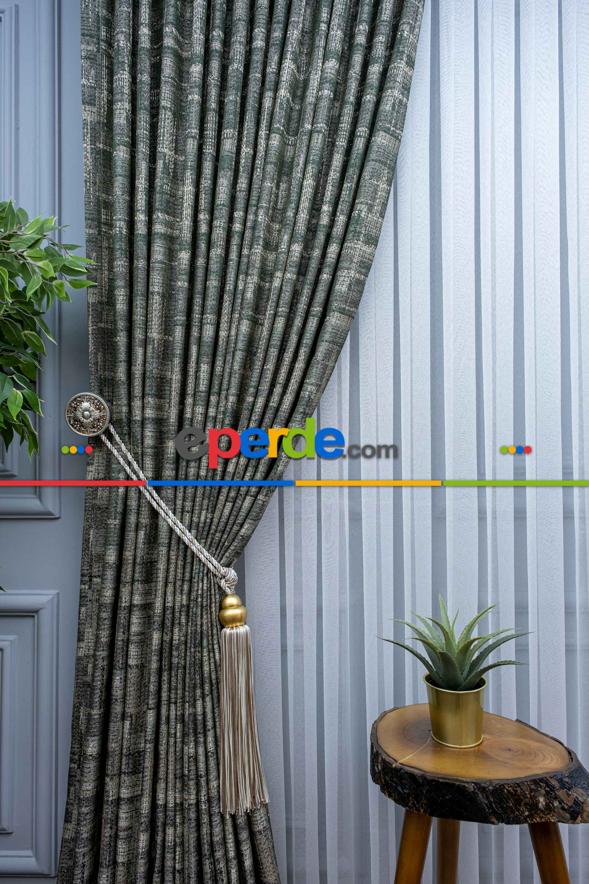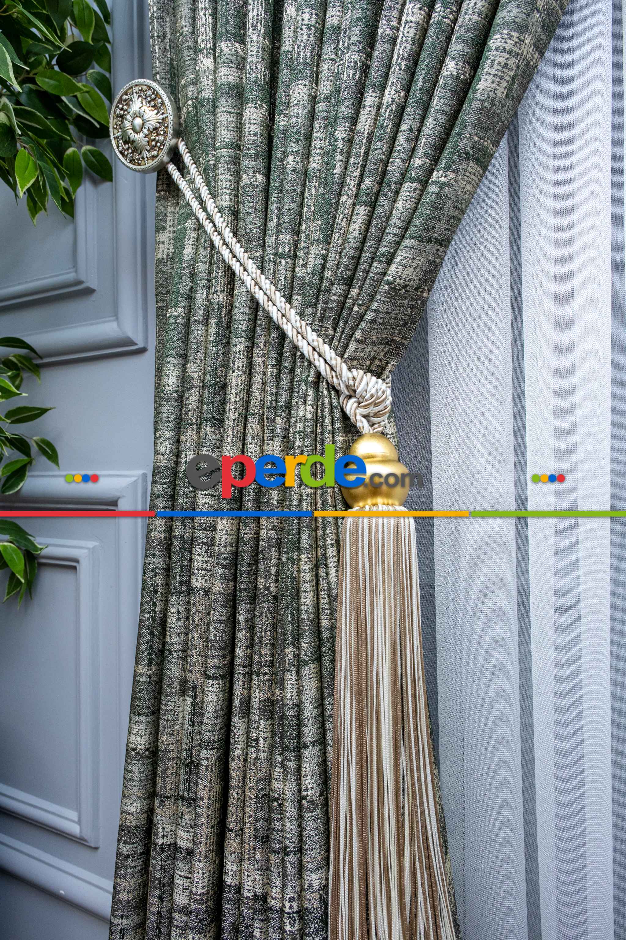 Patinedesenli Carmen Jakar Dokuma Fon Perde- Yeşil-bej Ödeme Seçenekleri