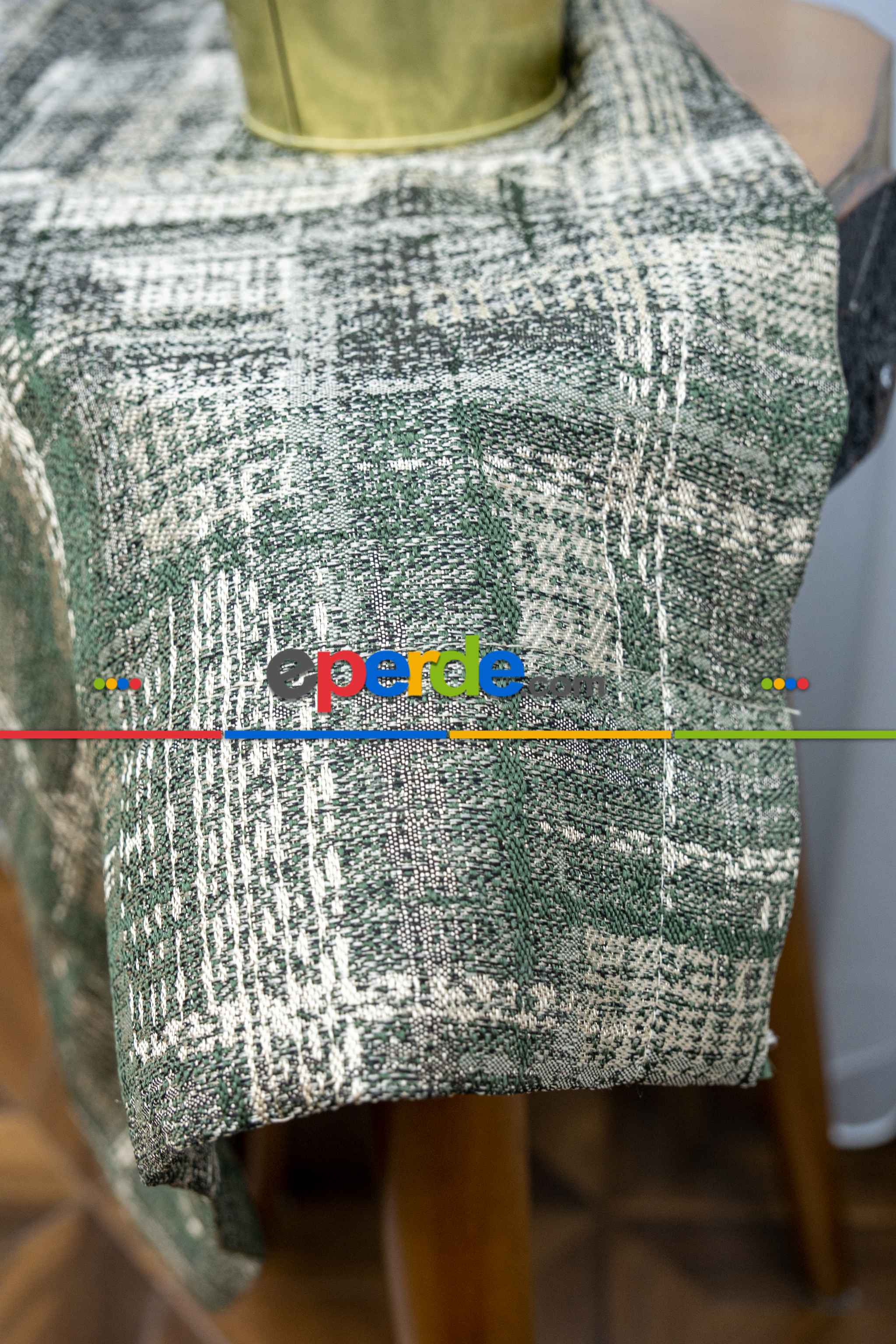 İsveç | Patinedesenli Carmen Jakar Dokuma Fon Perde- Yeşil-bej » Eperde
