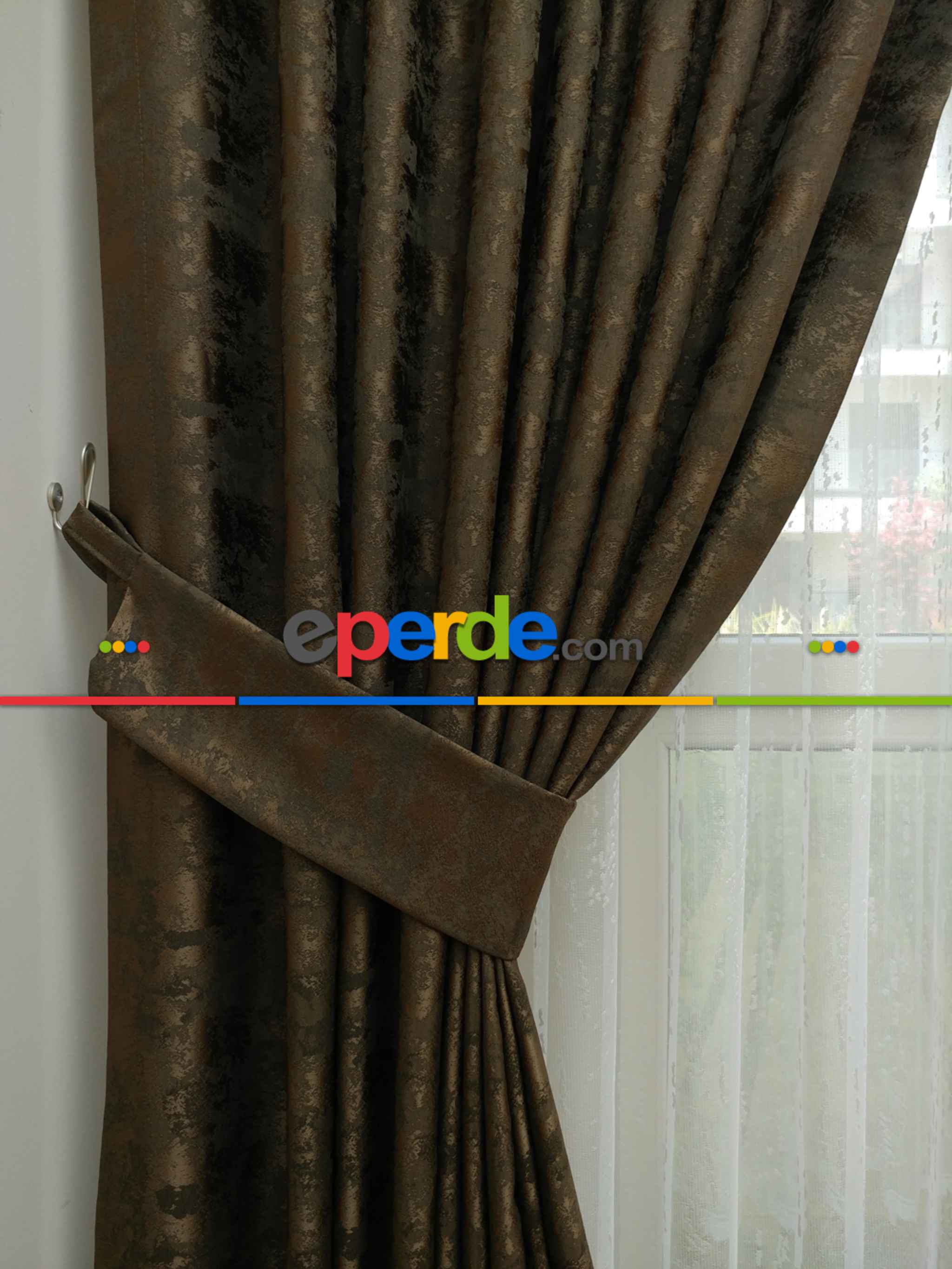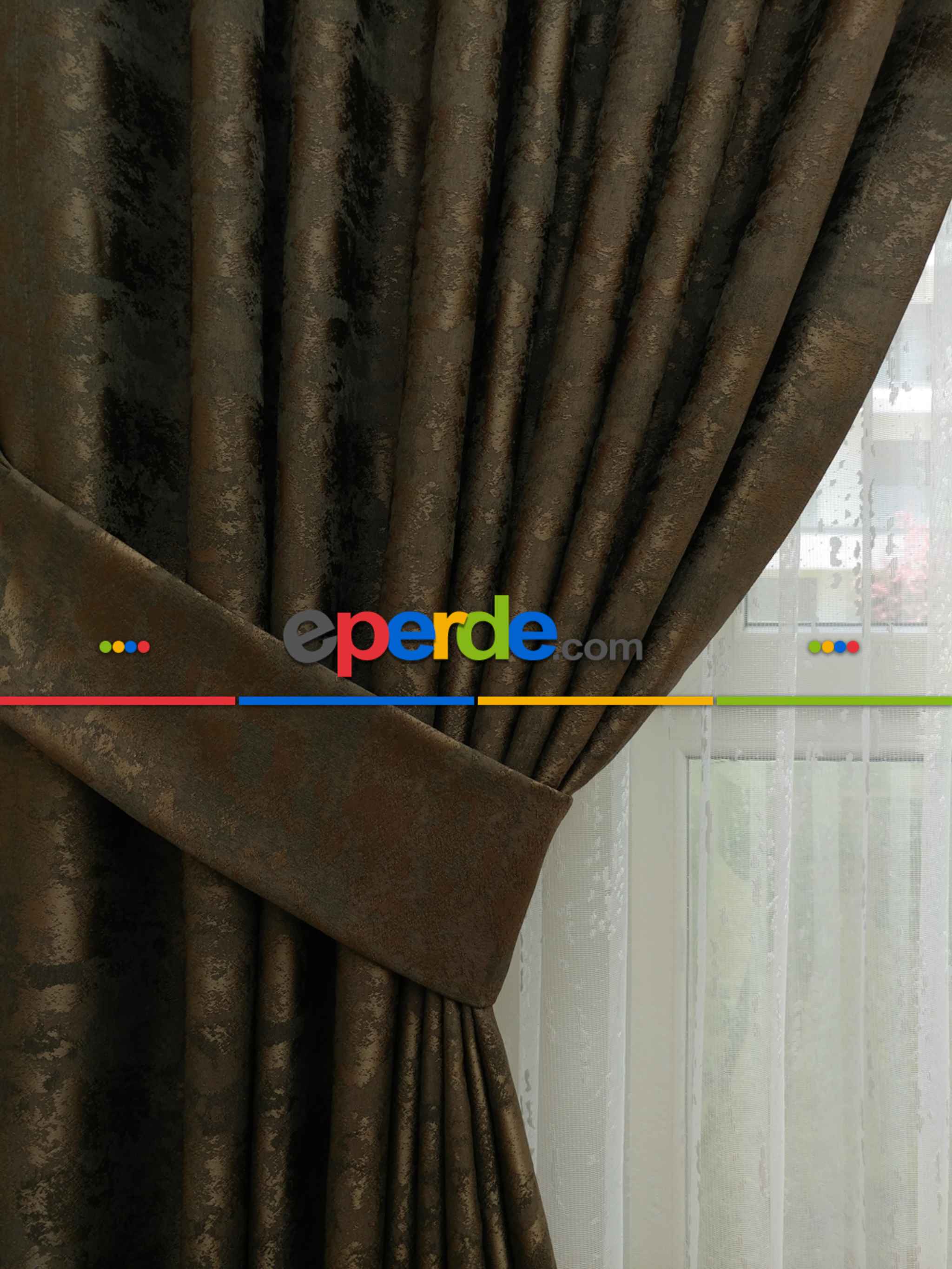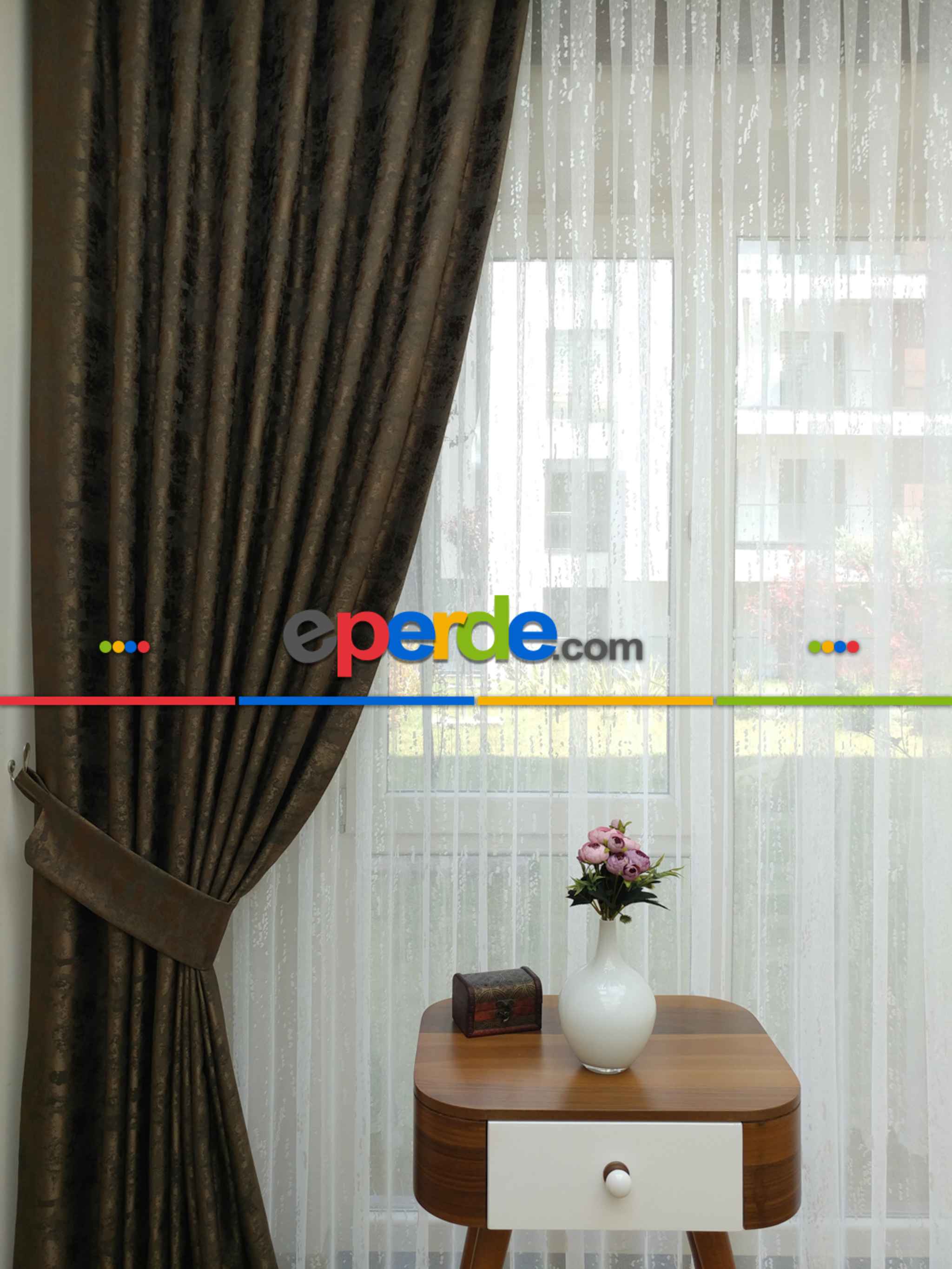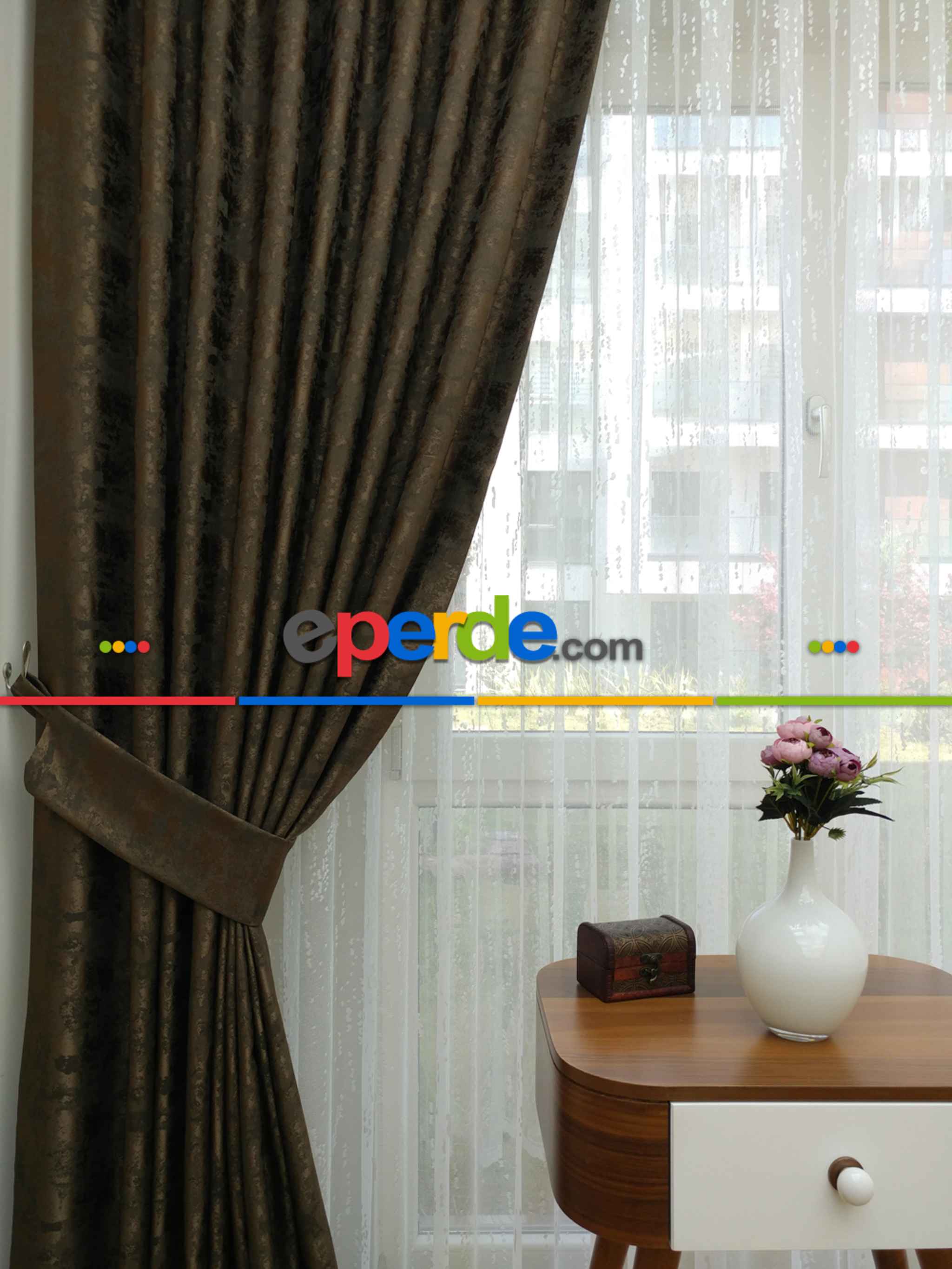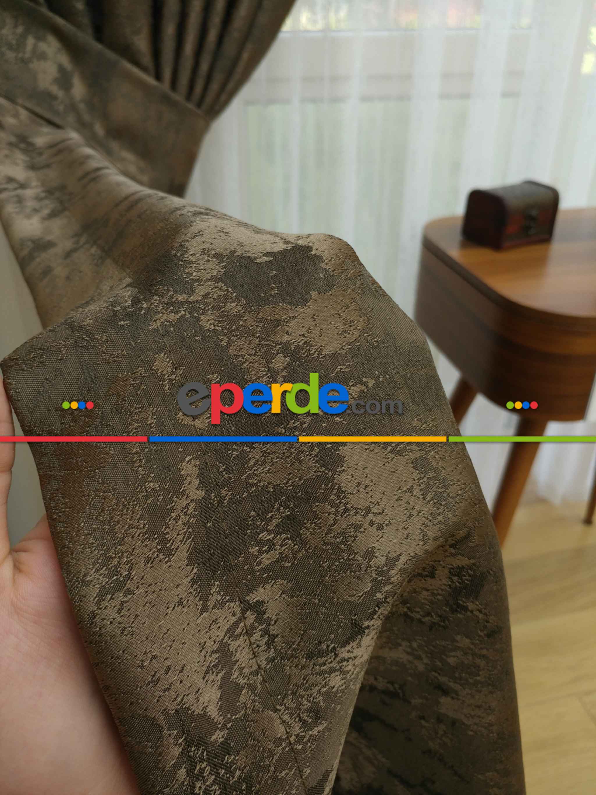 Patinedesenli Kahve - Katyonik Jakar Fon Perde- Kahve » Eperde