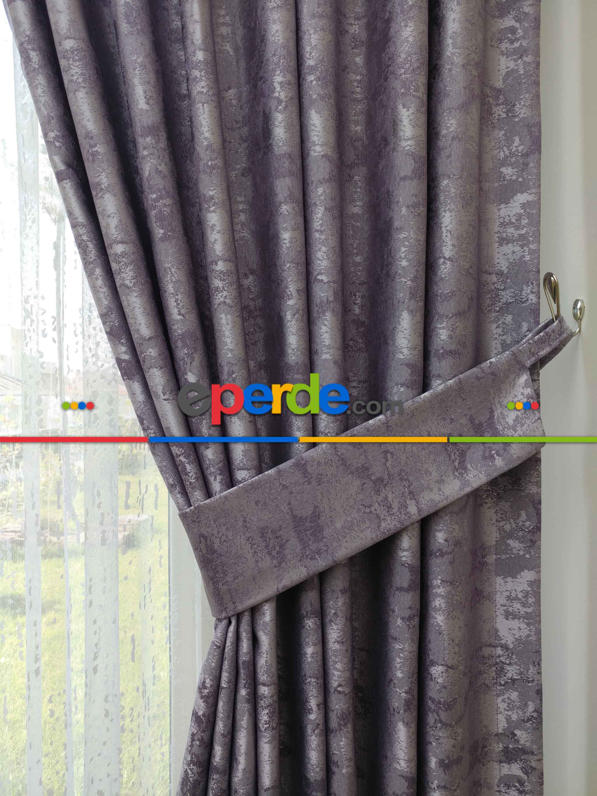 Patinedesenli Lila - Katyonik Jakar Fon Perde- Lila Ürün Açıklaması