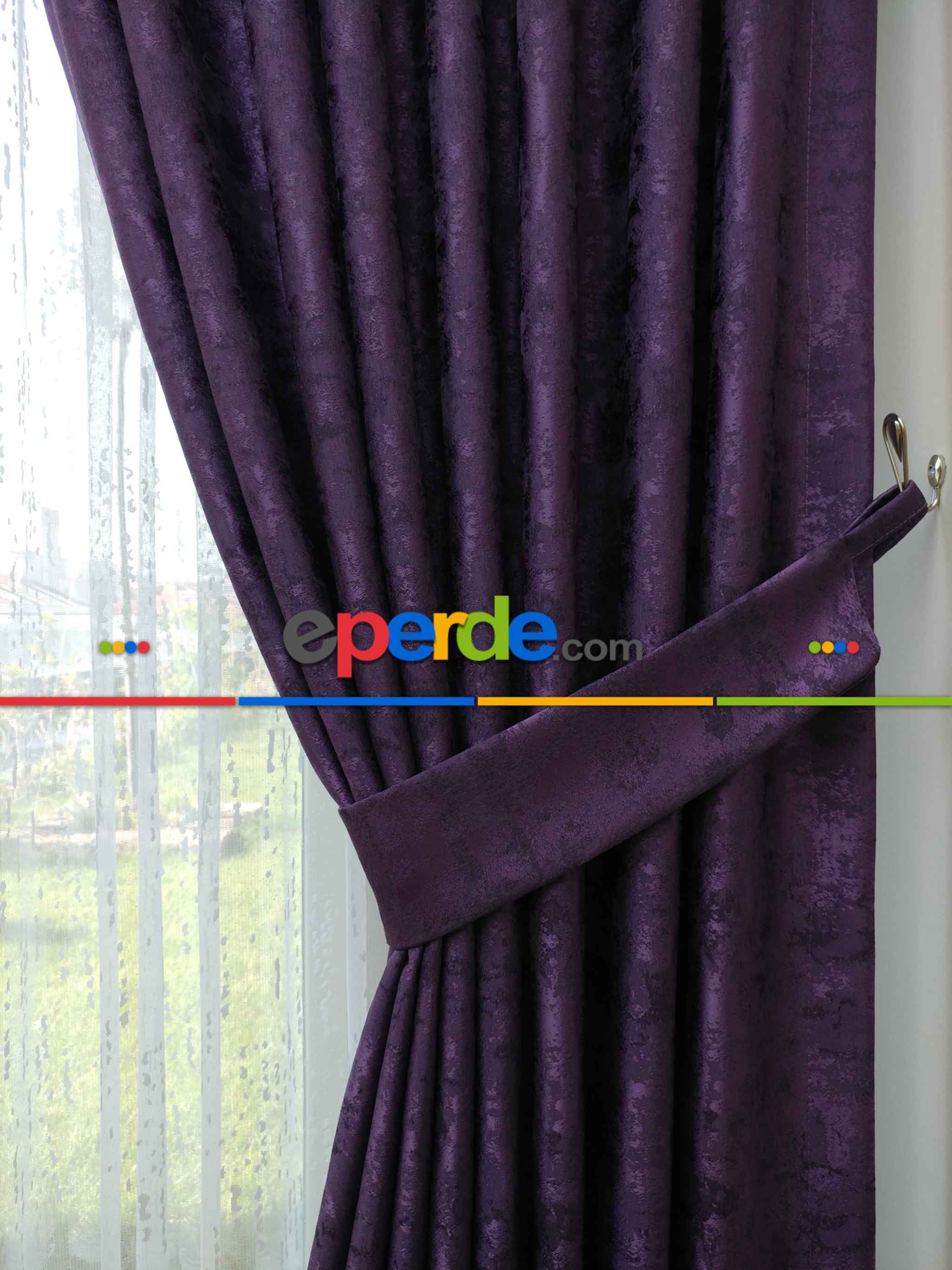 Güney Afrika | Patinedesenli Mor - Katyonik Jakar Fon Perde- Mor » Eperde