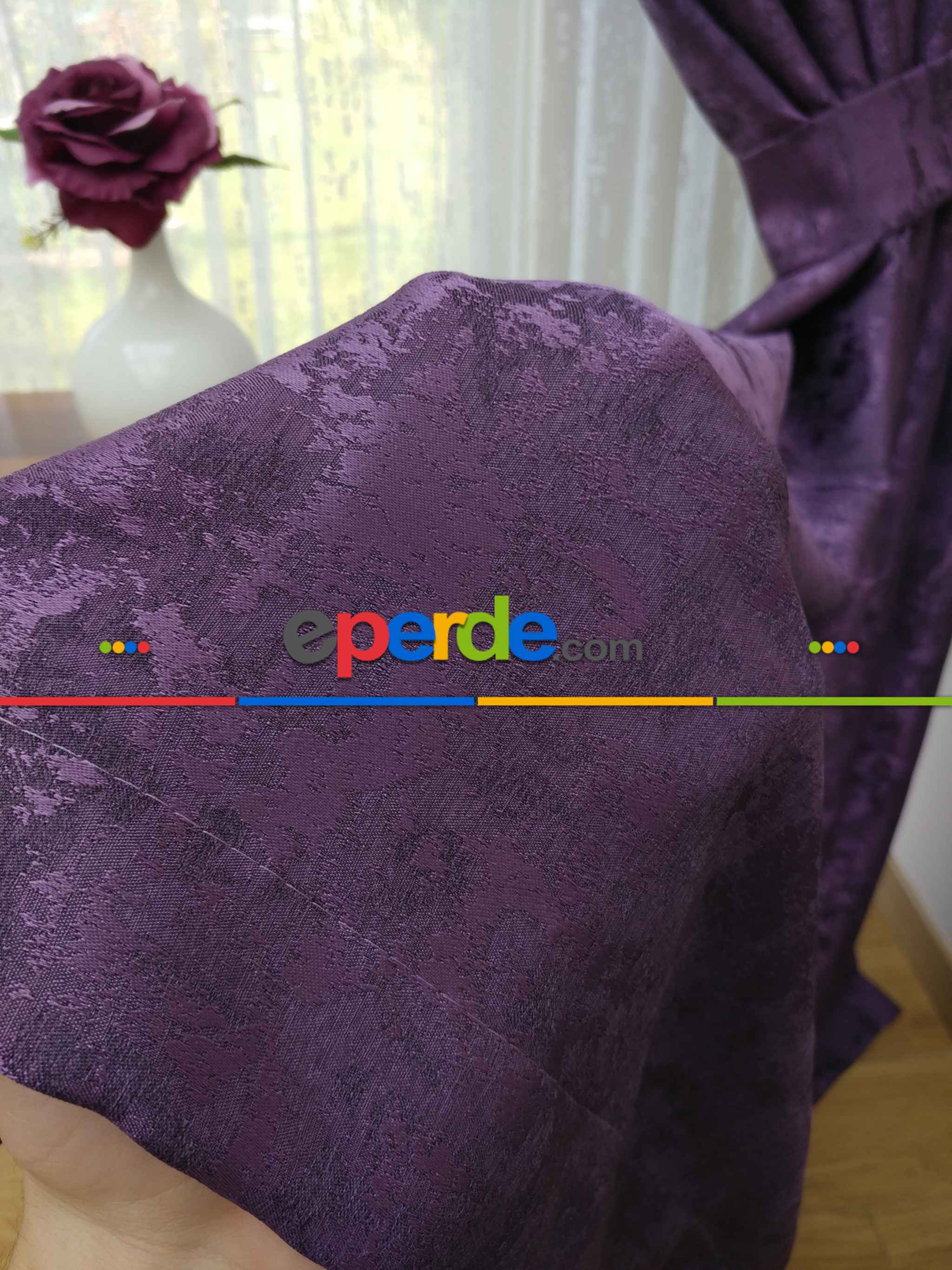 Patinedesenli Mor - Katyonik Jakar Fon Perde- Mor Ürün Açıklaması