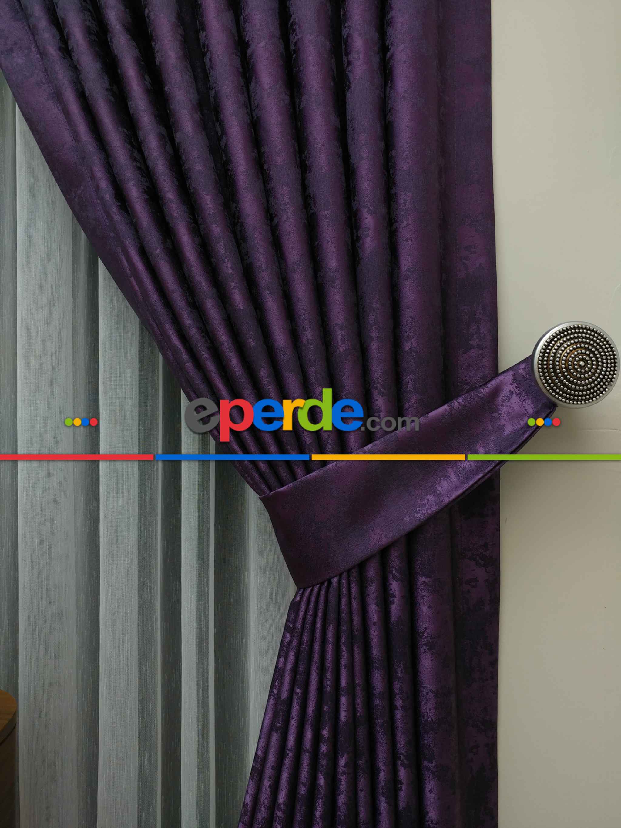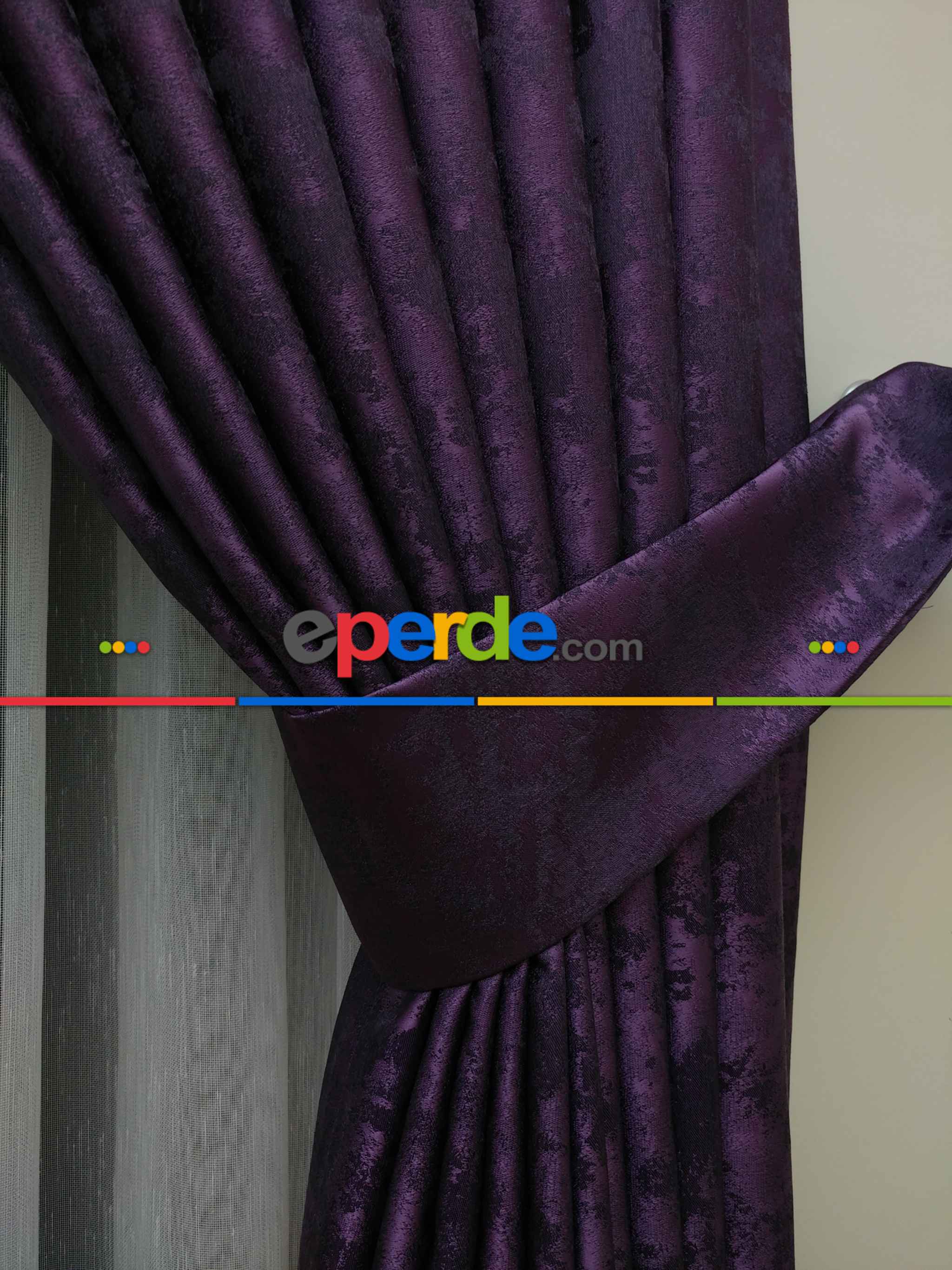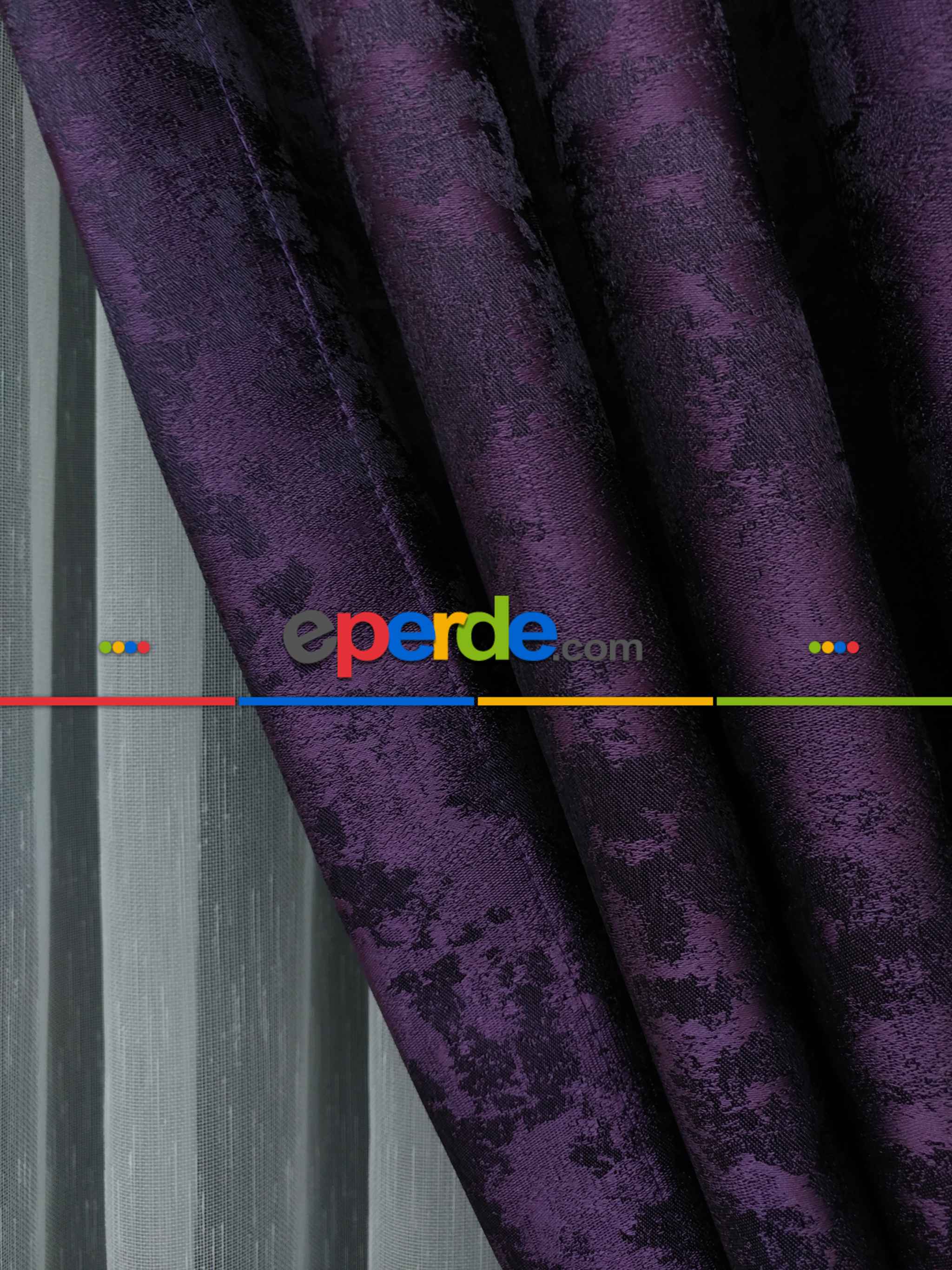 Patlıcan Moru Renk Jakar Desenli Fon Perde- Mor Patlıcan Moru