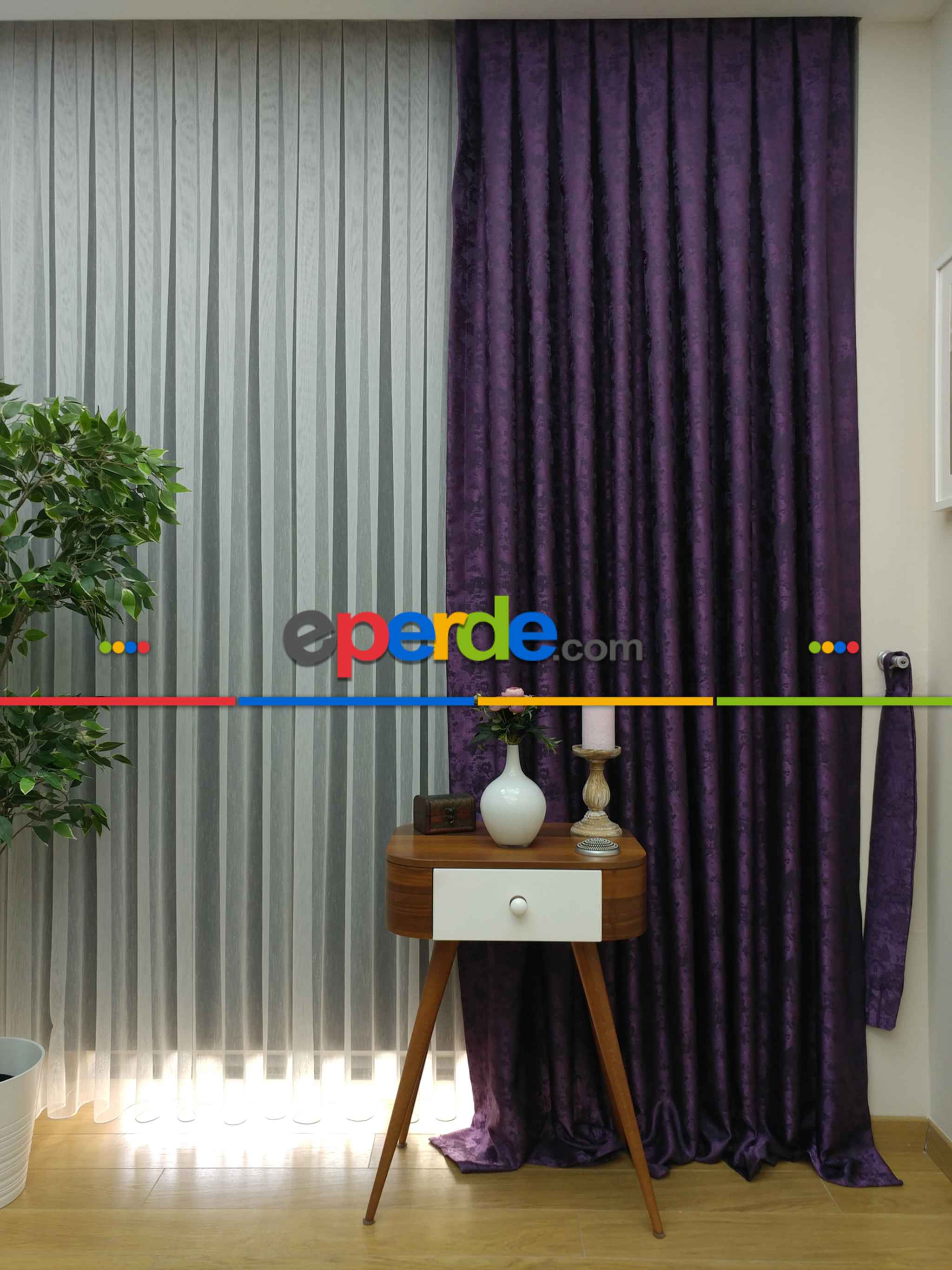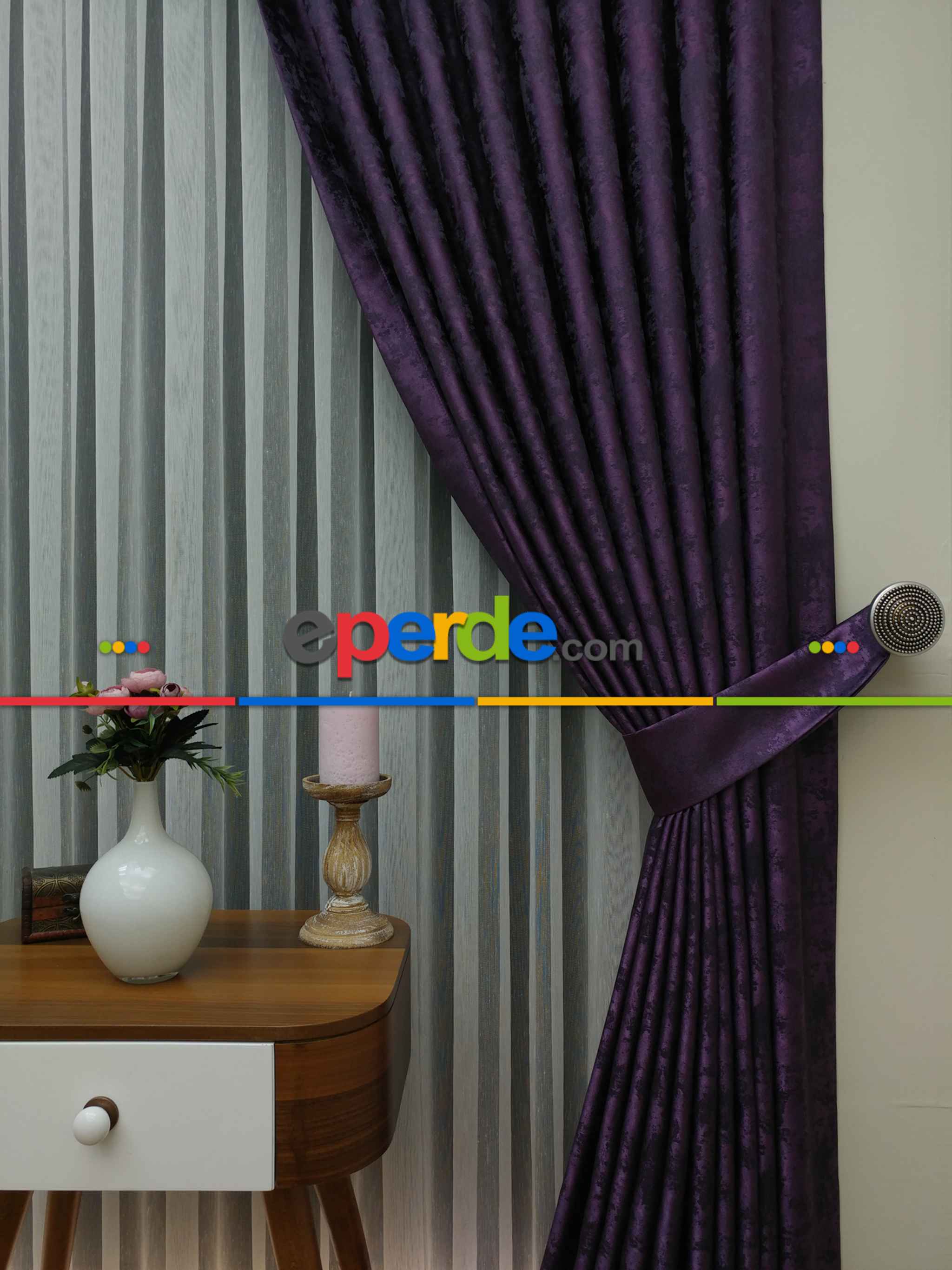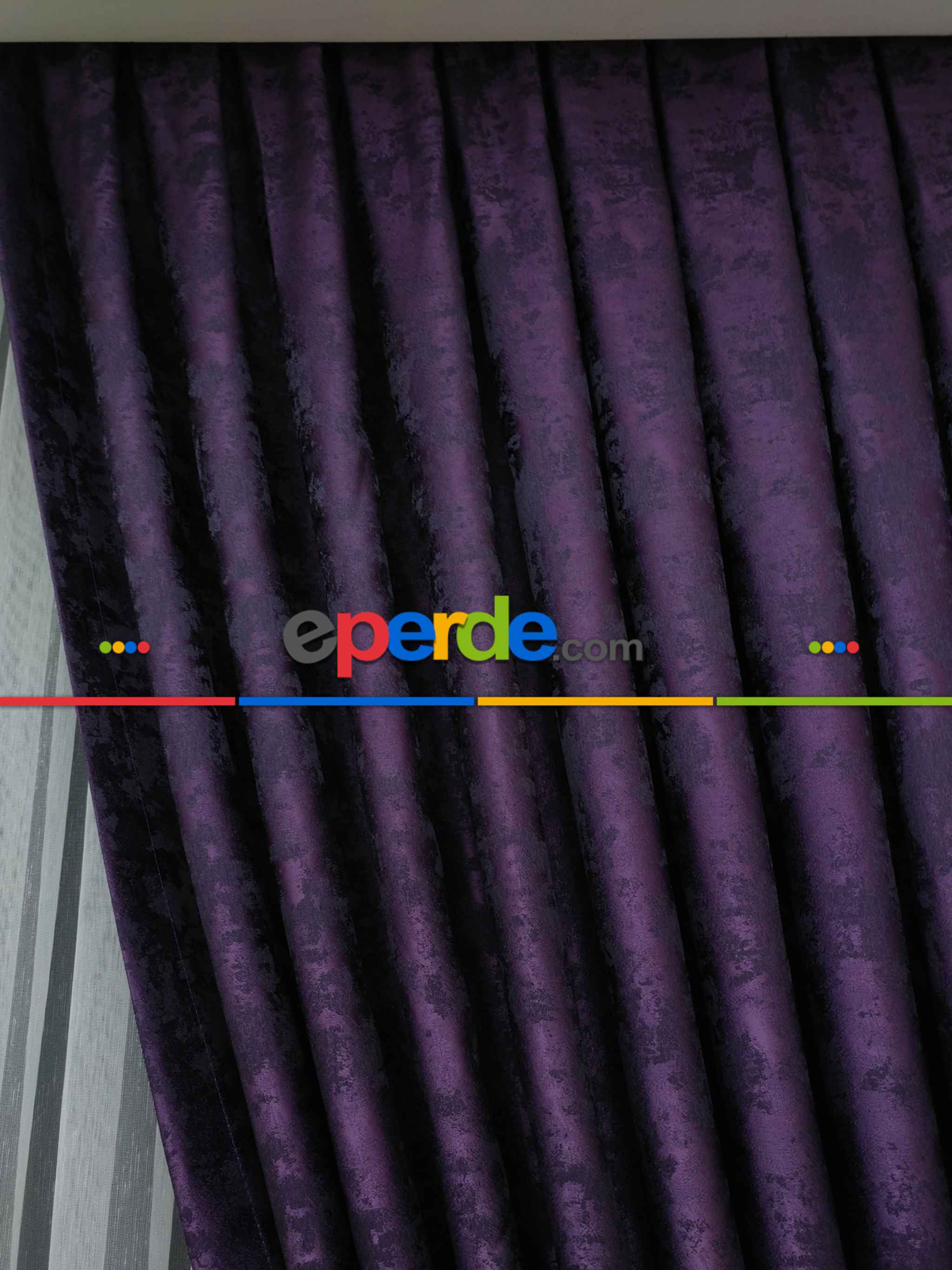 Patlıcan Moru Renk Jakar Desenli Fon Perde- Mor Patlıcan Moru
