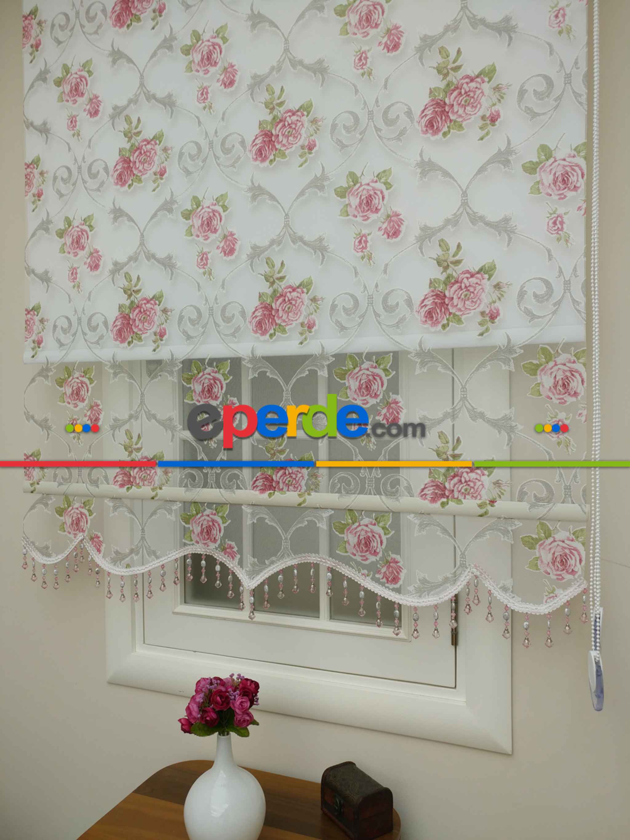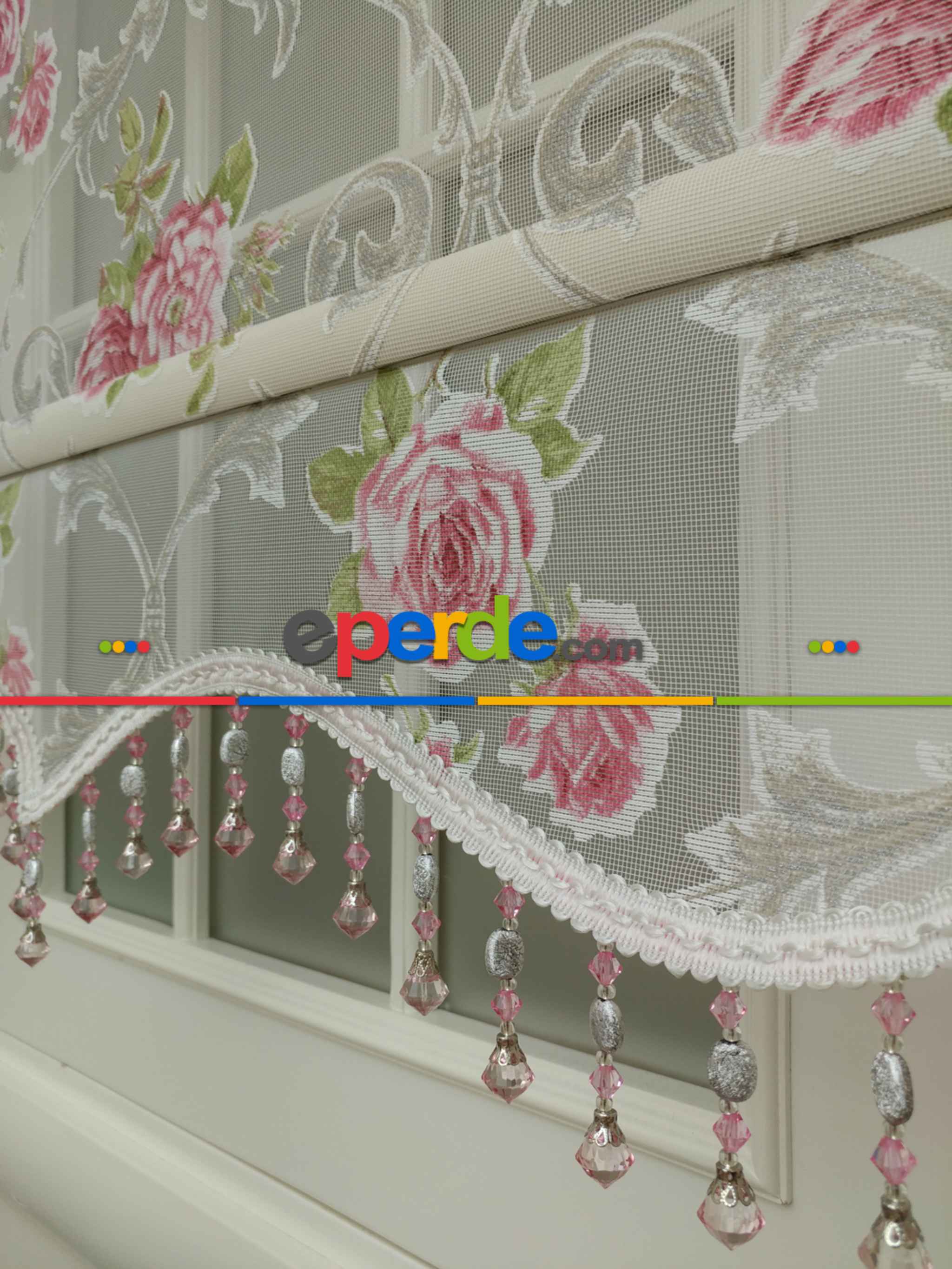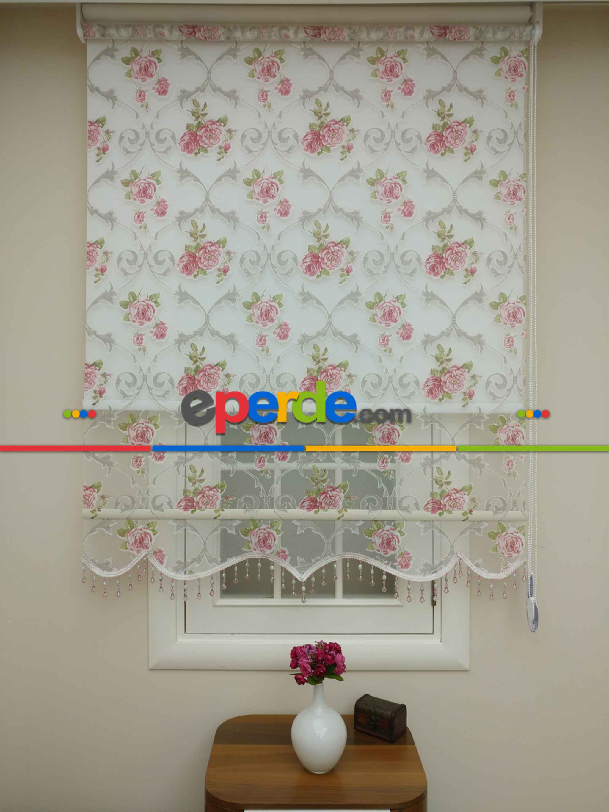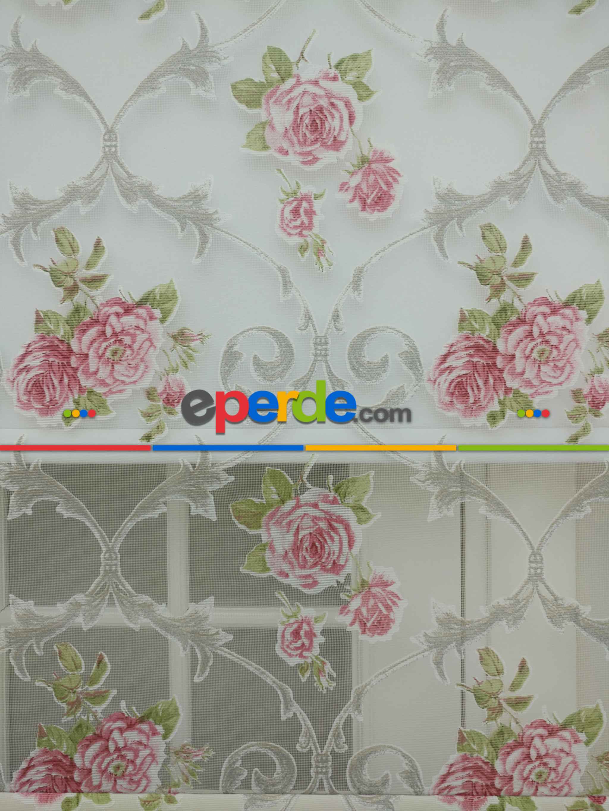 Pembe Çiçek Desenli Çiftli Sistem Tül Stor Perde- Pembe Ürün Açıklaması