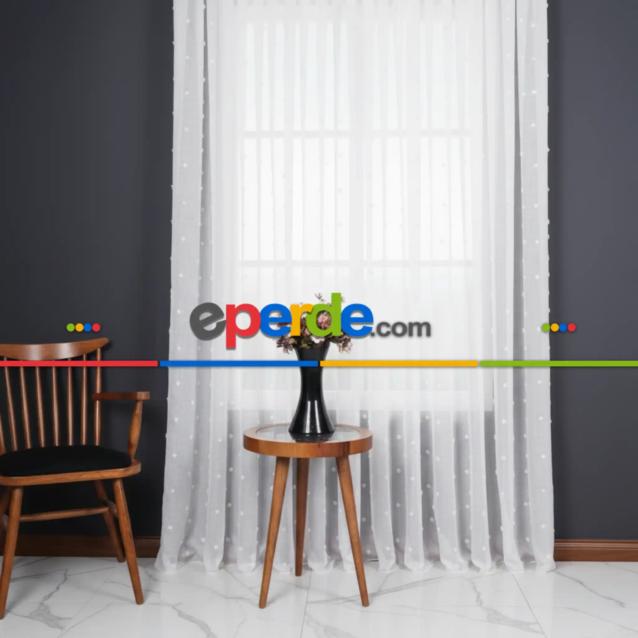 Ponpon Desenli Keten Düz Tül Perde Gramajlı Ödeme Seçenekleri