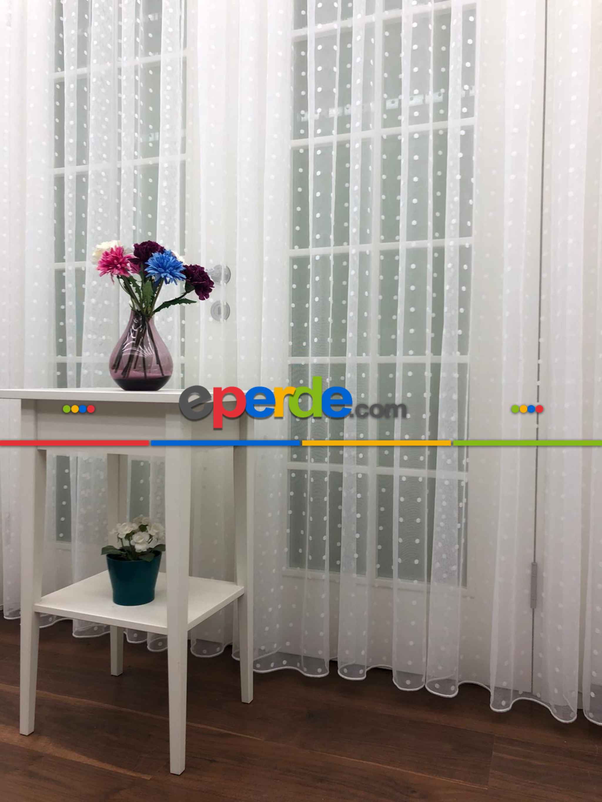 Puantiyeli Spor Desenli Tül Perde- Ekru - Kurşunlu Tül Ölçüsü Nasıl Alınır?